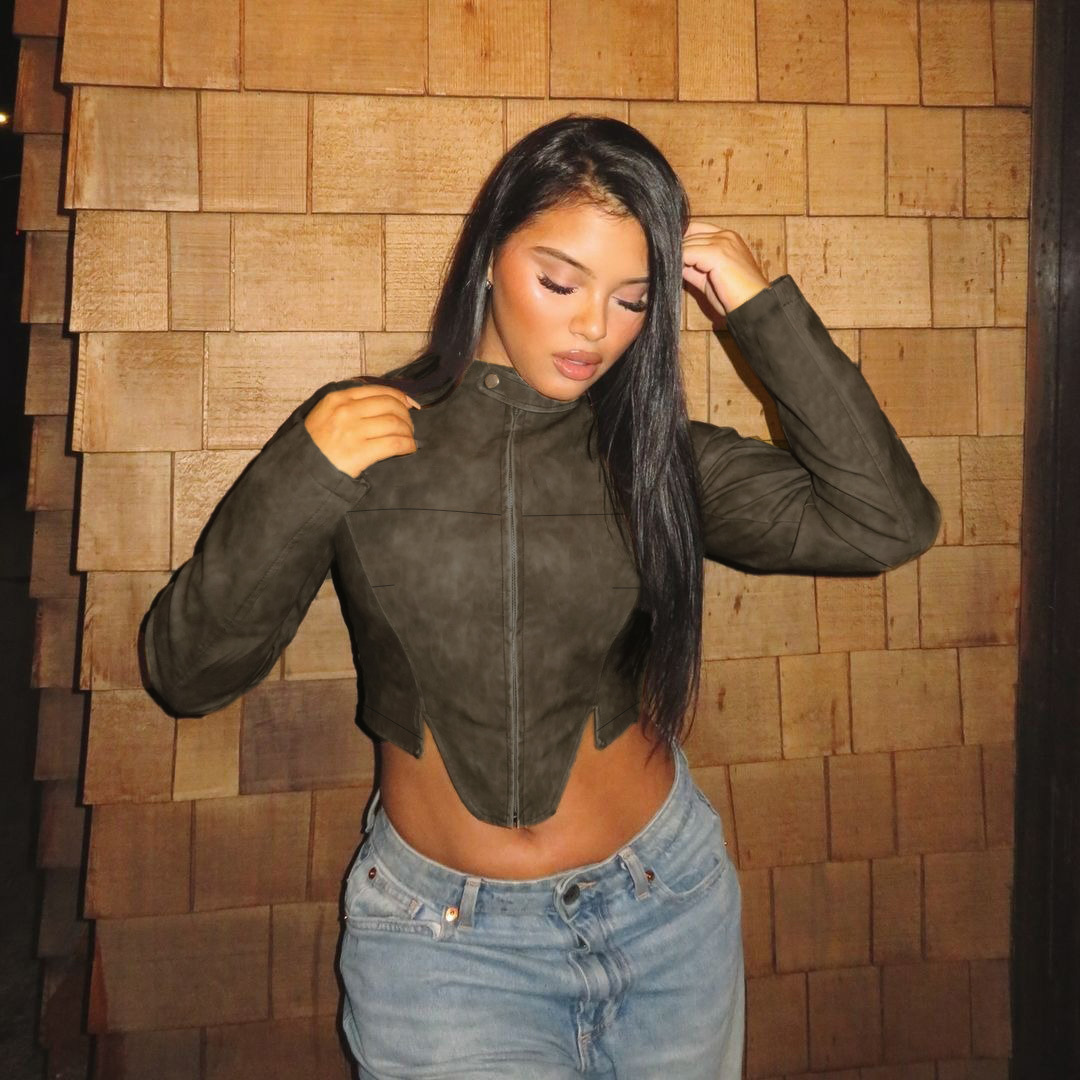 Copy| Product Name | Autumn Stand Collar Long Sleeve Short American Jacket |