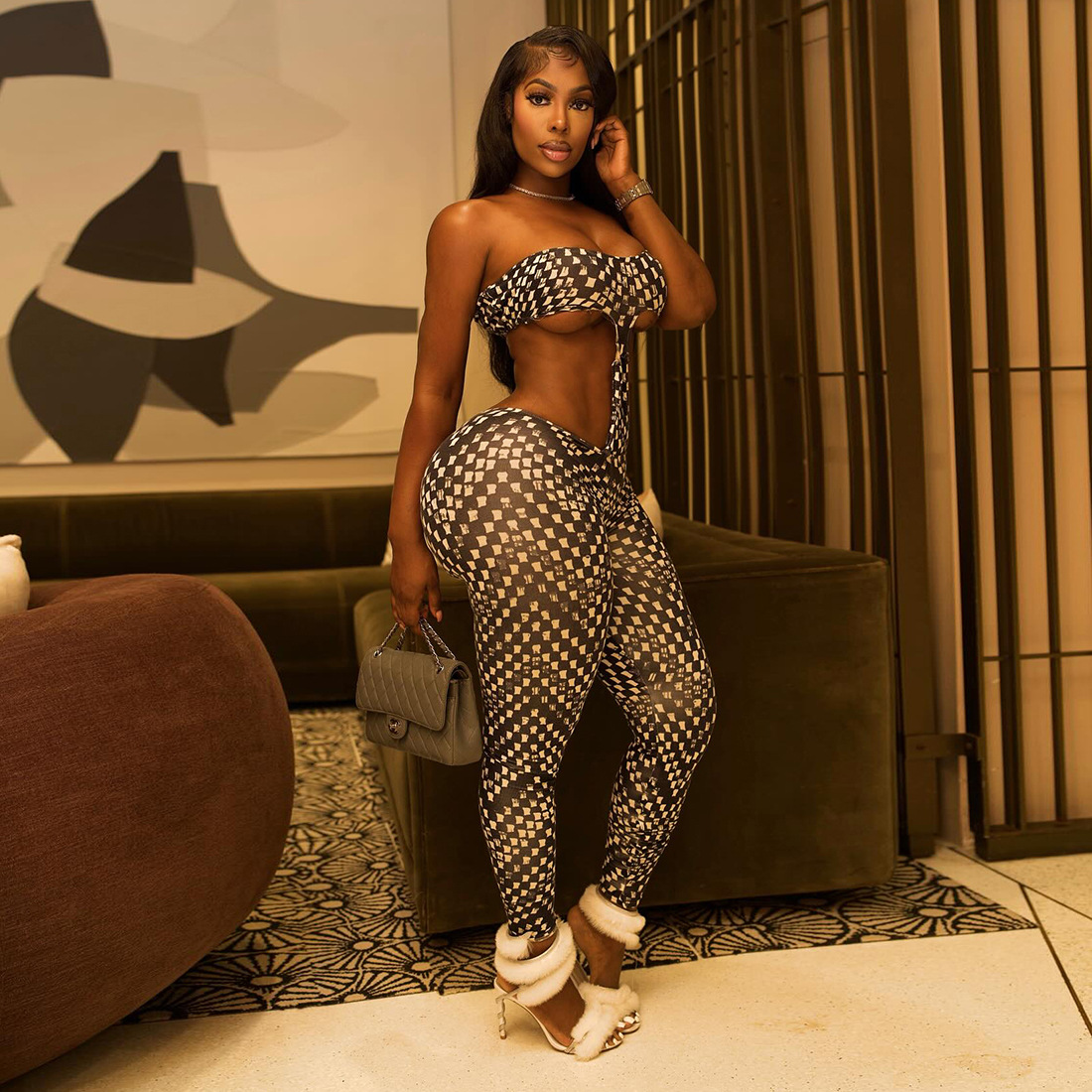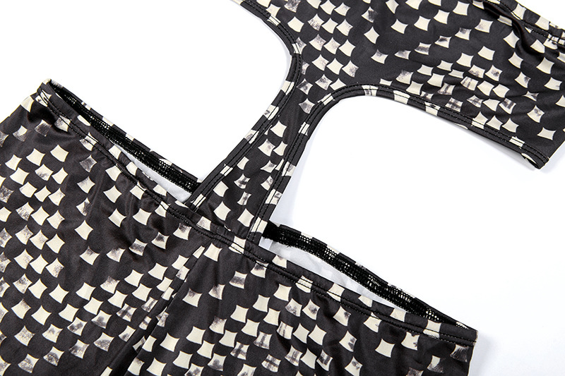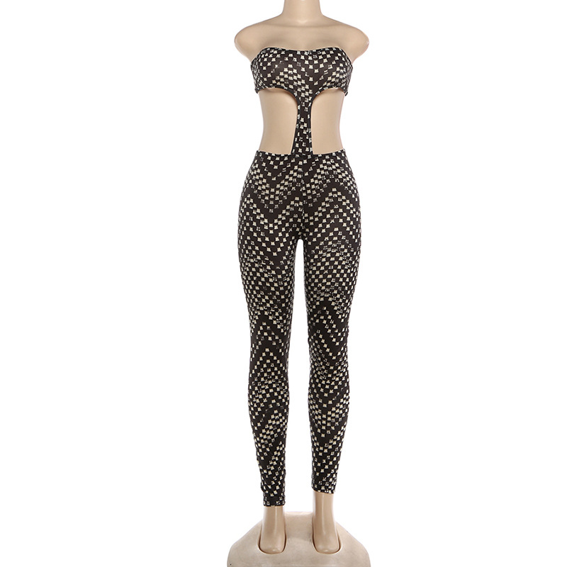 Copy| Product Name | Autumn/Winter Women Fashionable Patchwork Print Sexy Hollow-Out Strapless Low-Back Tight-Fitting Jumpsuit |