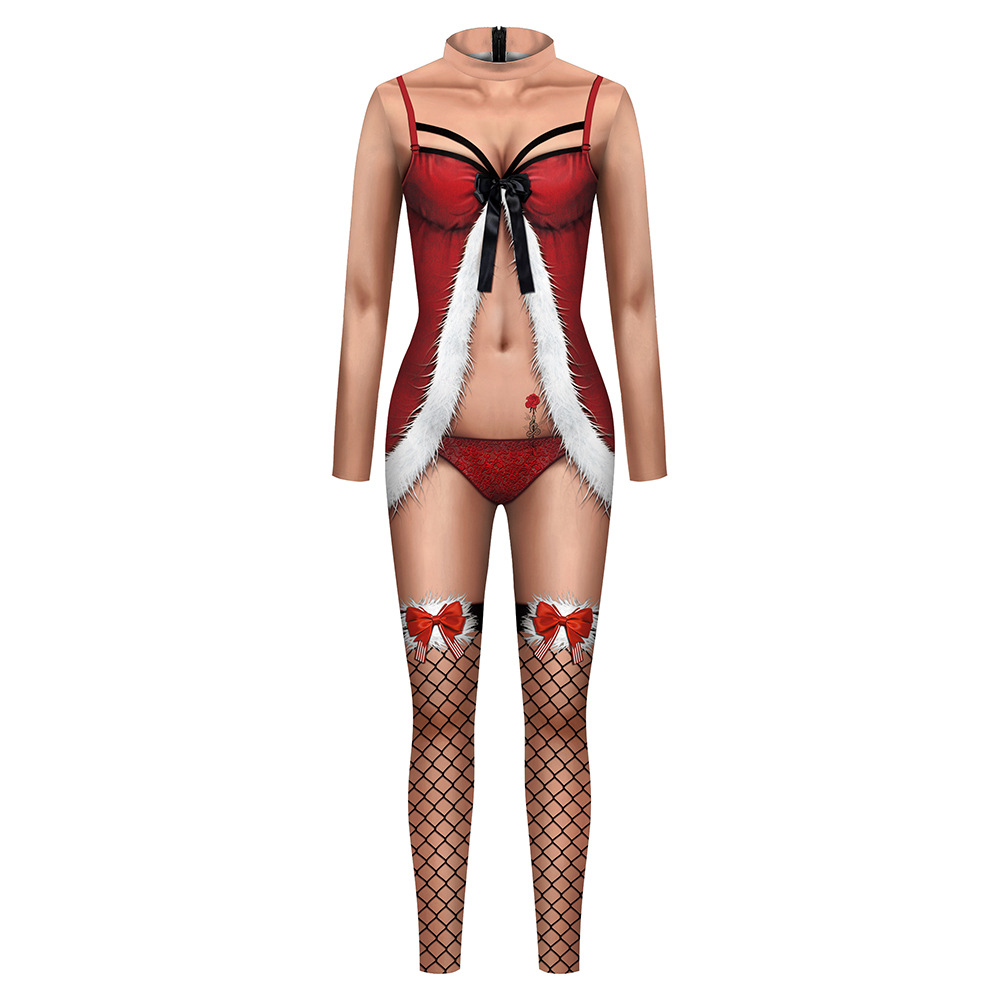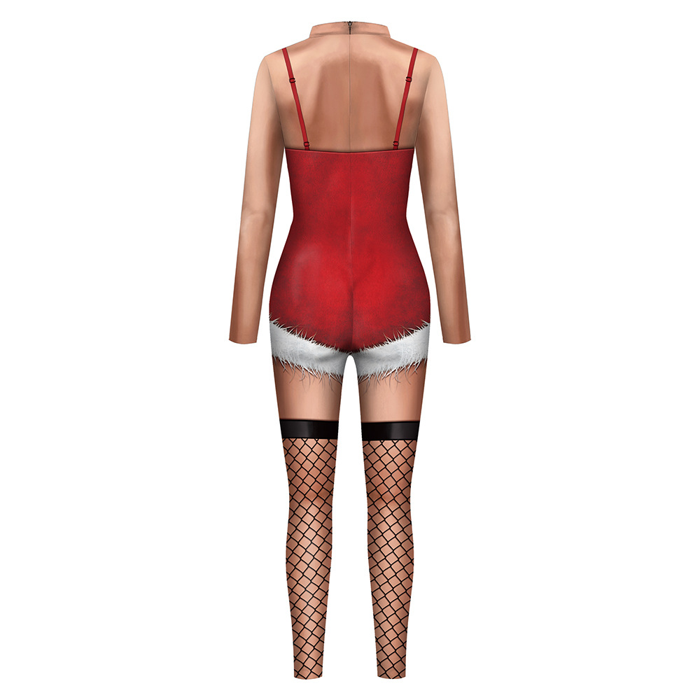 Copy| Product Name | Autumn Winter Women's Christmas Stage Costume Set Long Sleeve Christmas Print Jumpsuit |
