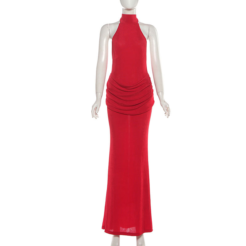 Copy| Product Name | Autumn Women's Fashion Solid Sexy Sleeveless Halter Neck Low Back Bodycon Dress |