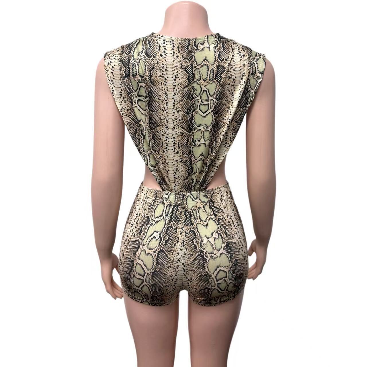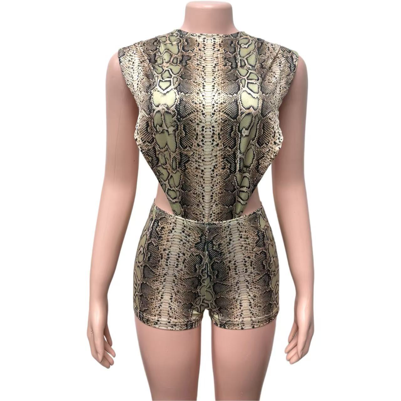 Copy| Product Name | Autumn Women's Sexy Side Cut-Out Sleeveless Snake Print Two-Piece Shorts Set |
