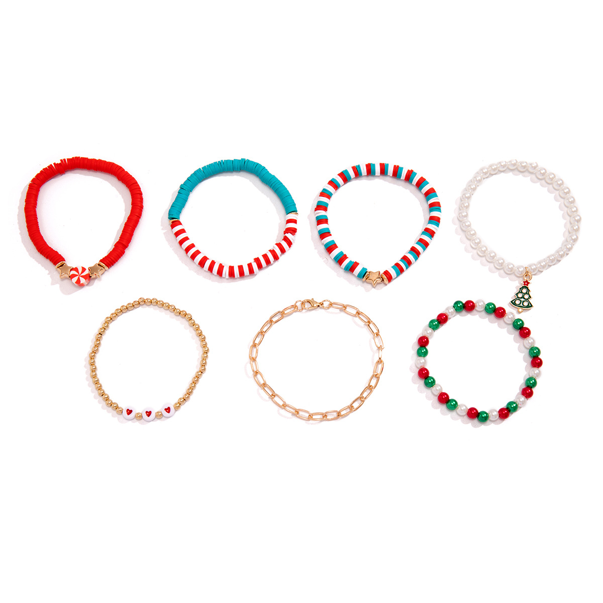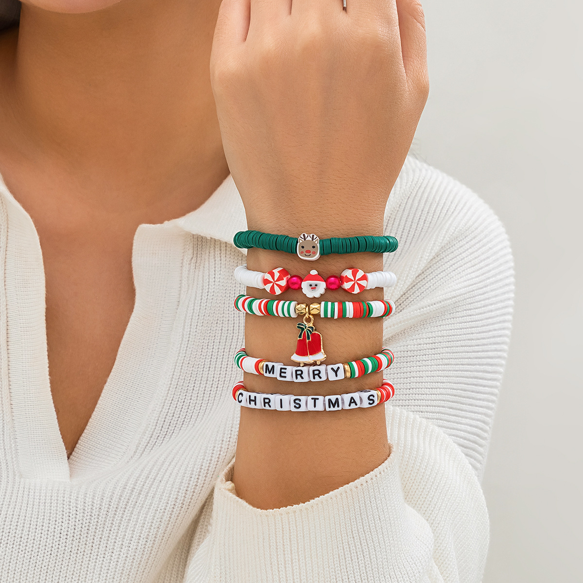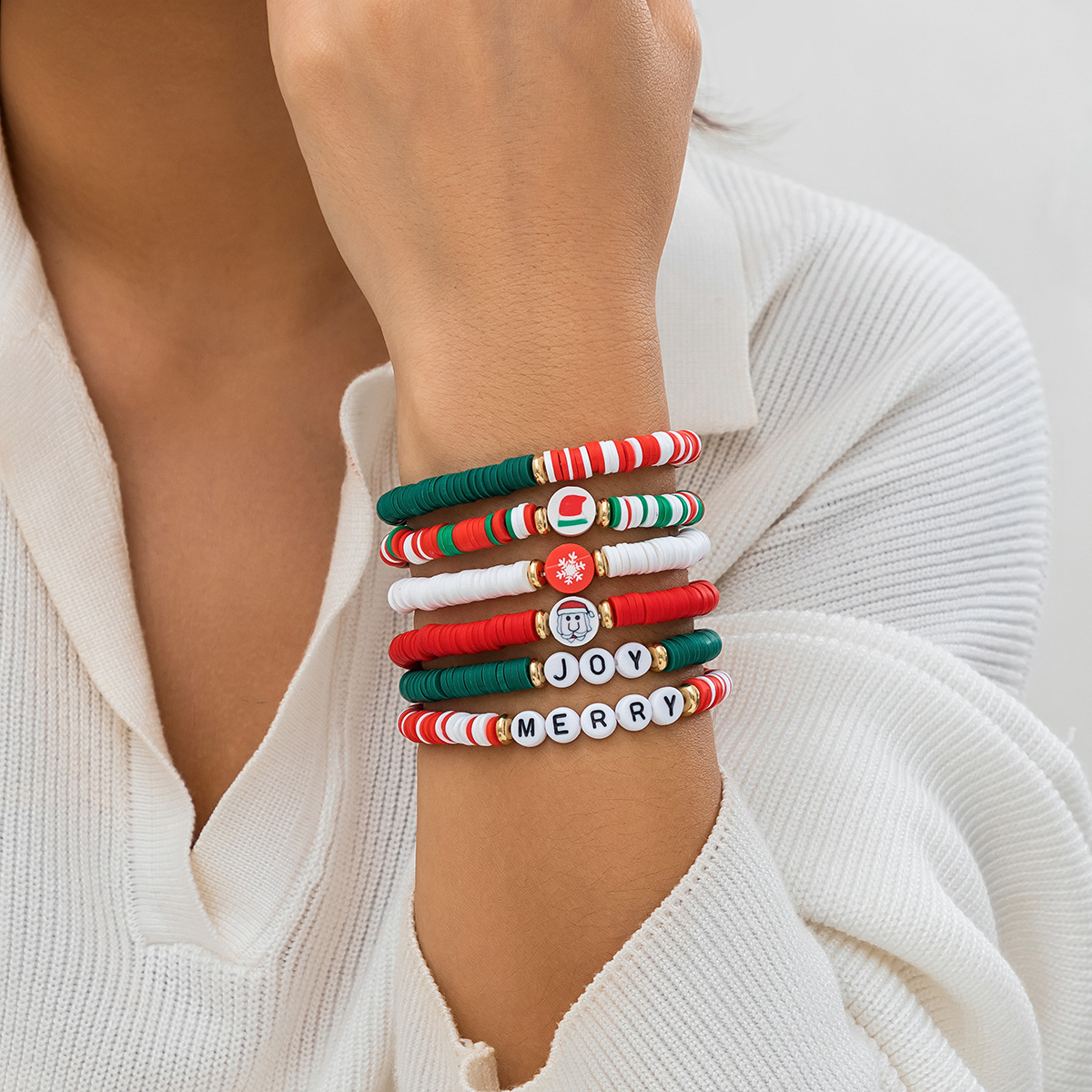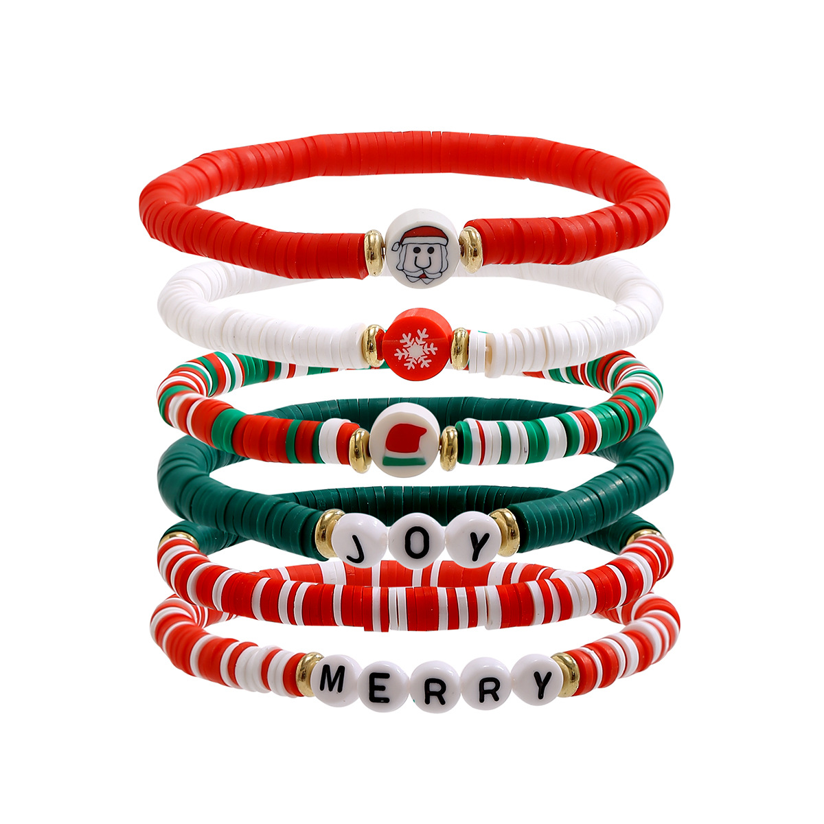 Copy| Product Name | Christmas Beaded Santa Claus Gift Colorful Polymer Clay Bracelet |