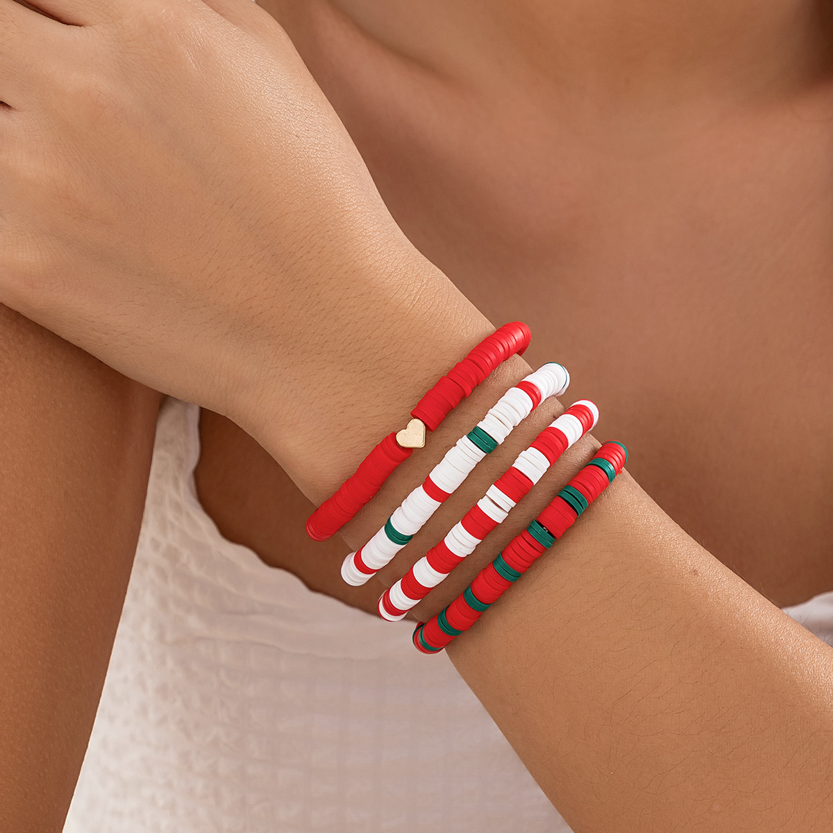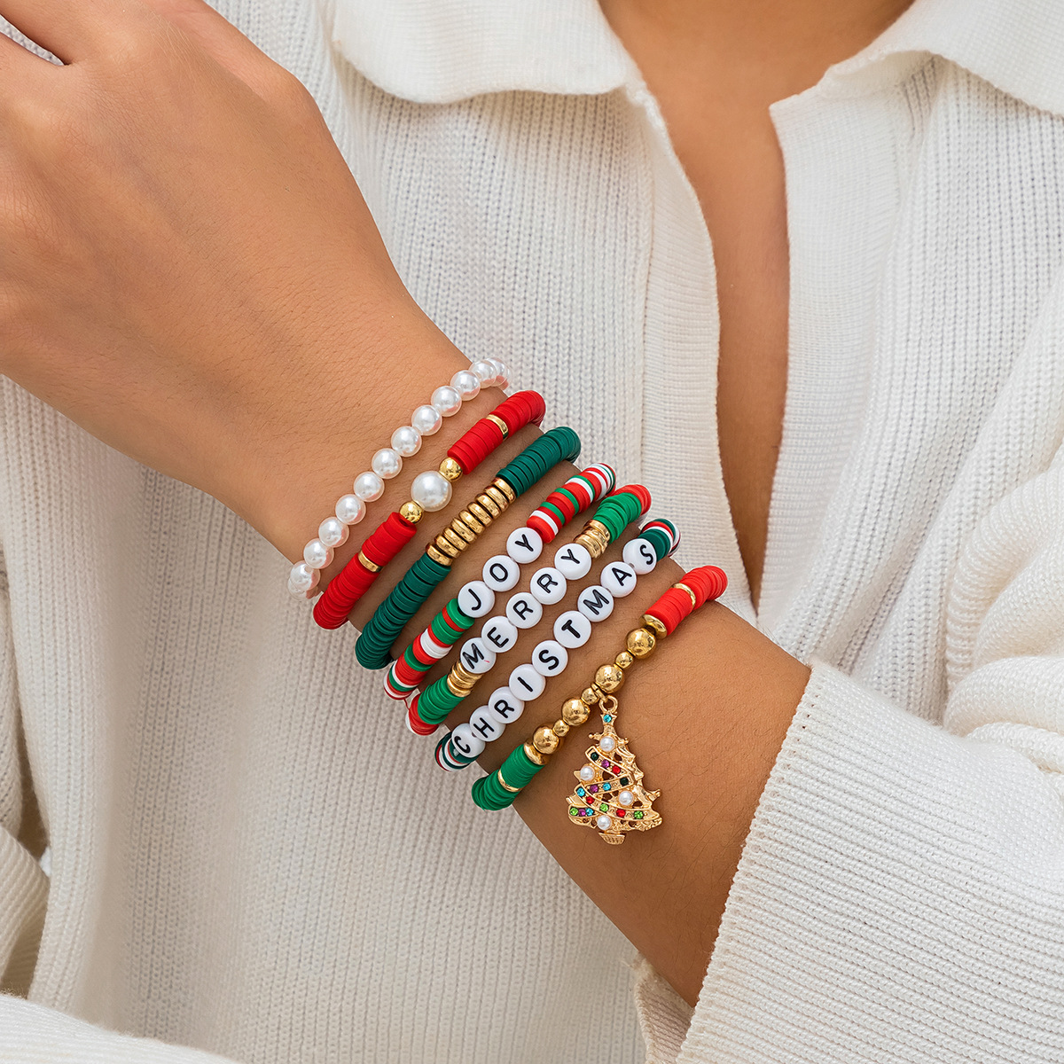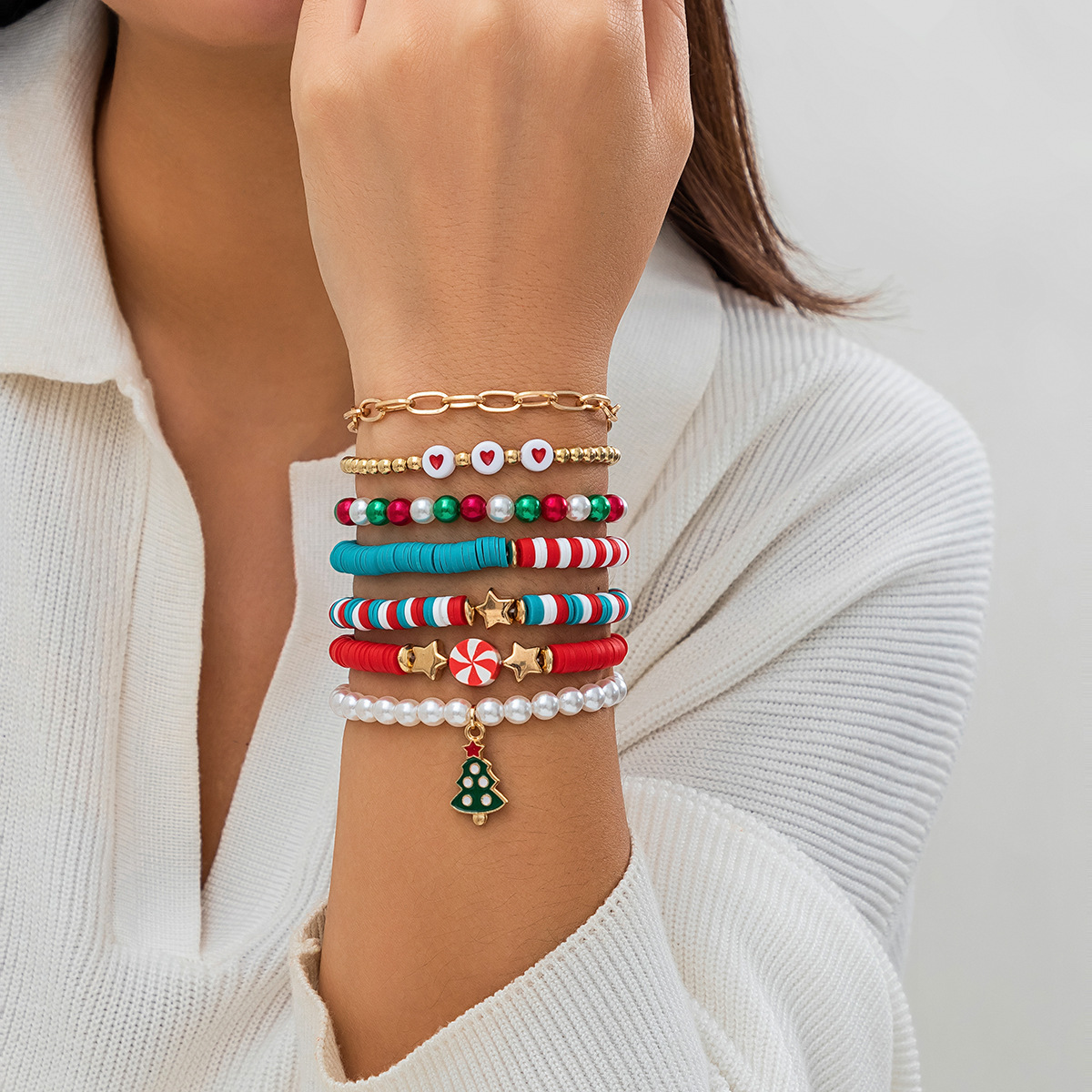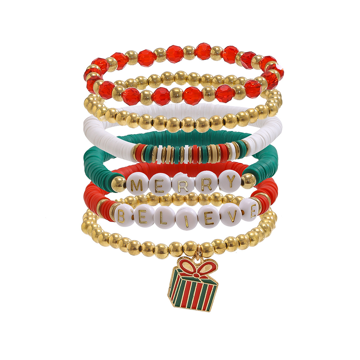 Copy| Product Name | Christmas Beaded Santa Claus Gift Colorful Polymer Clay Bracelet |