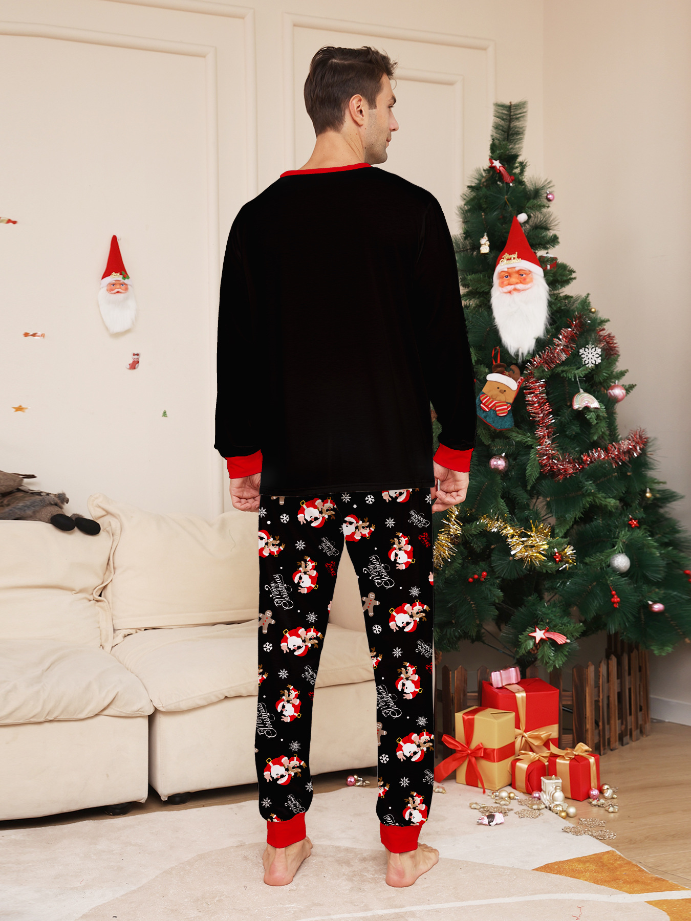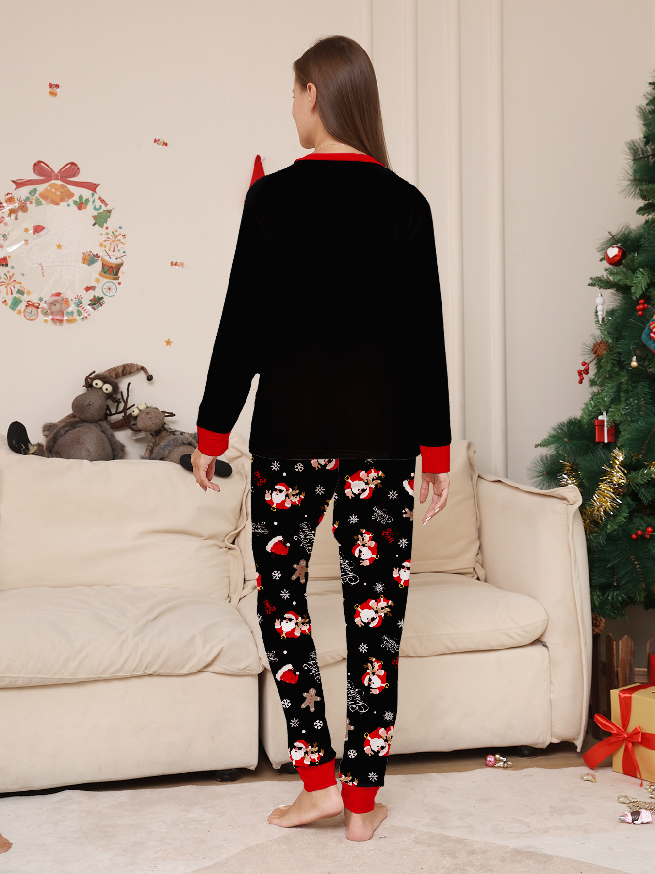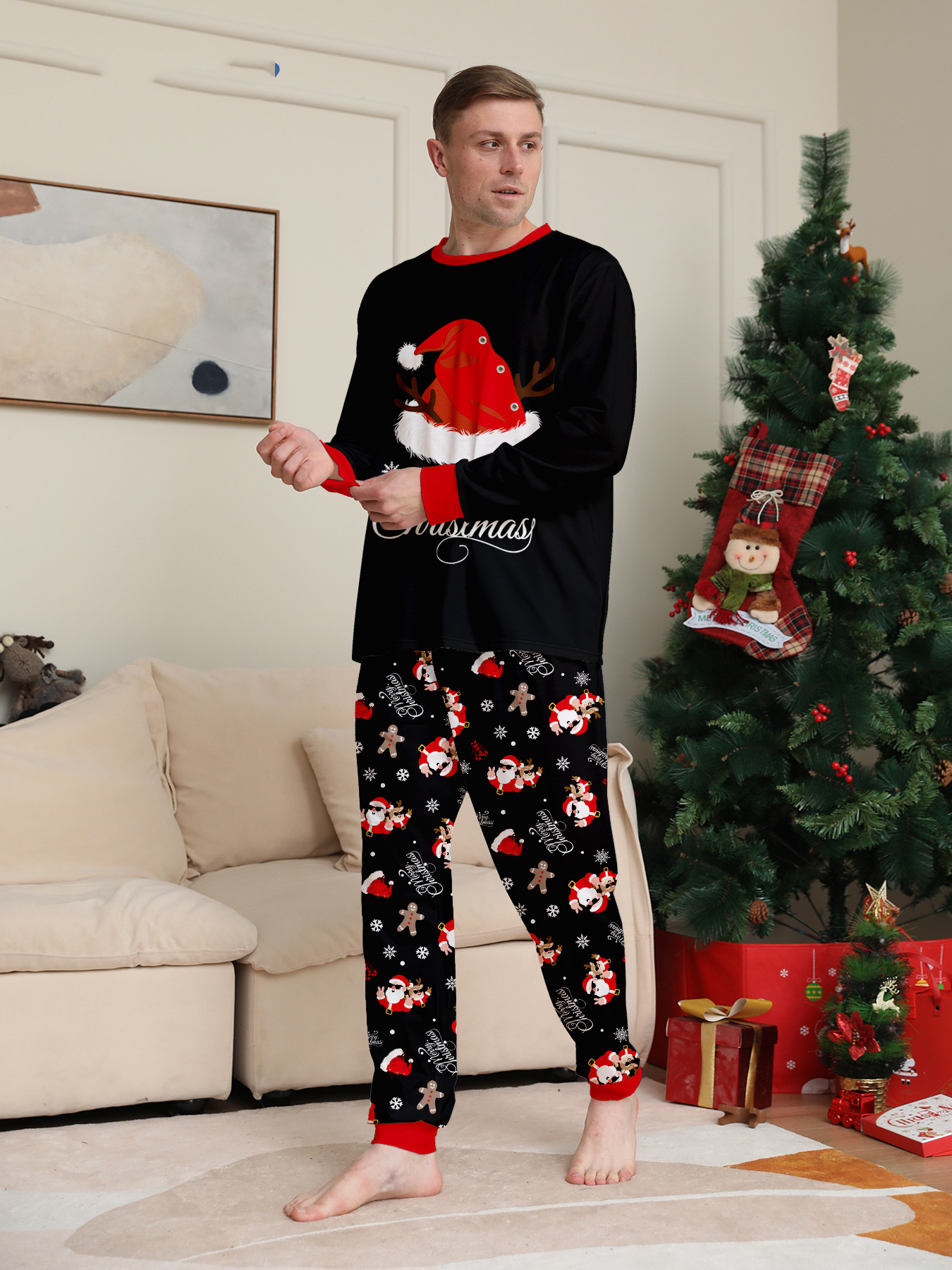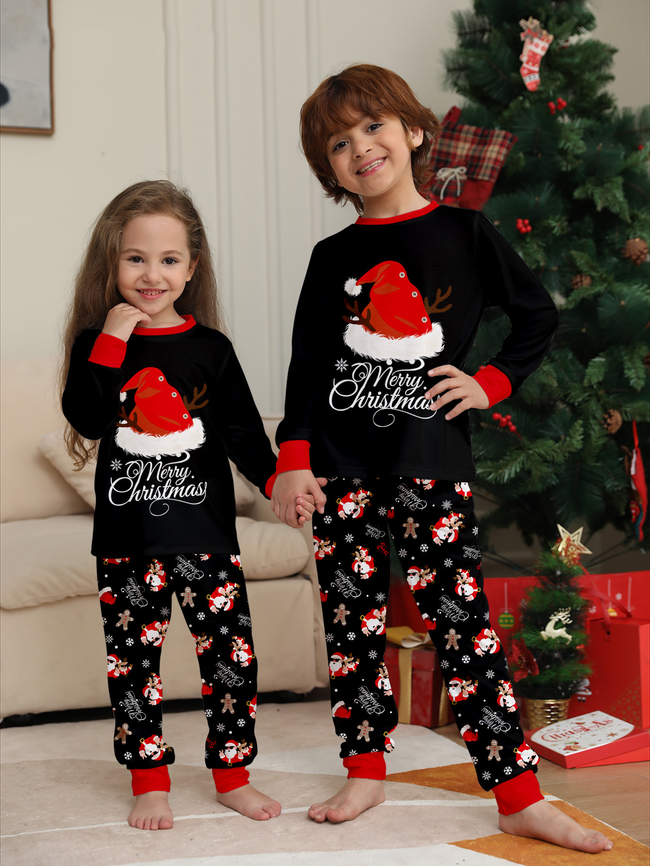 Copy| Product Name | Christmas Family Matching Pajama Set Santa Hat Antlers Letter Print Black Pants Set |