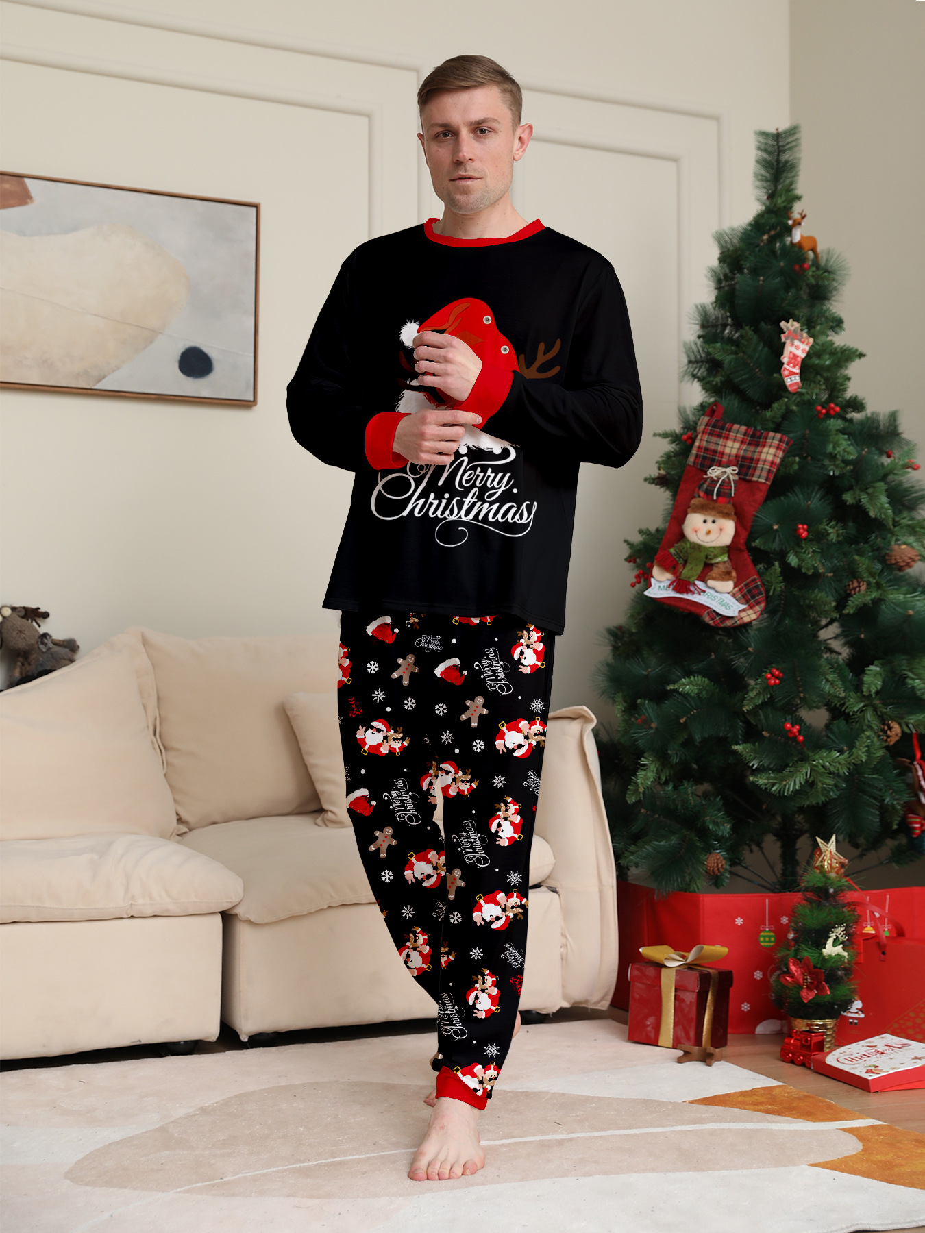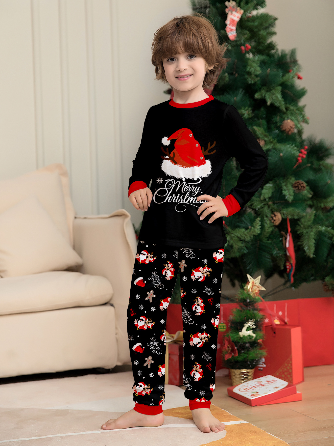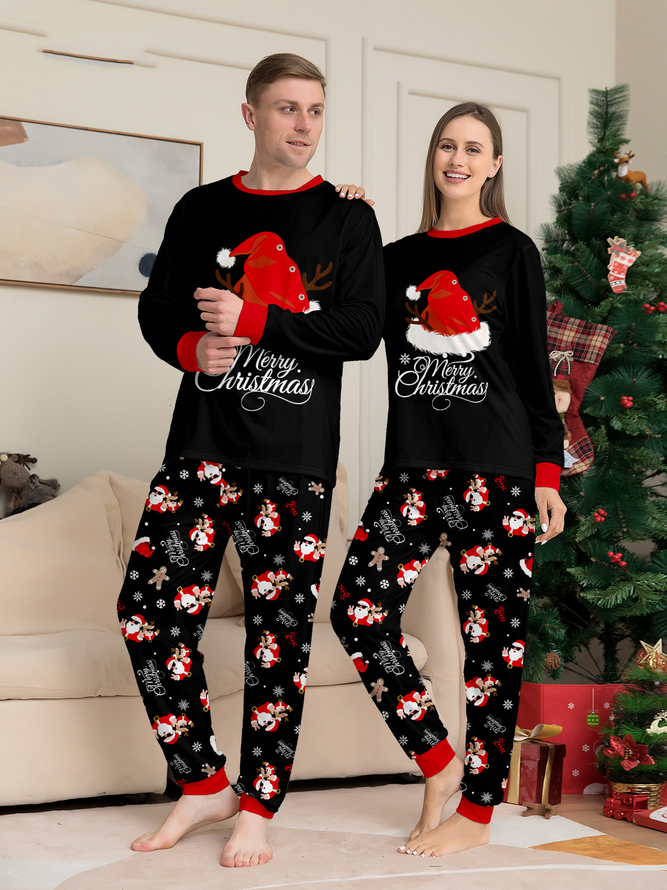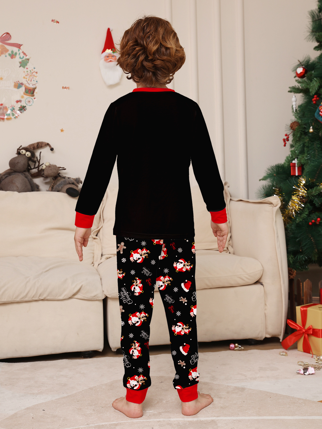 Copy| Product Name | Christmas Family Matching Pajama Set Santa Hat Antlers Letter Print Black Pants Set |