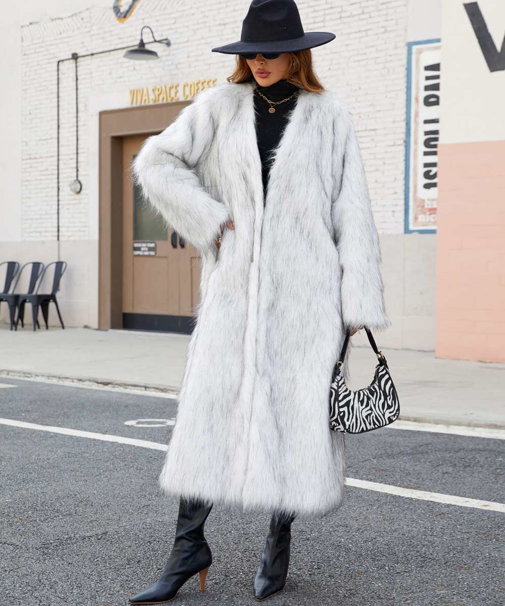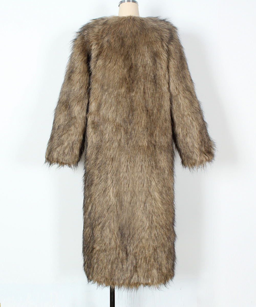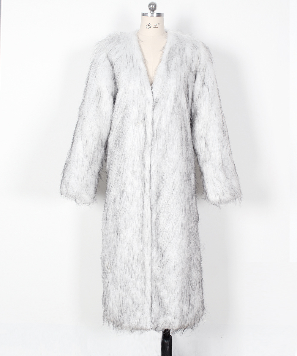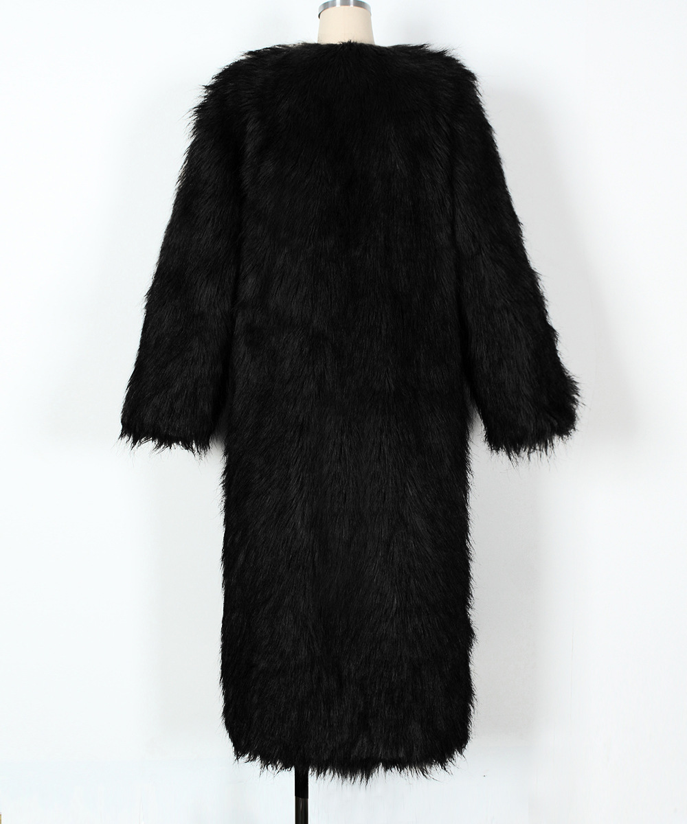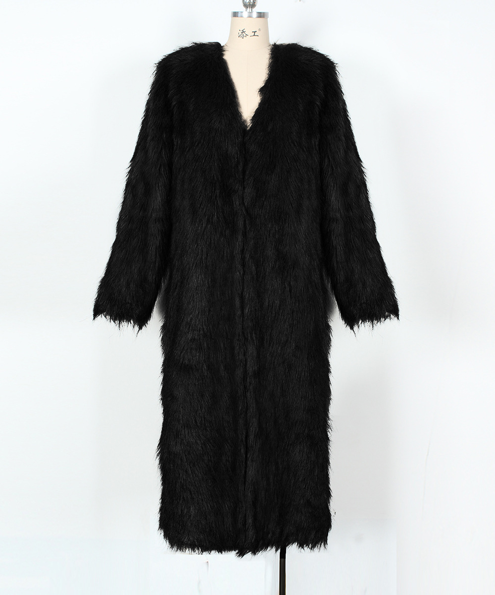 Copy| Product Name | Fall-Winter Women's Fashion V-Neck Long Faux Fur Warm Plush Coat |