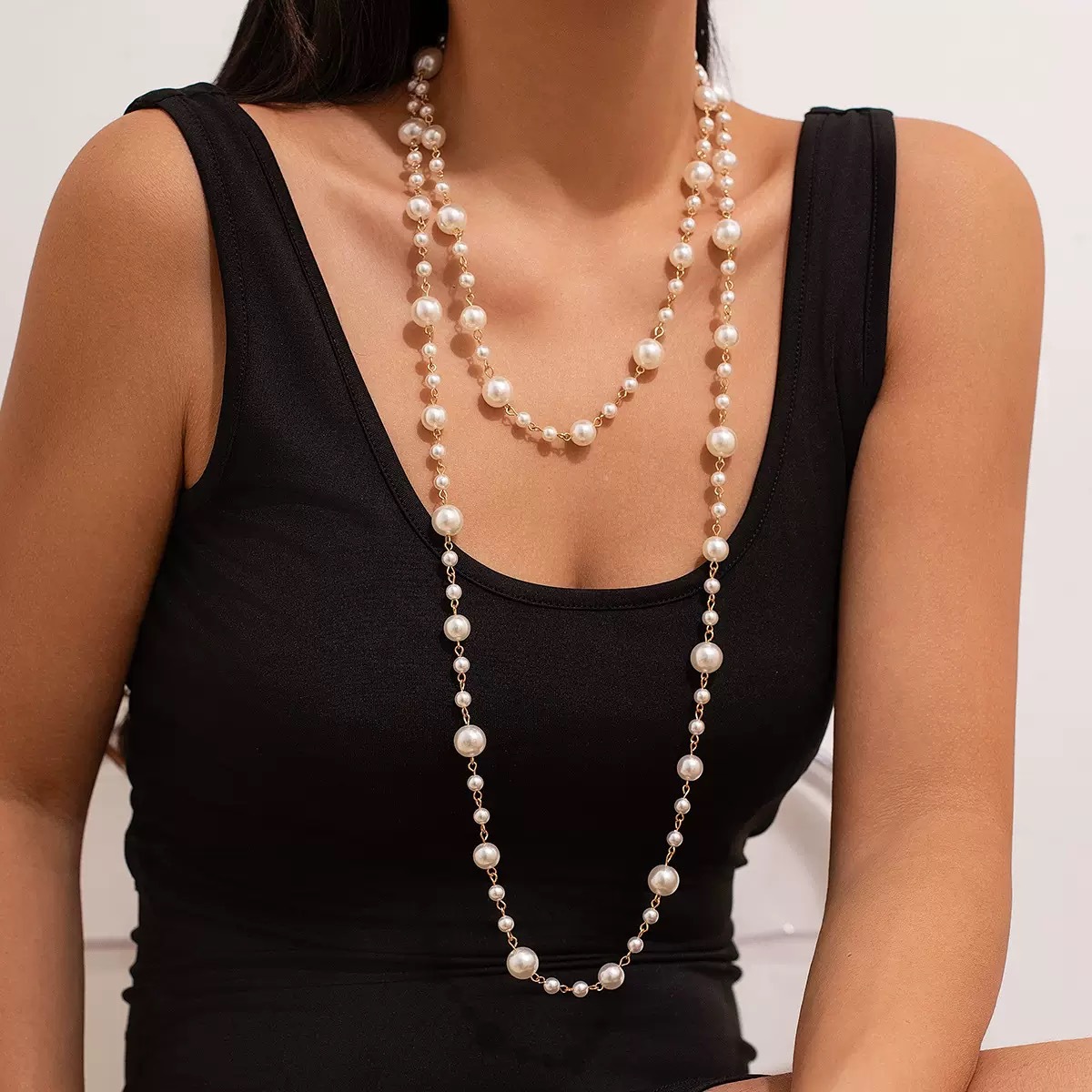 Copy| Product Name | Fashion Luxury Pearl Long Halter Neck Beaded Chain Necklace |