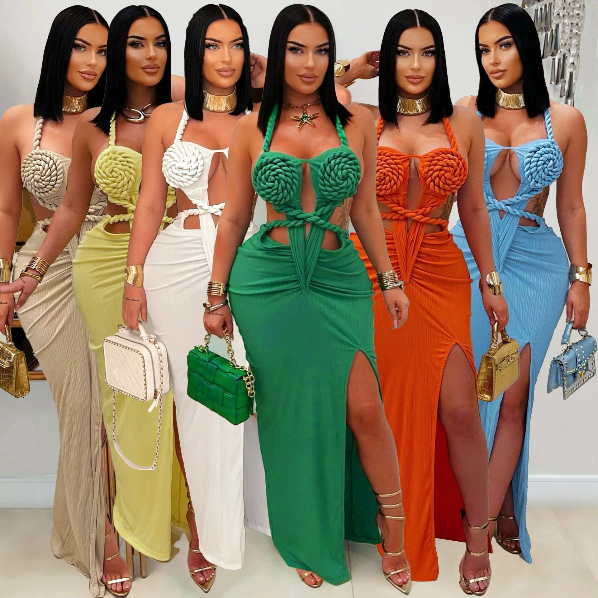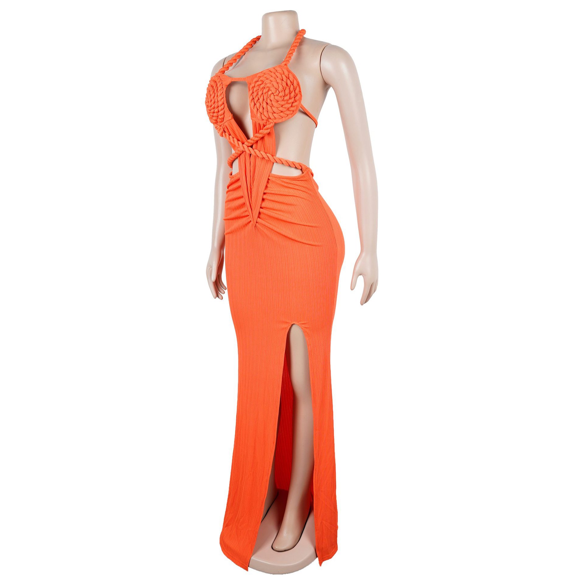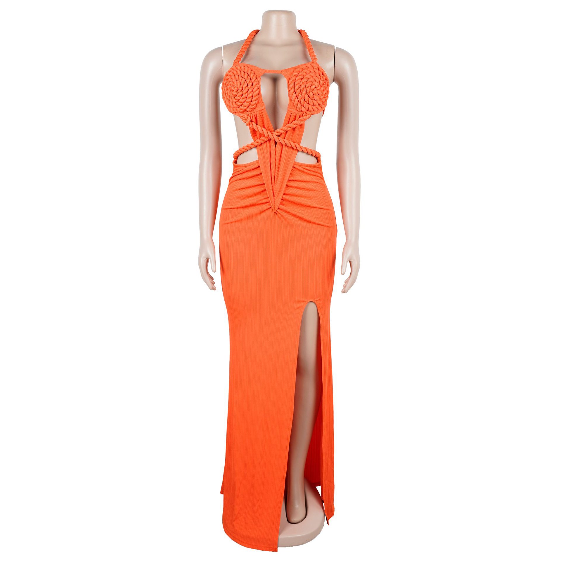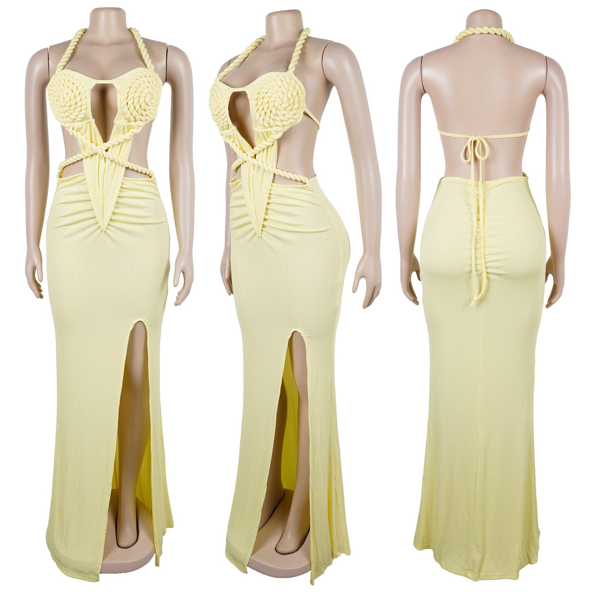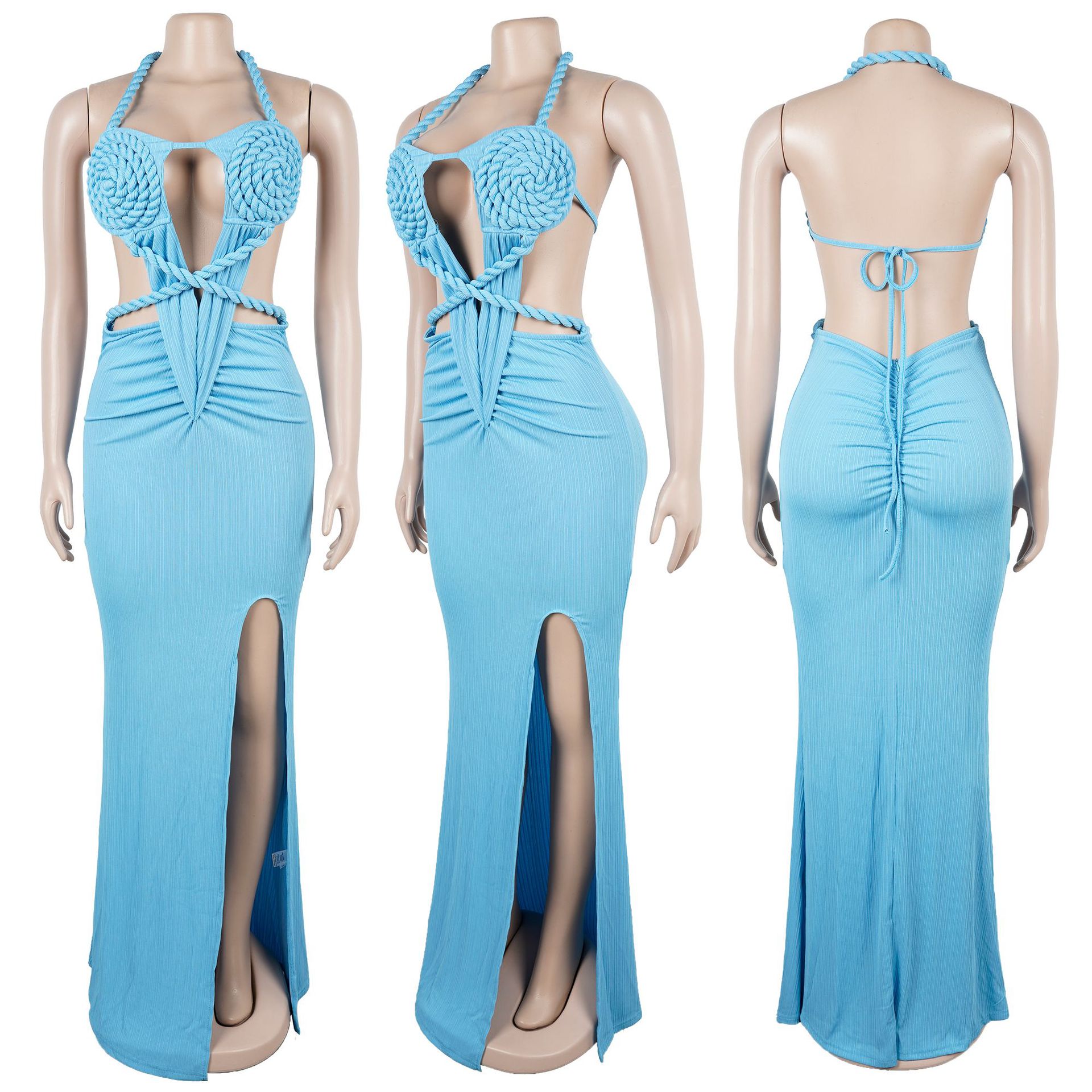 Copy| Product Name | Fashion Women's Halter Neck Knit Cut-Out Sexy Slit Dress |