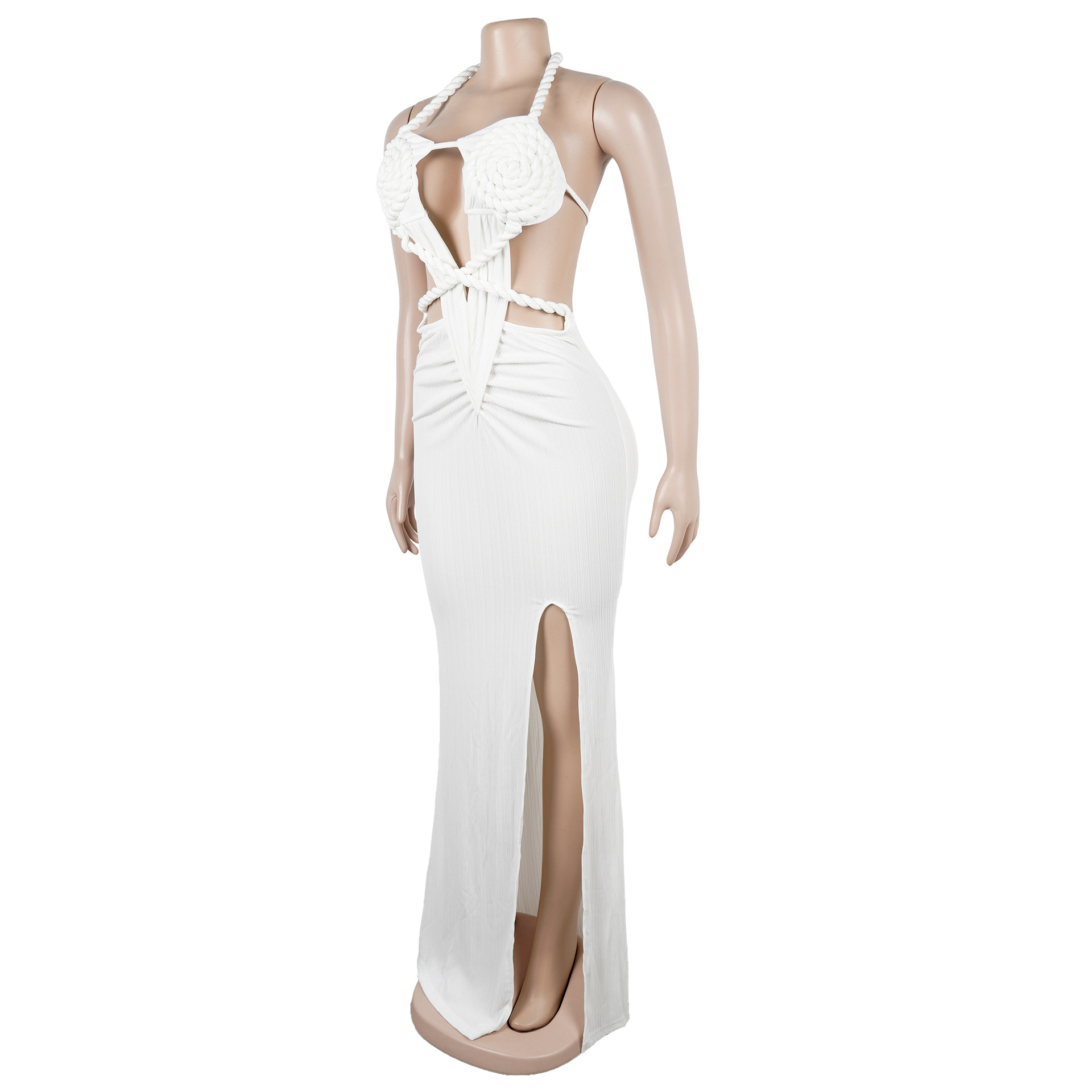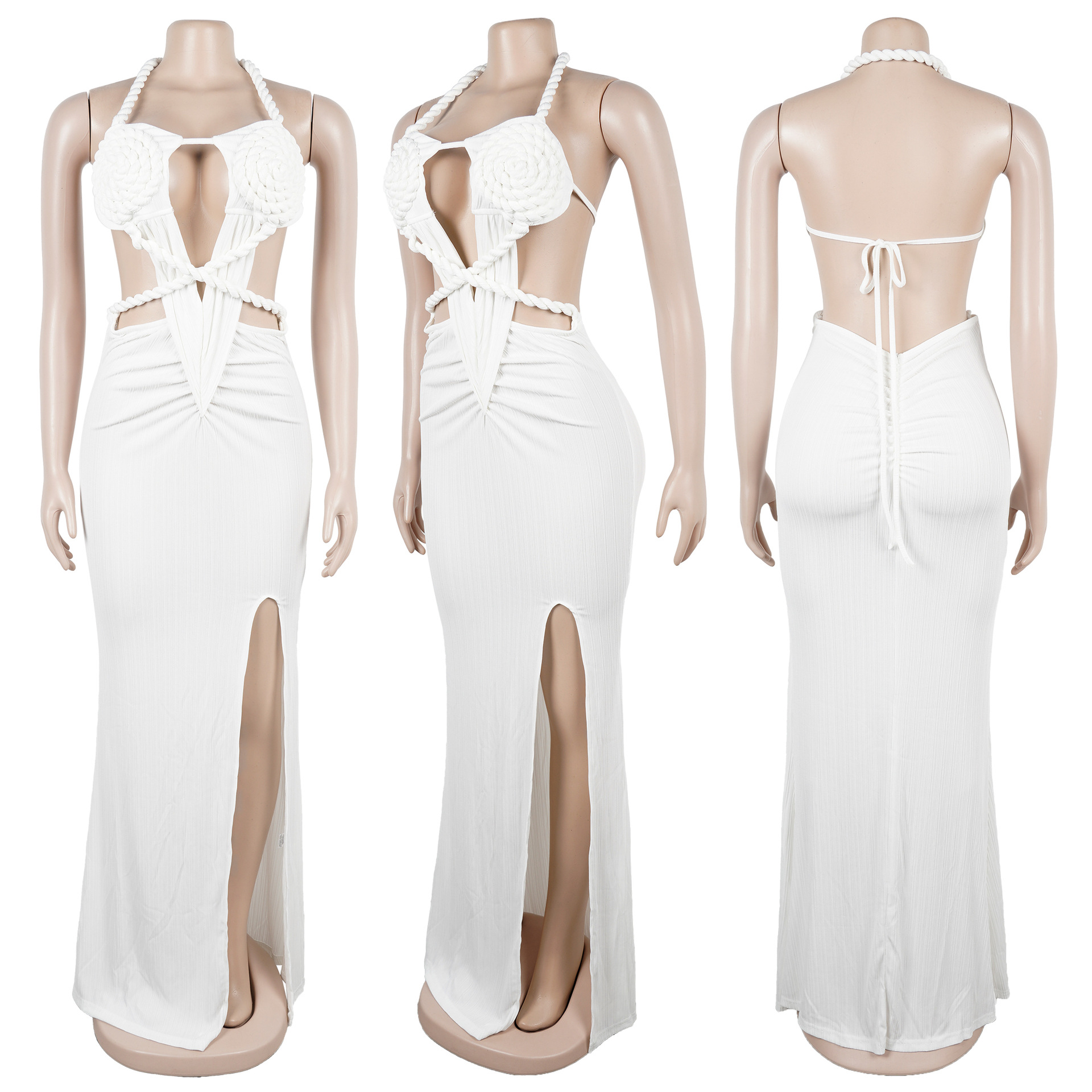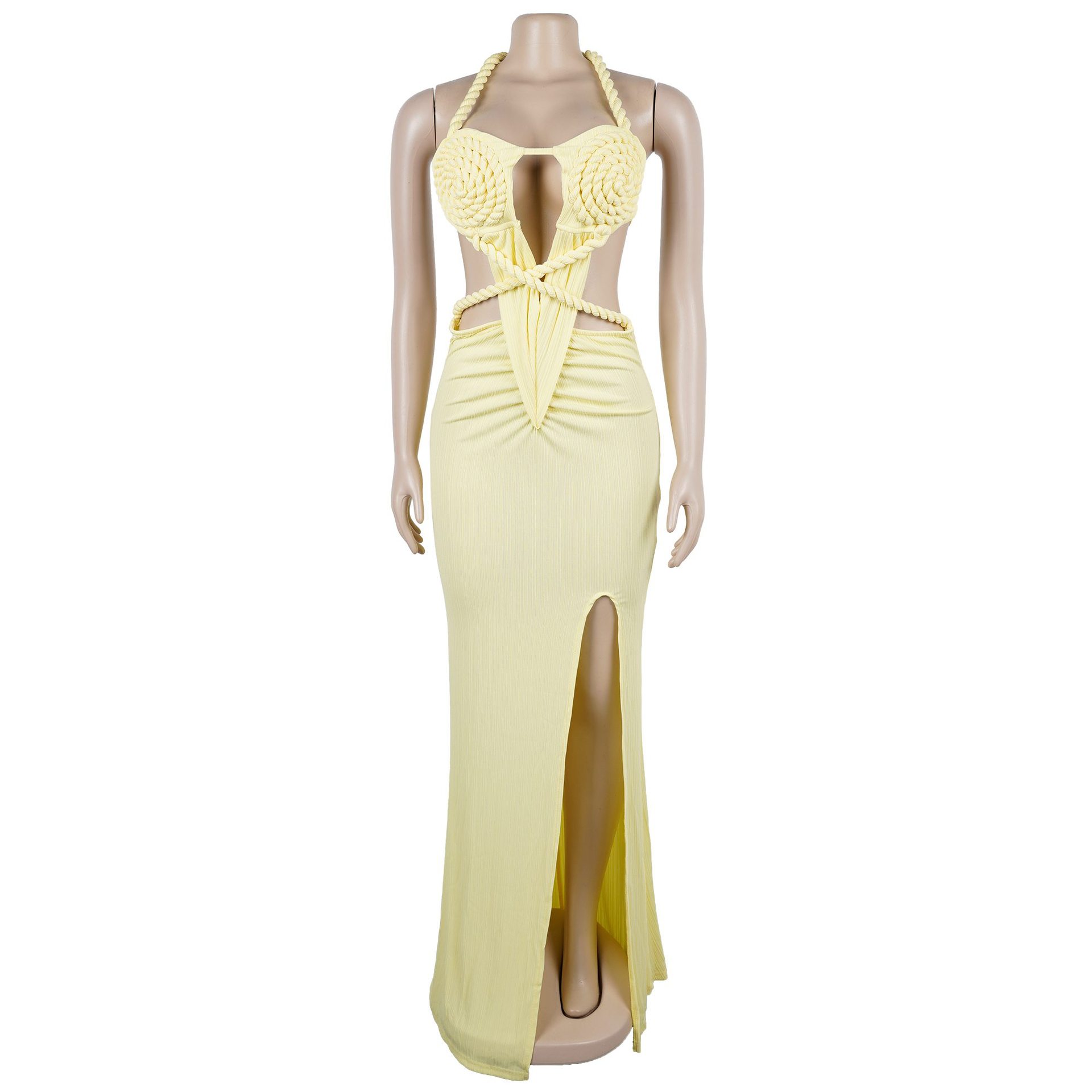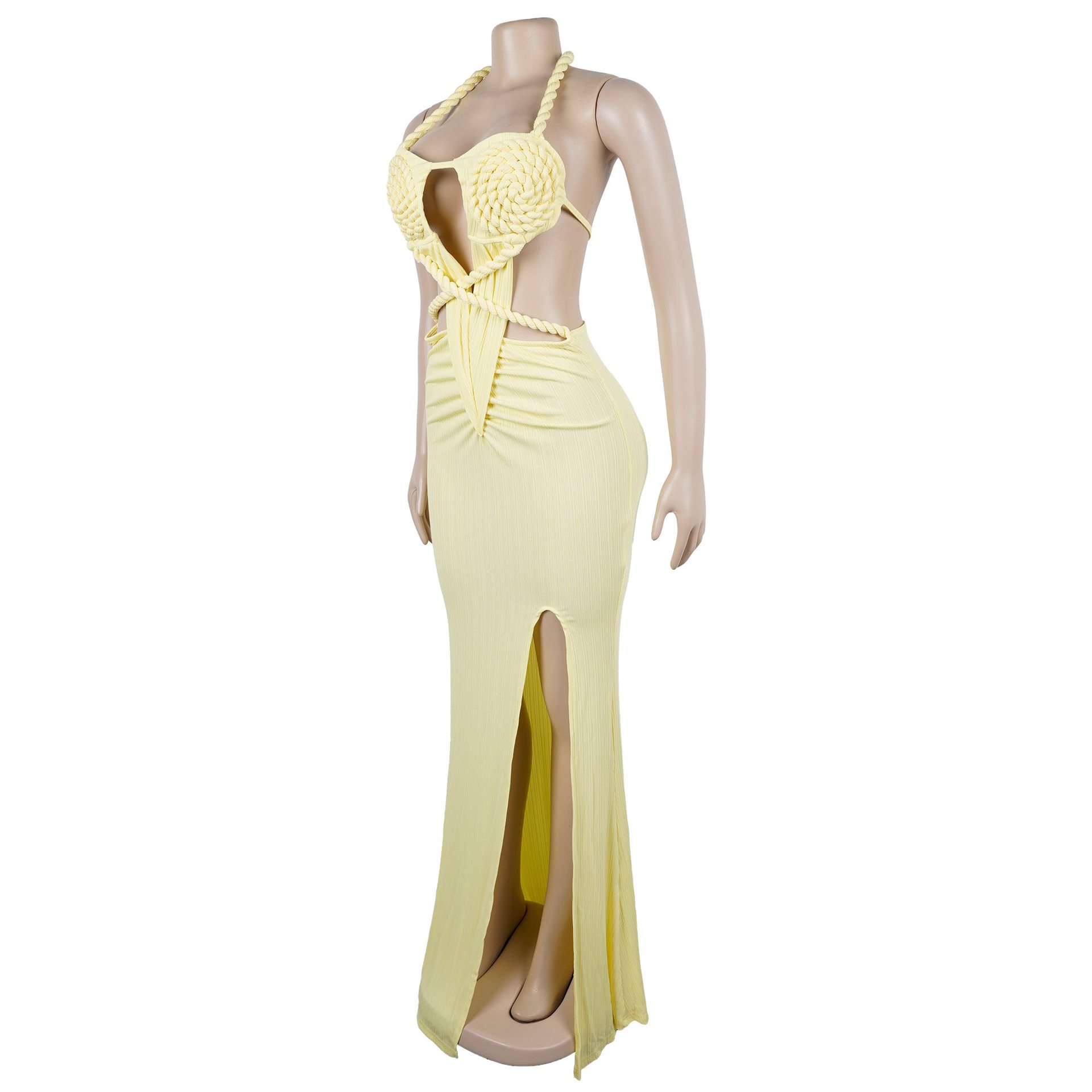 Copy| Product Name | Fashion Women's Halter Neck Knit Cut-Out Sexy Slit Dress |