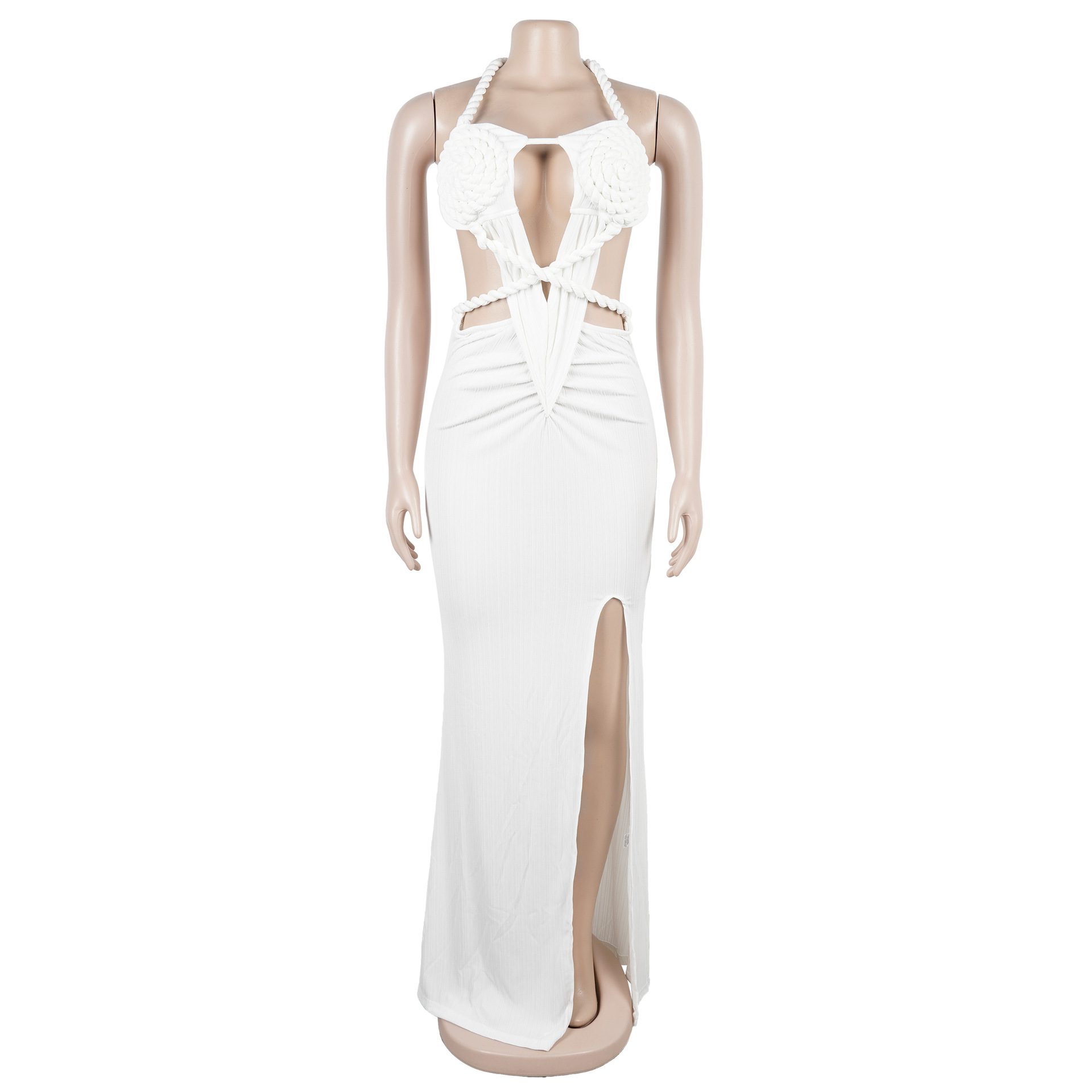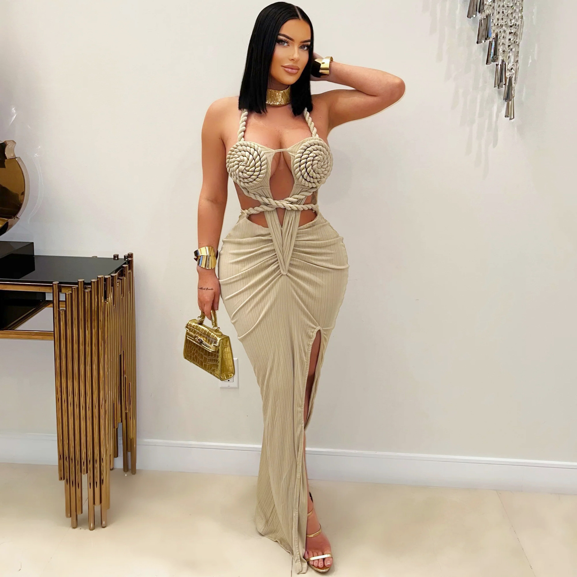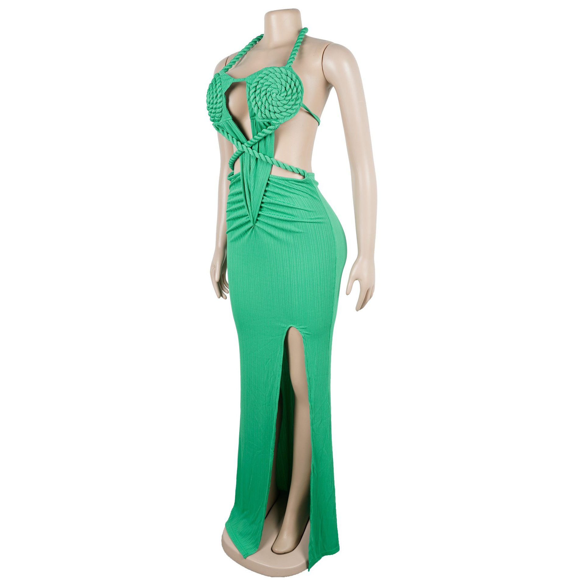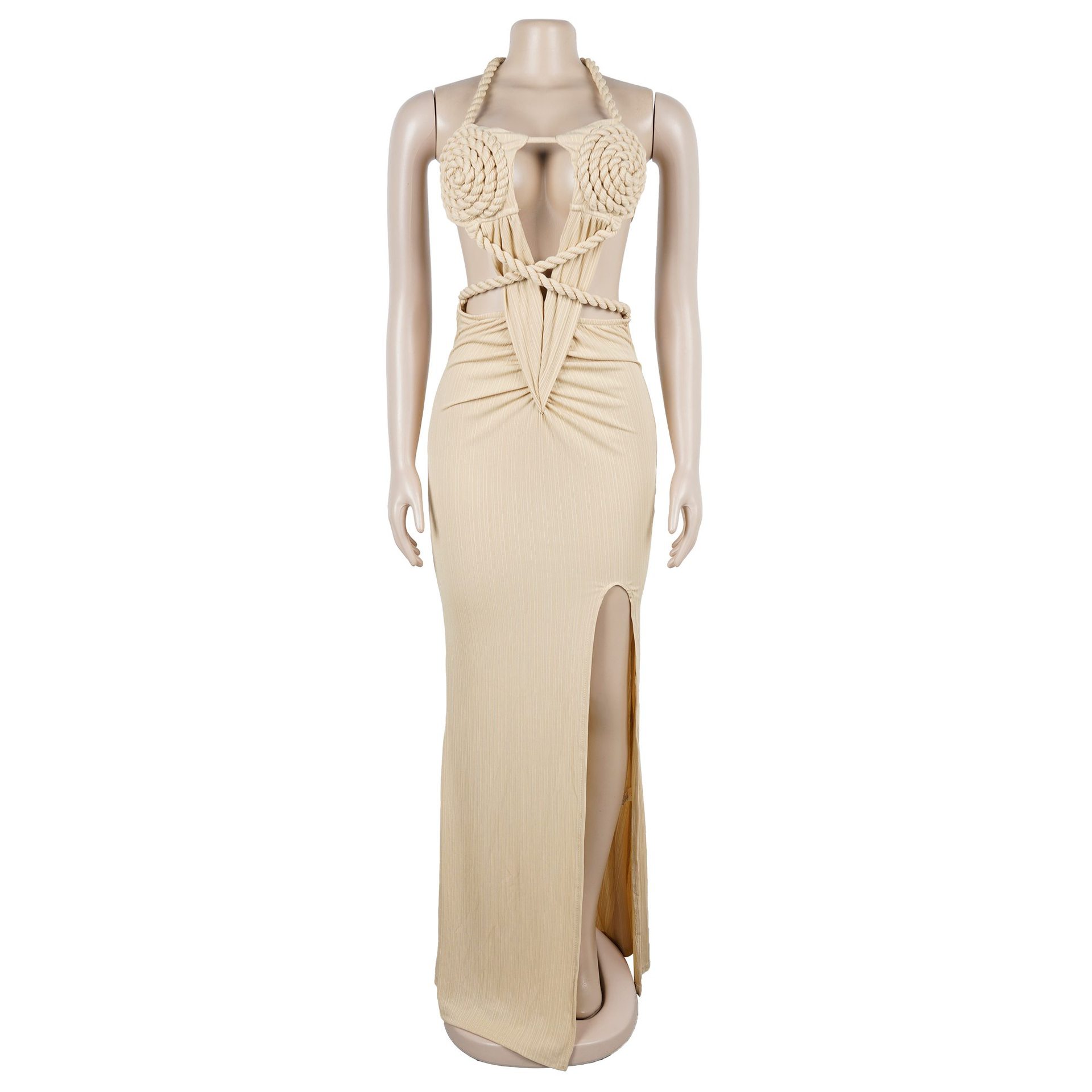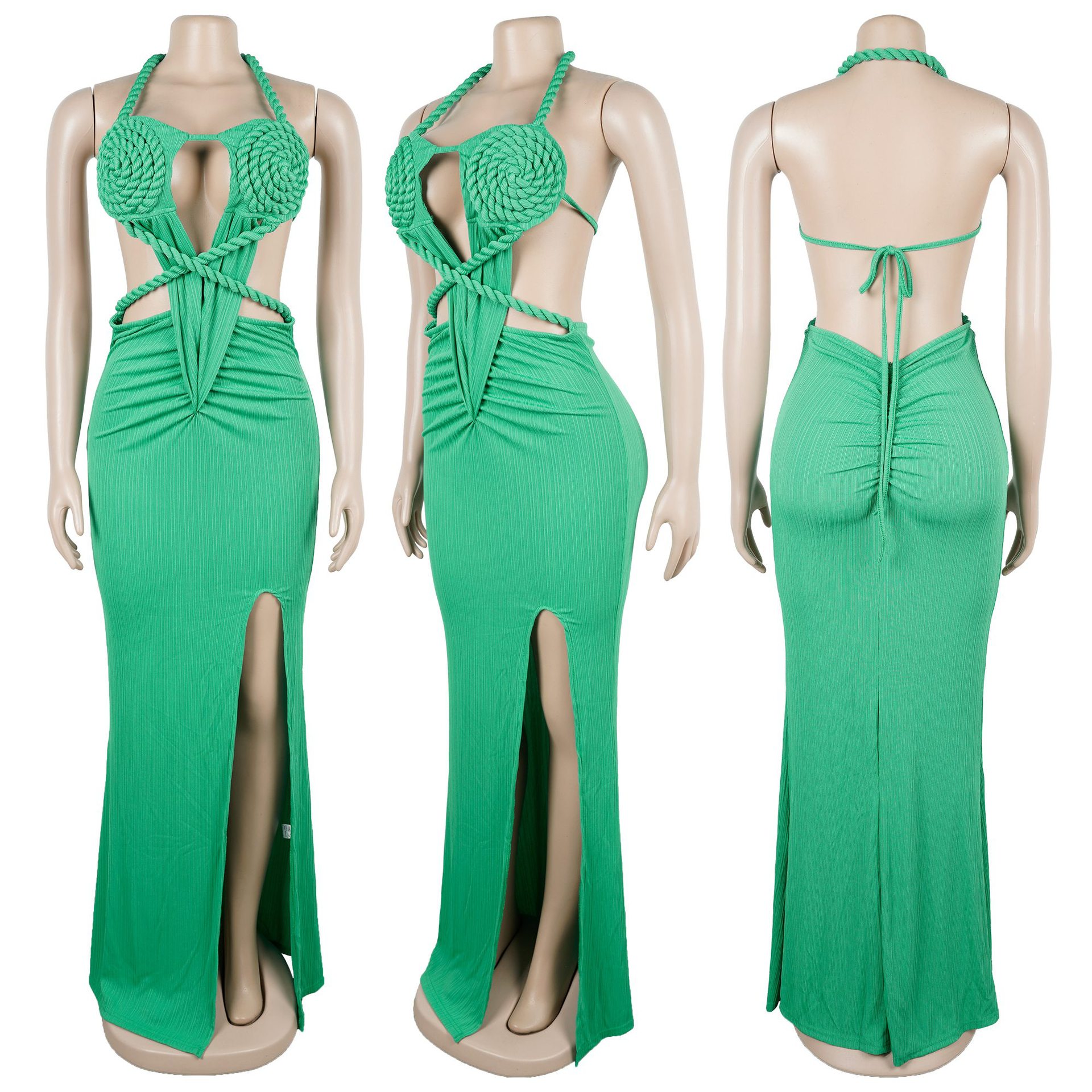 Copy| Product Name | Fashion Women's Halter Neck Knit Cut-Out Sexy Slit Dress |