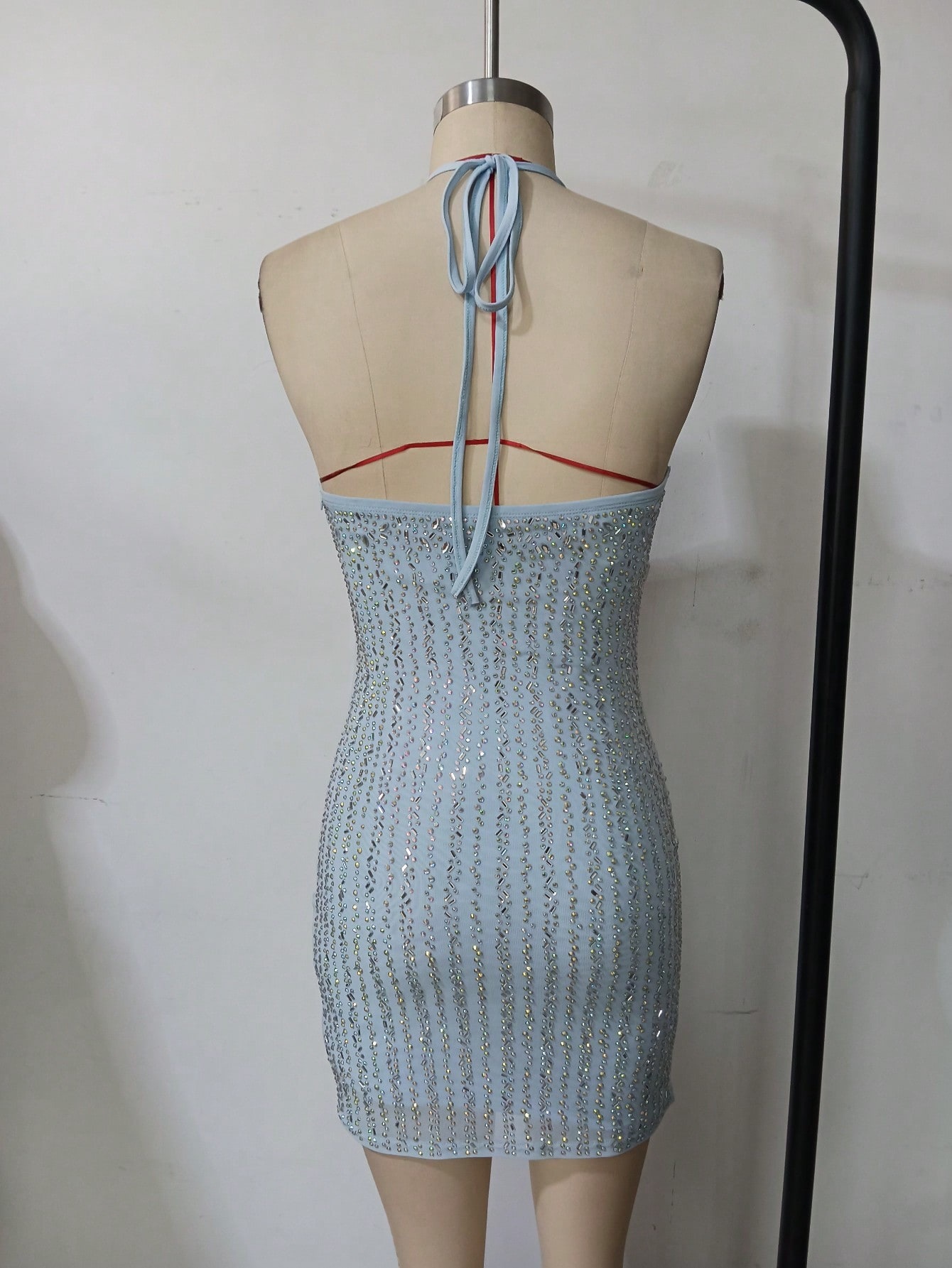 Copy| Product Name | Fashion Women's Party Club Style Mesh Beaded Rhinestone Strap Bodycon Dress |
