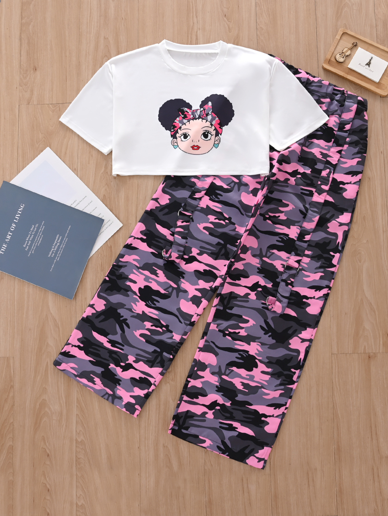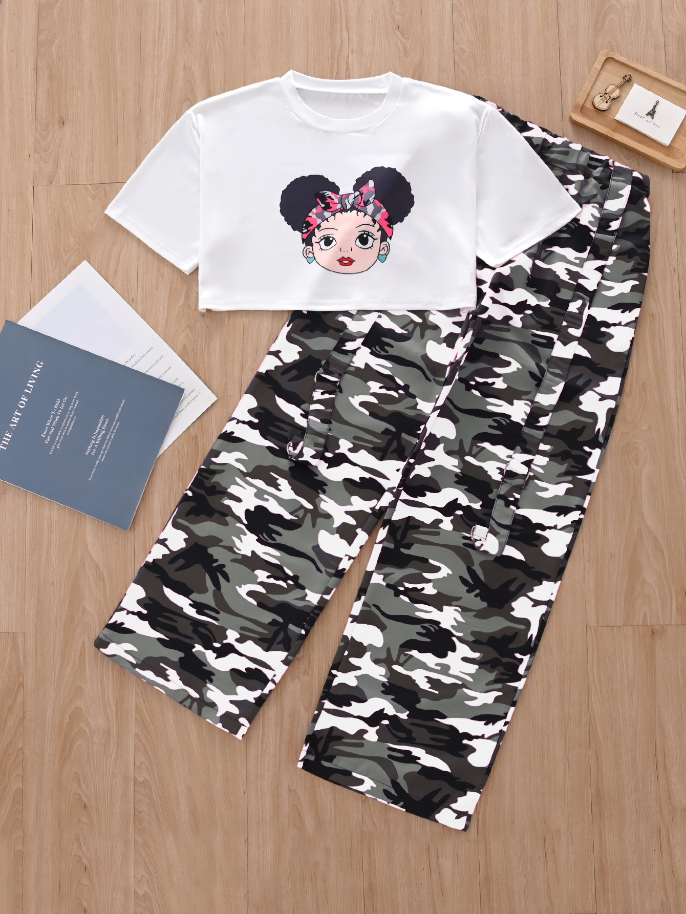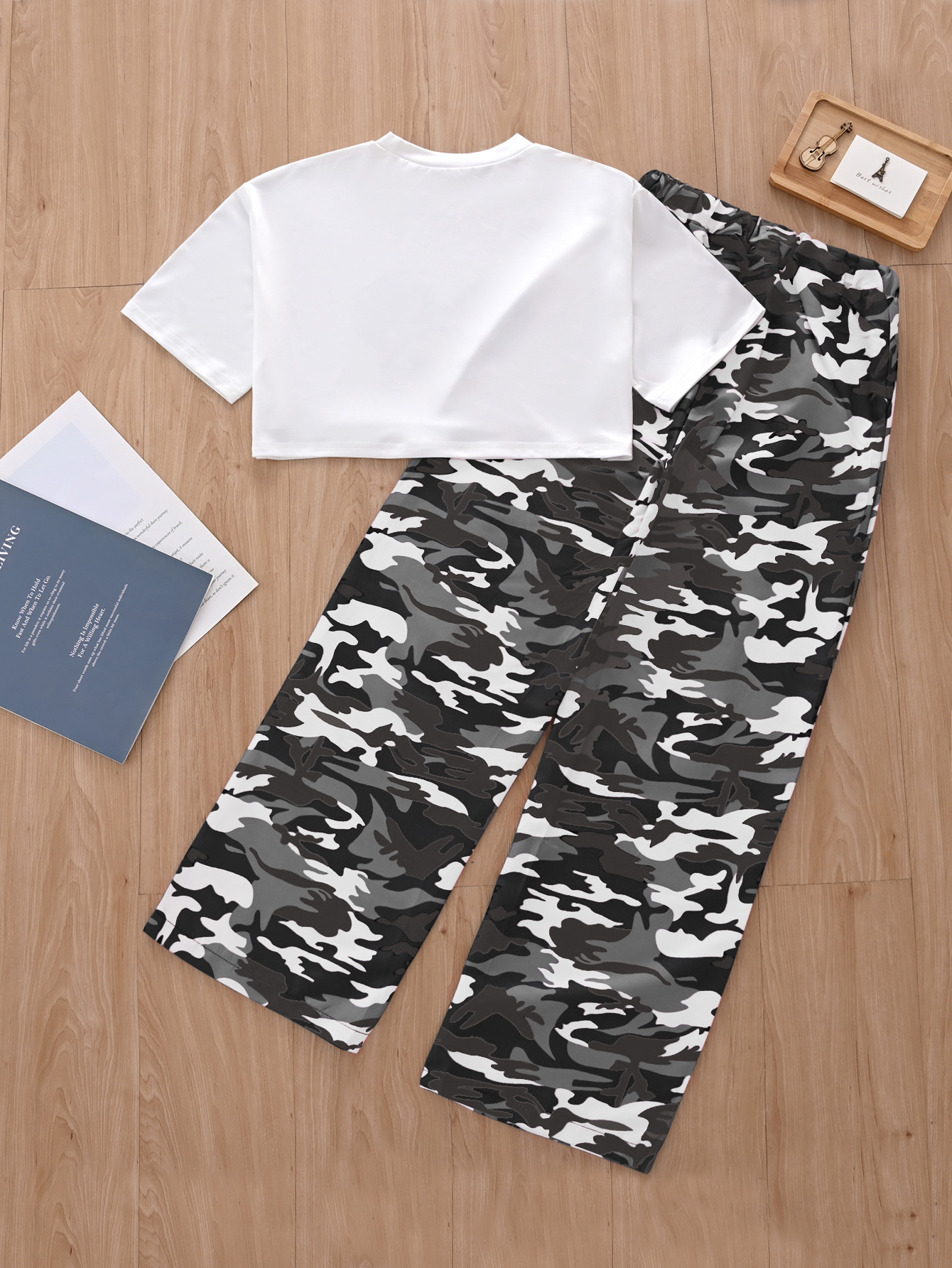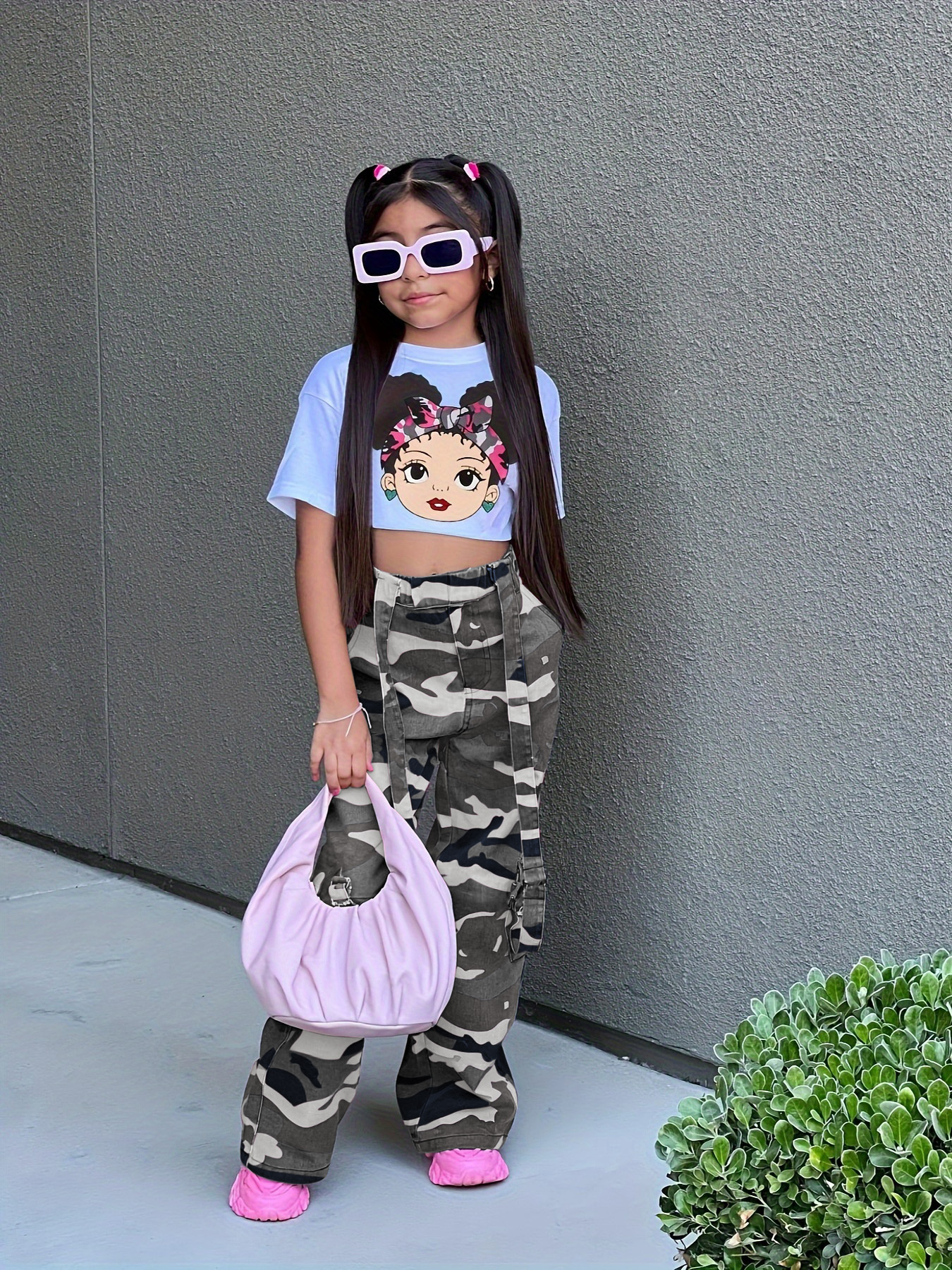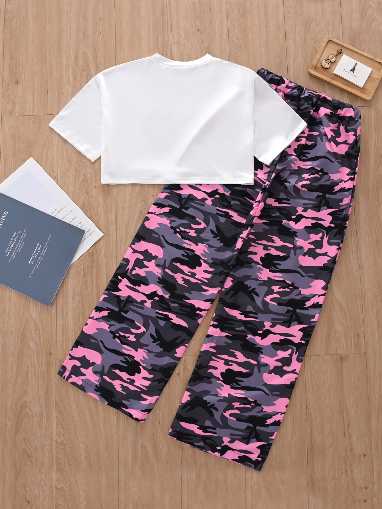 Copy| Product Name | Girls' T-shirt and camouflage hip-hop pant two-piece set |