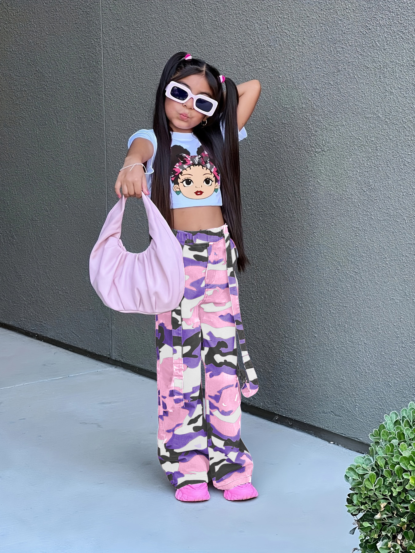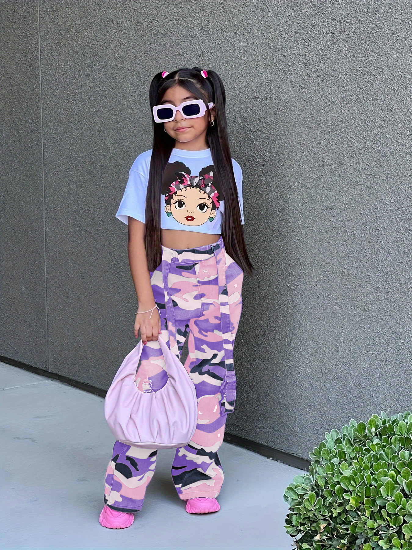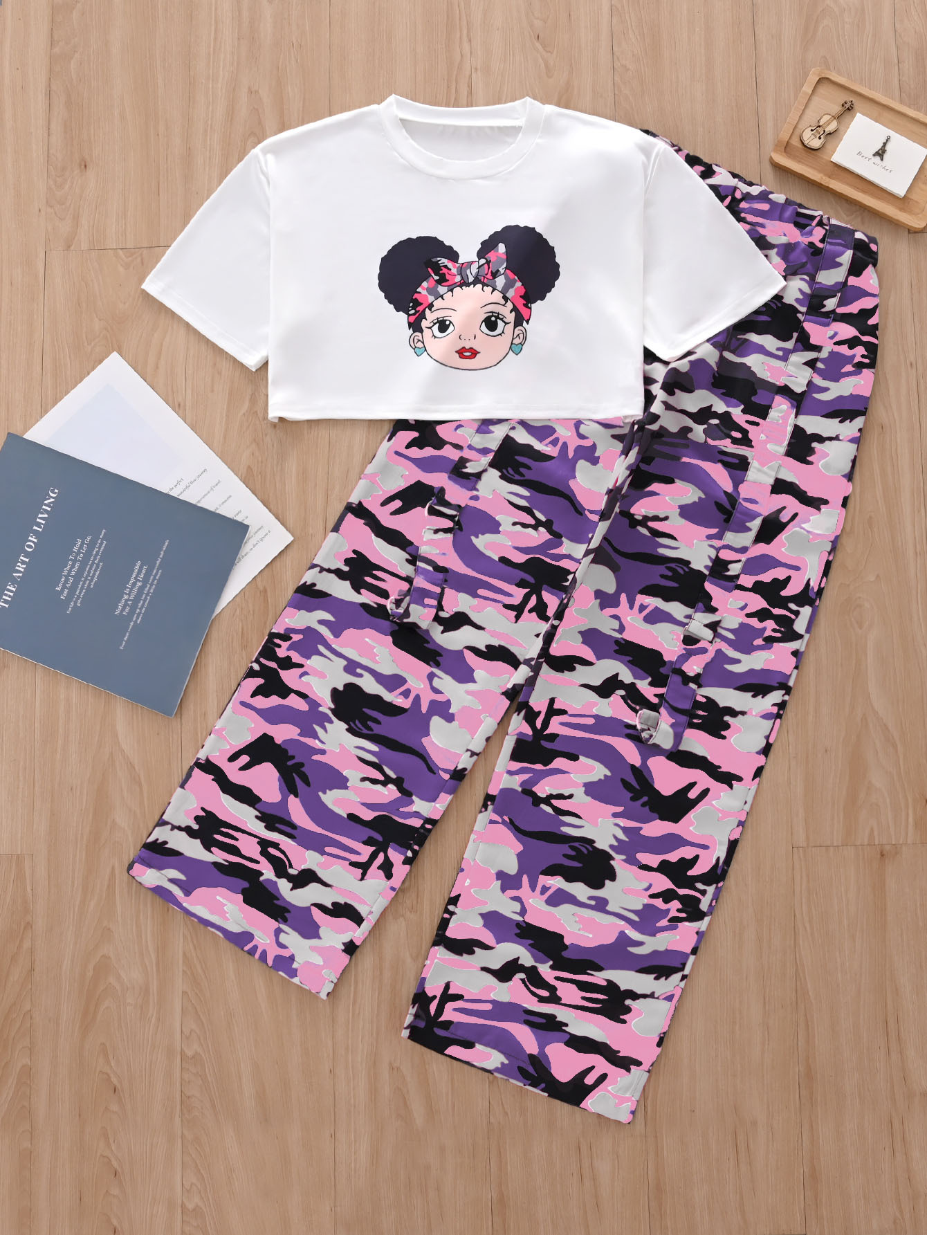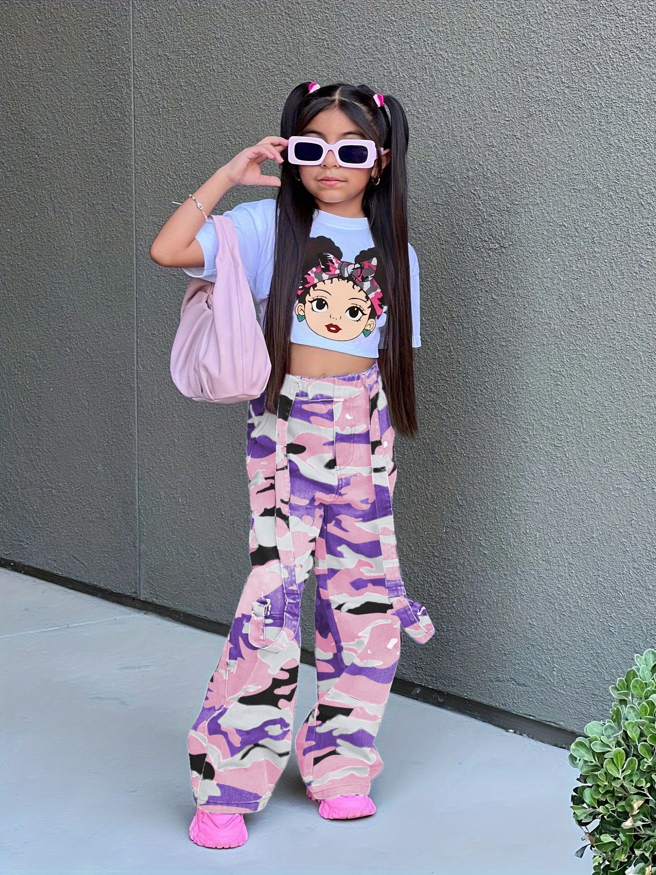 Copy| Product Name | Girls' T-shirt and camouflage hip-hop pant two-piece set |