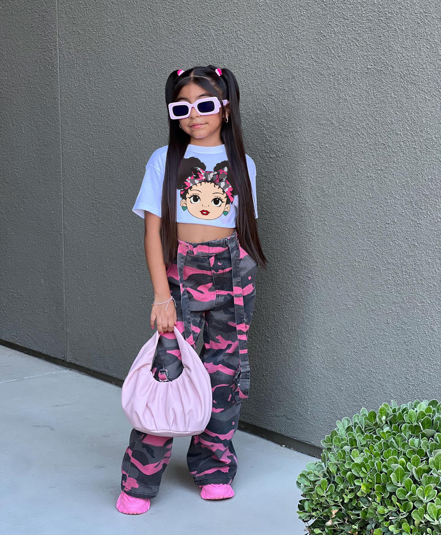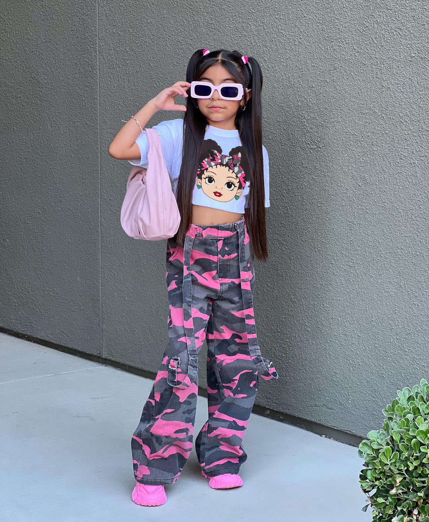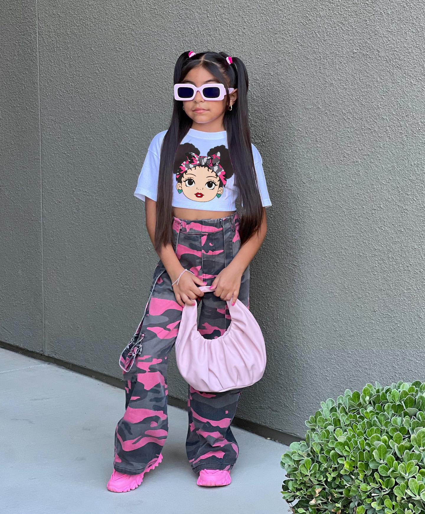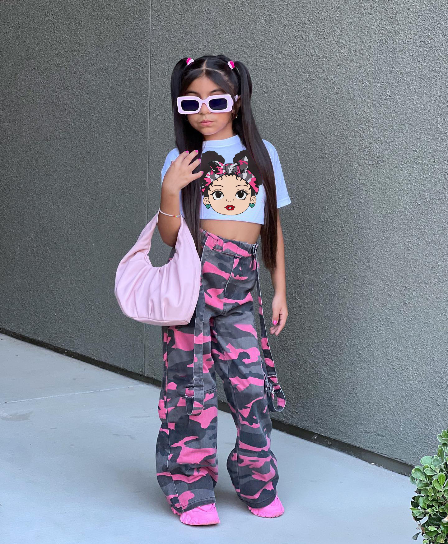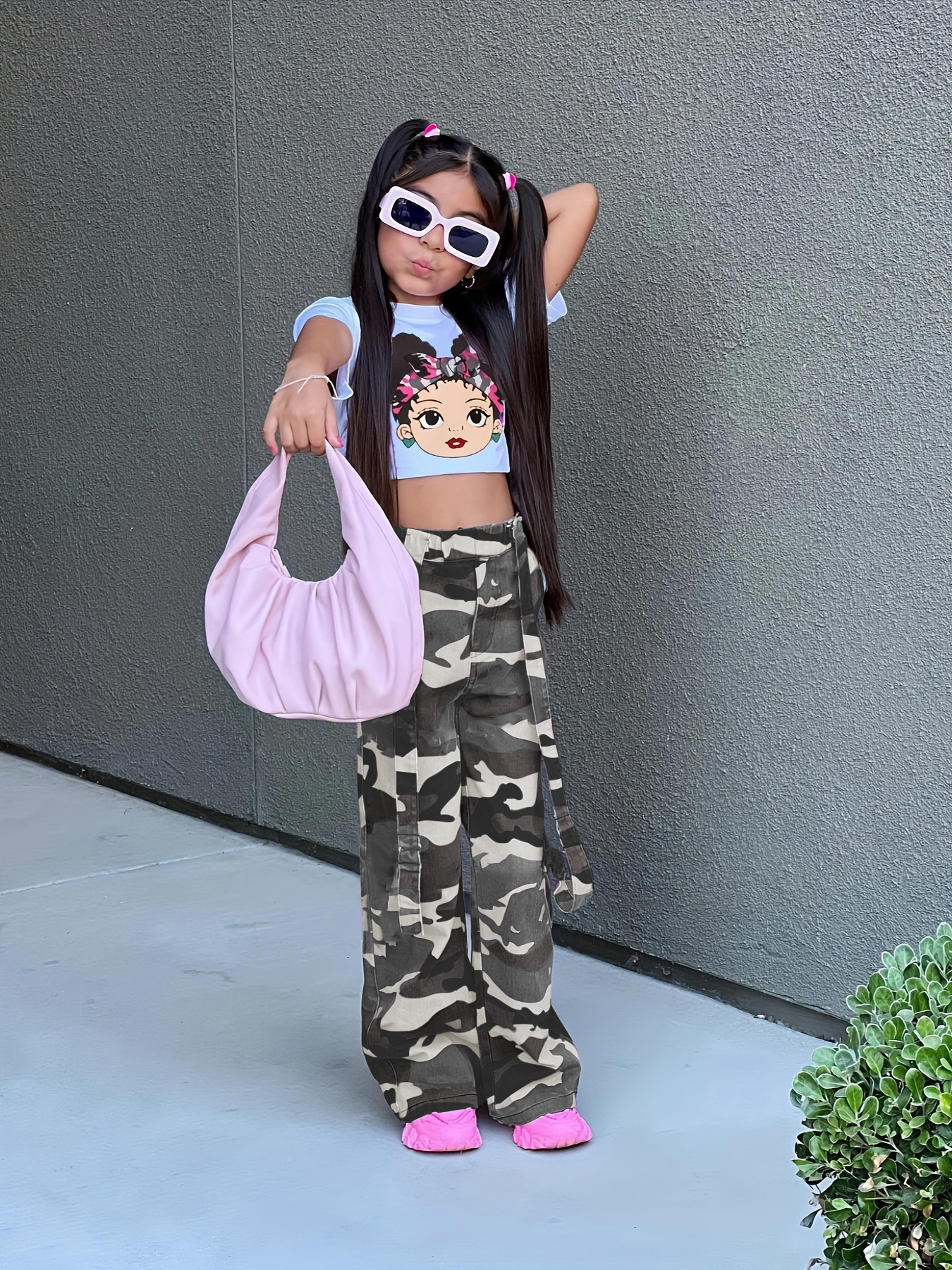 Copy| Product Name | Girls' T-shirt and camouflage hip-hop pant two-piece set |