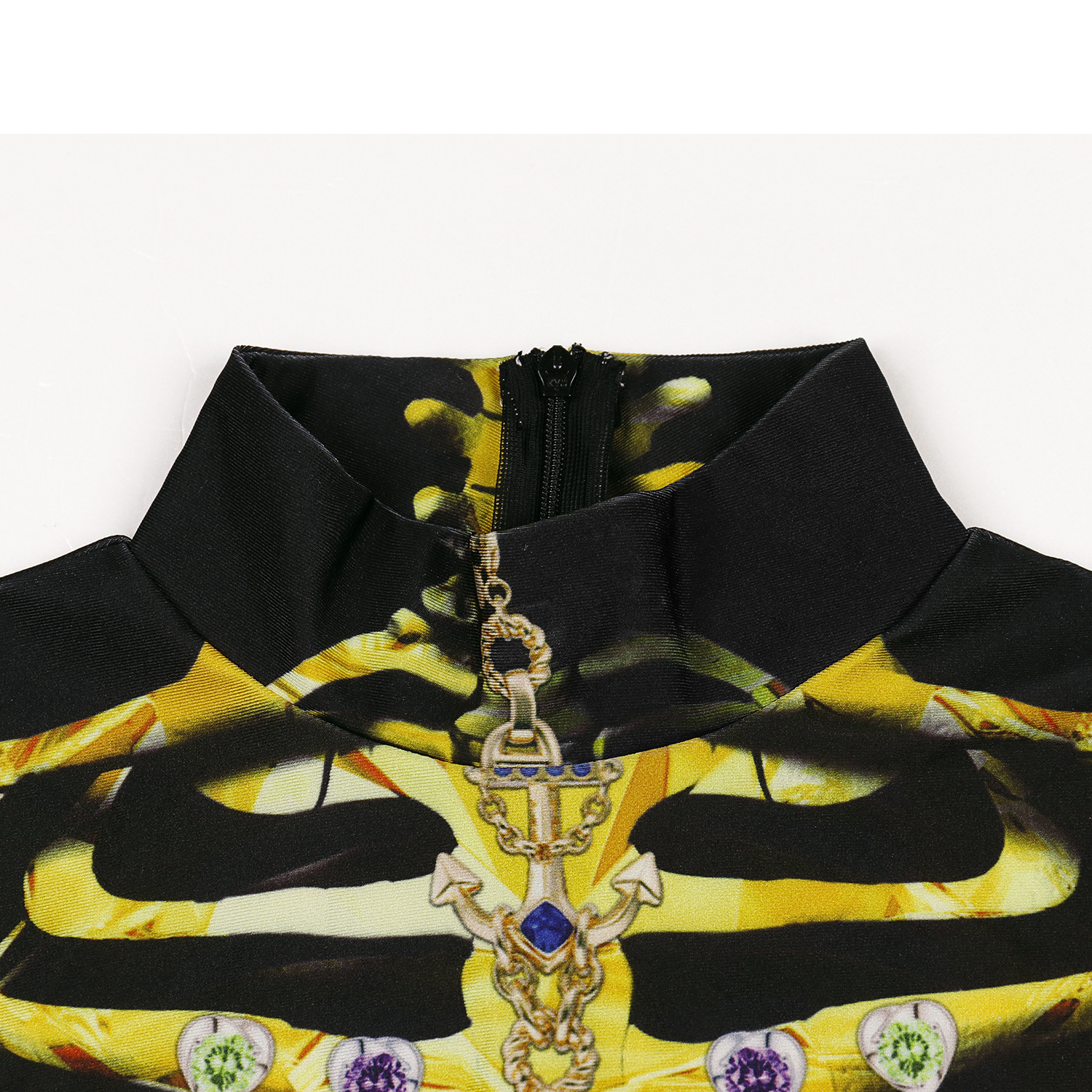 Copy| Product Name | Halloween Skeleton Printed Bodysuit, Adult Halloween Parade Jumpsuit |