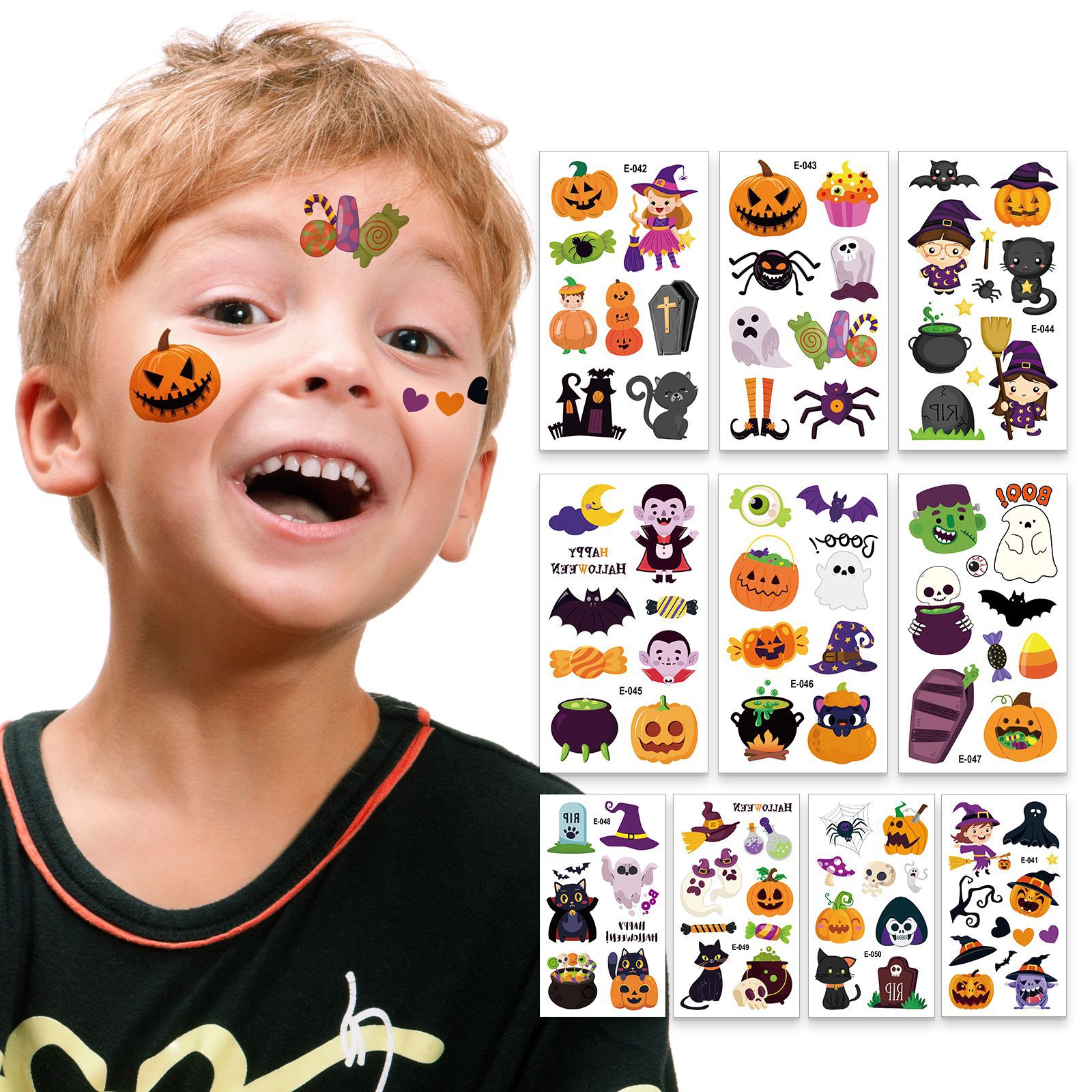 Copy| Product Name | Halloween cartoon face tattoo stickers pumpkin funny waterproof tattoo stickers |