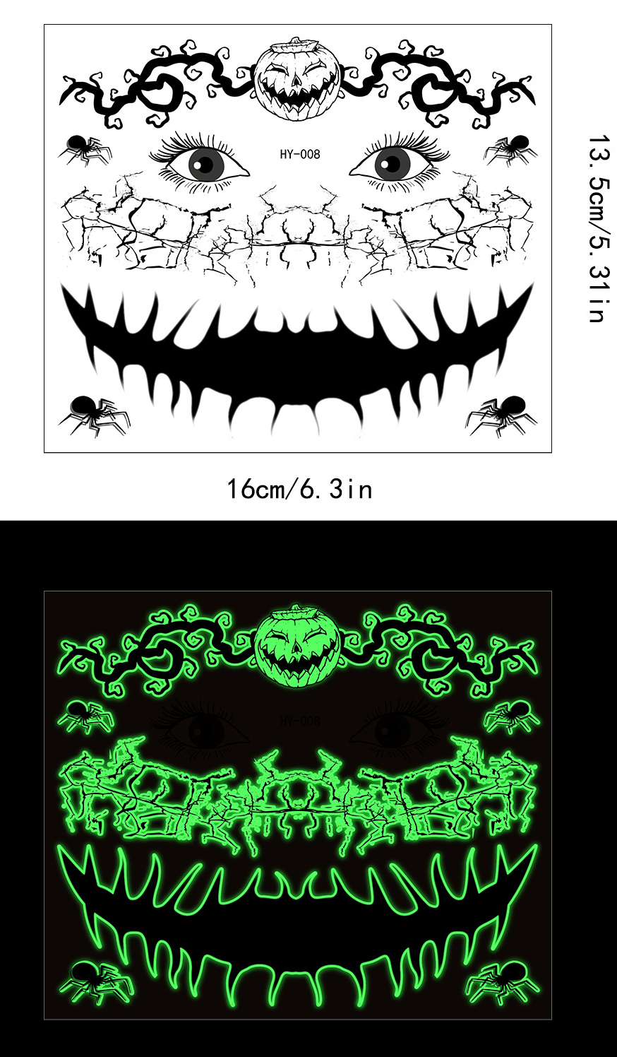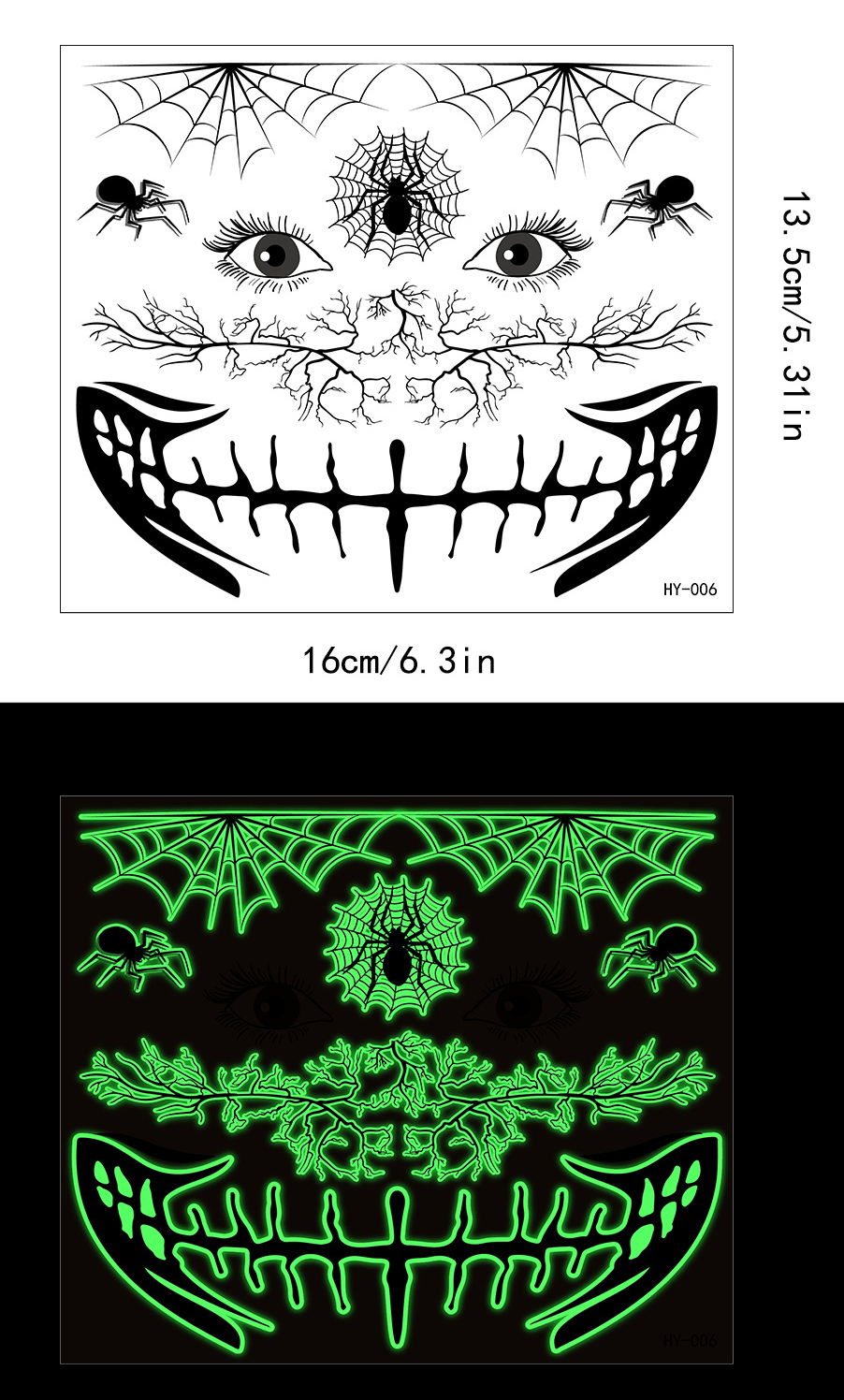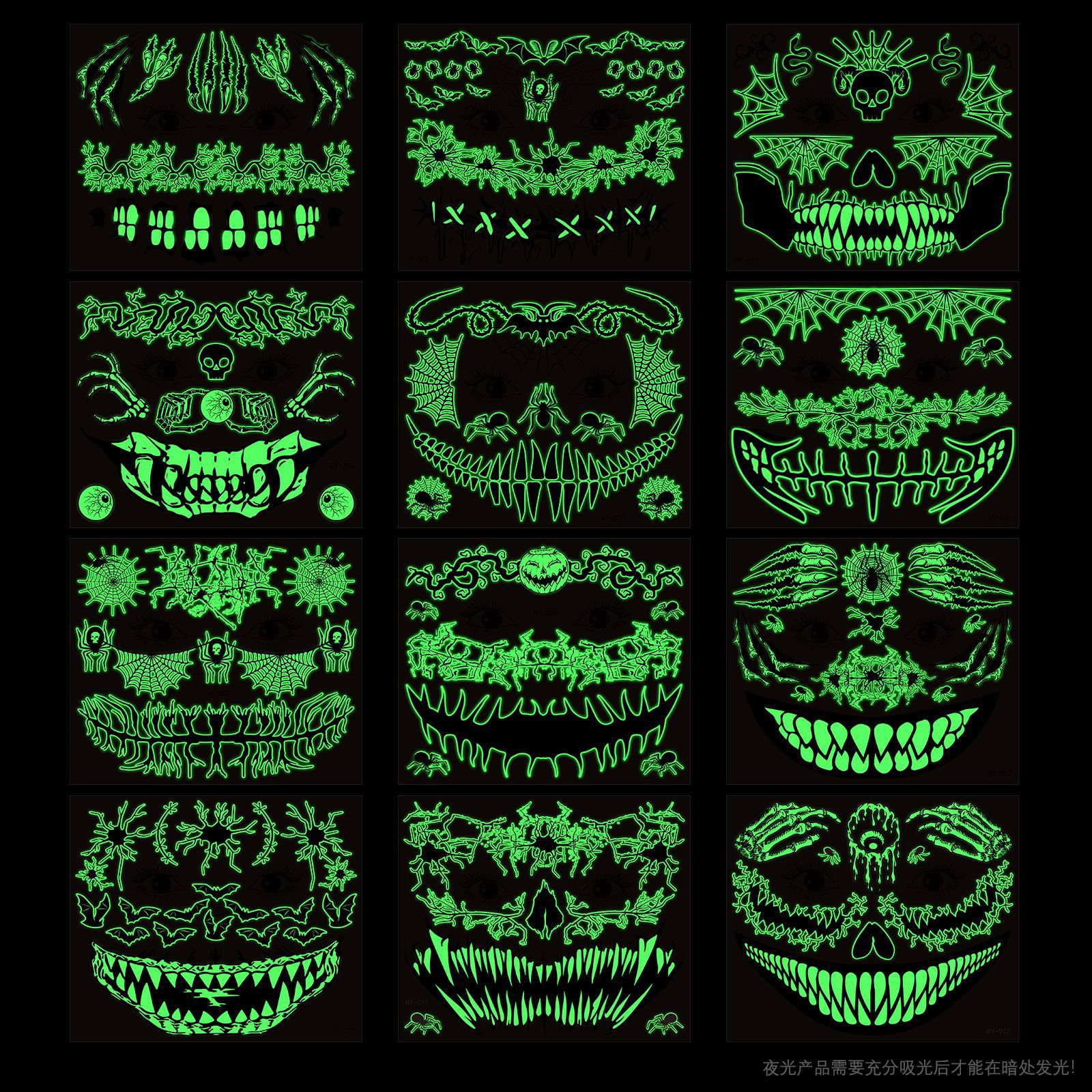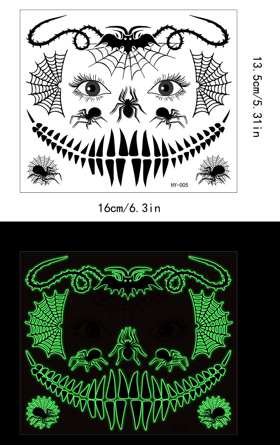 | Product Name | Halloween scary mouth glow-in-the-dark tattoo stickers spider scar waterproof |