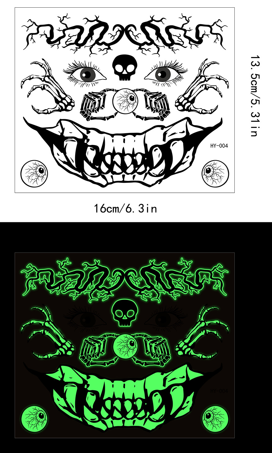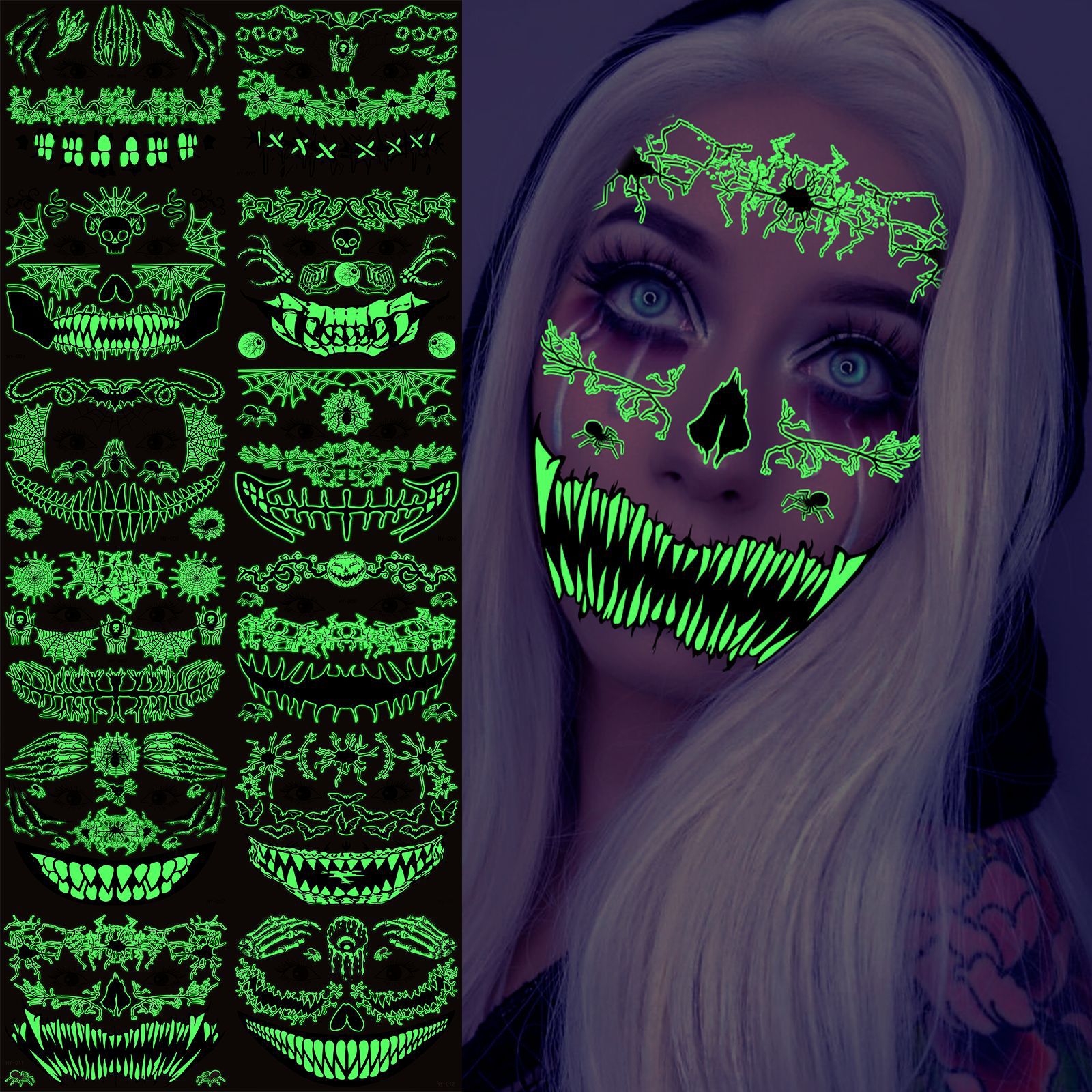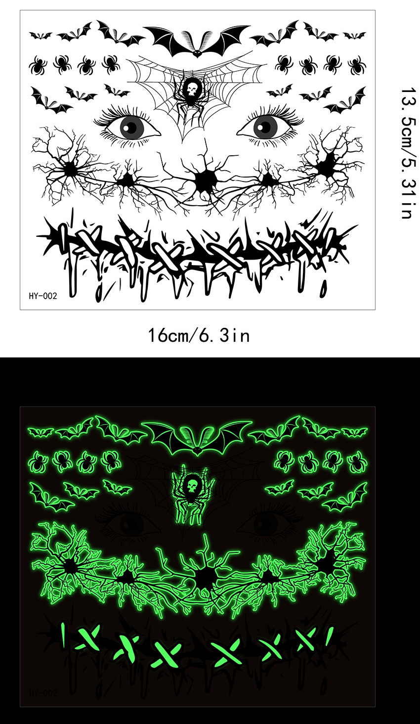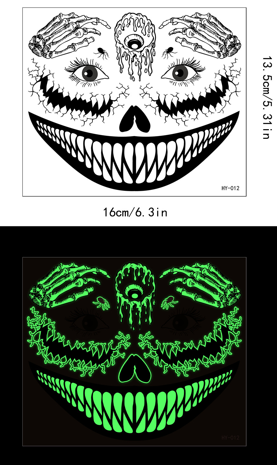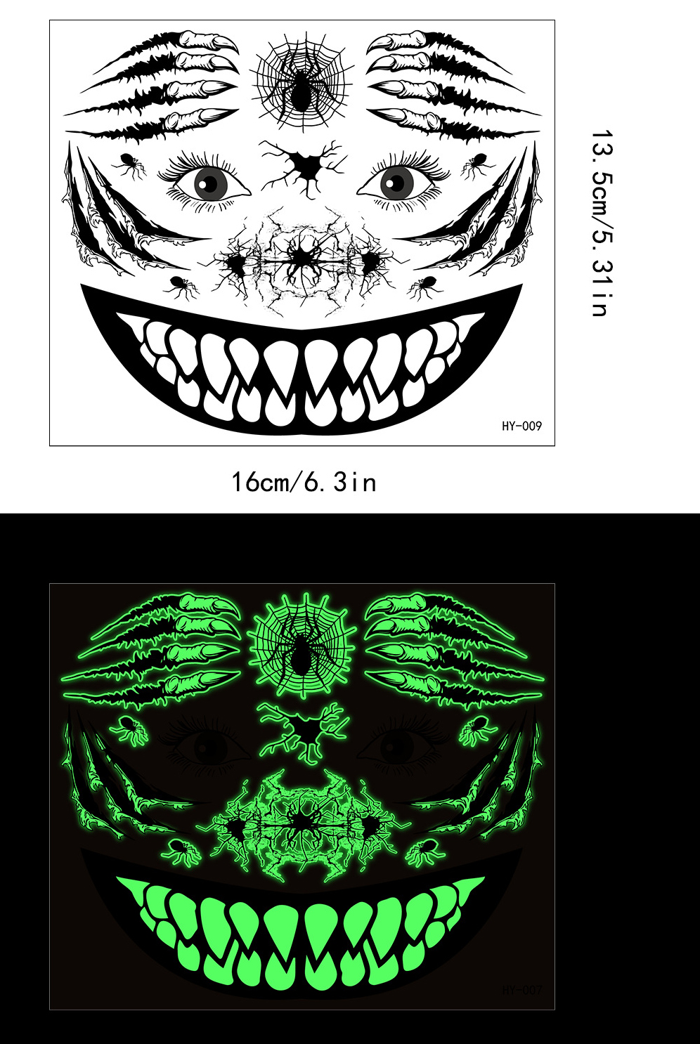 | Product Name | Halloween scary mouth glow-in-the-dark tattoo stickers spider scar waterproof |