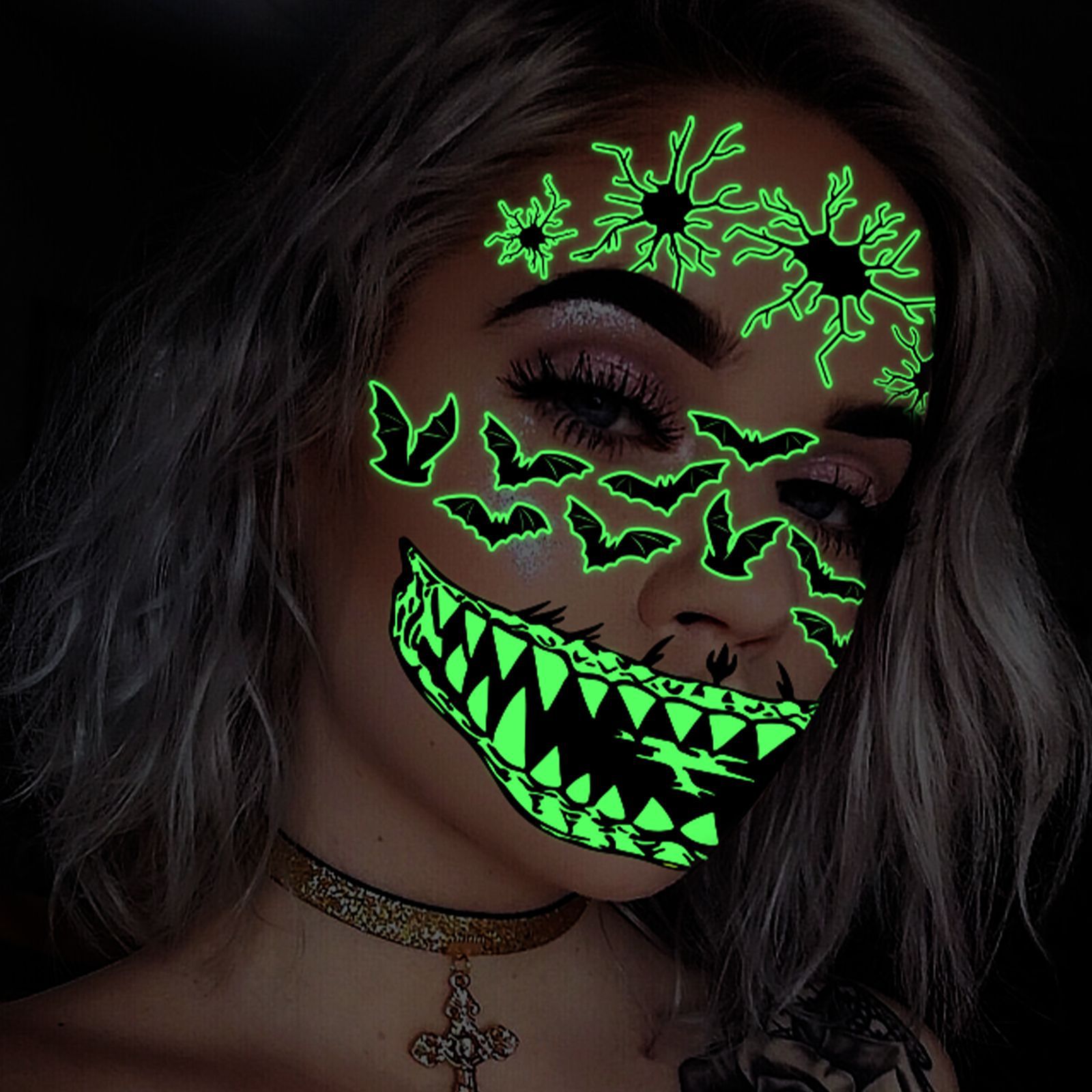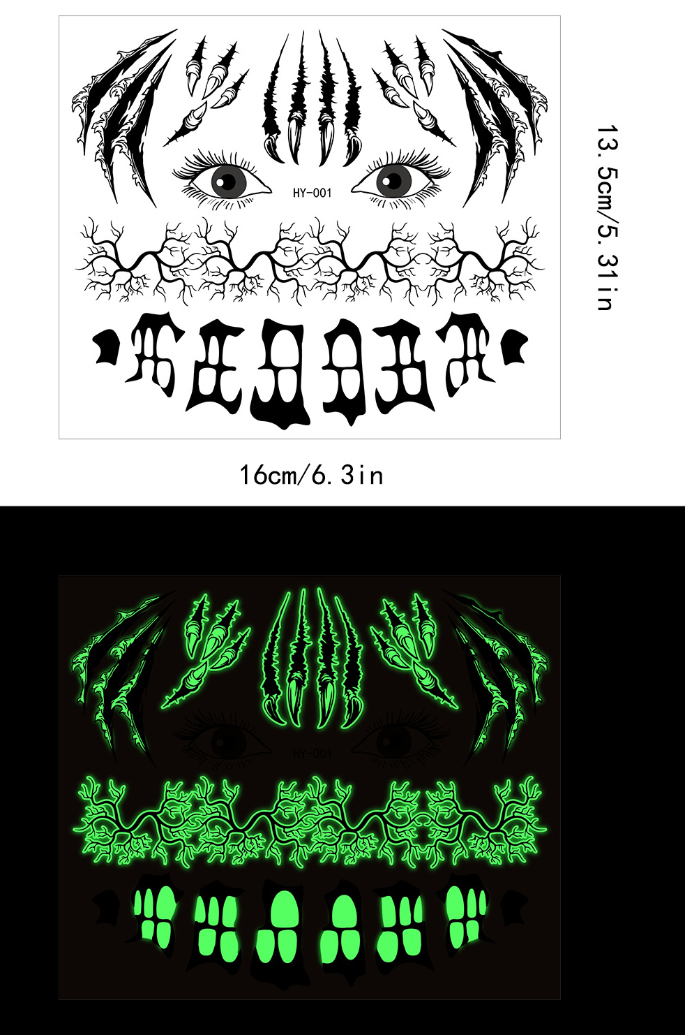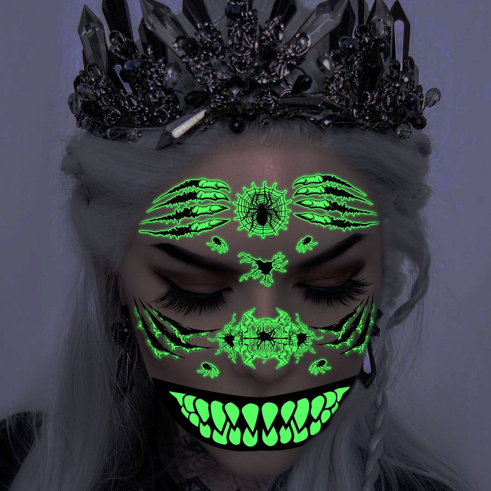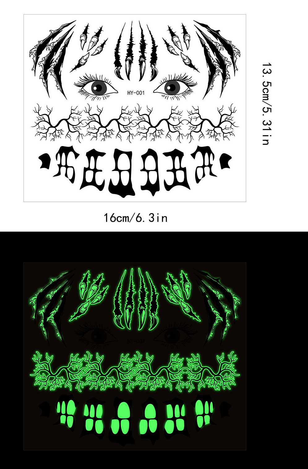 | Product Name | Halloween scary mouth glow-in-the-dark tattoo stickers spider scar waterproof |