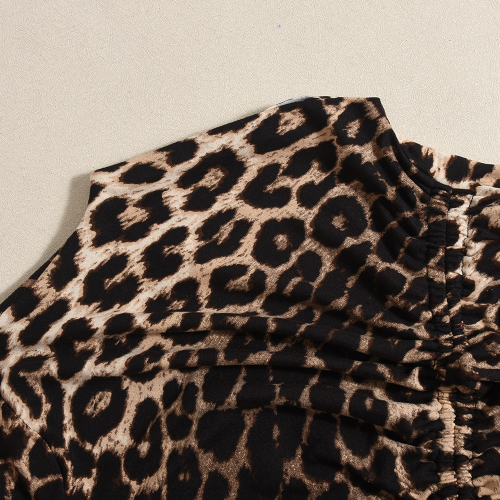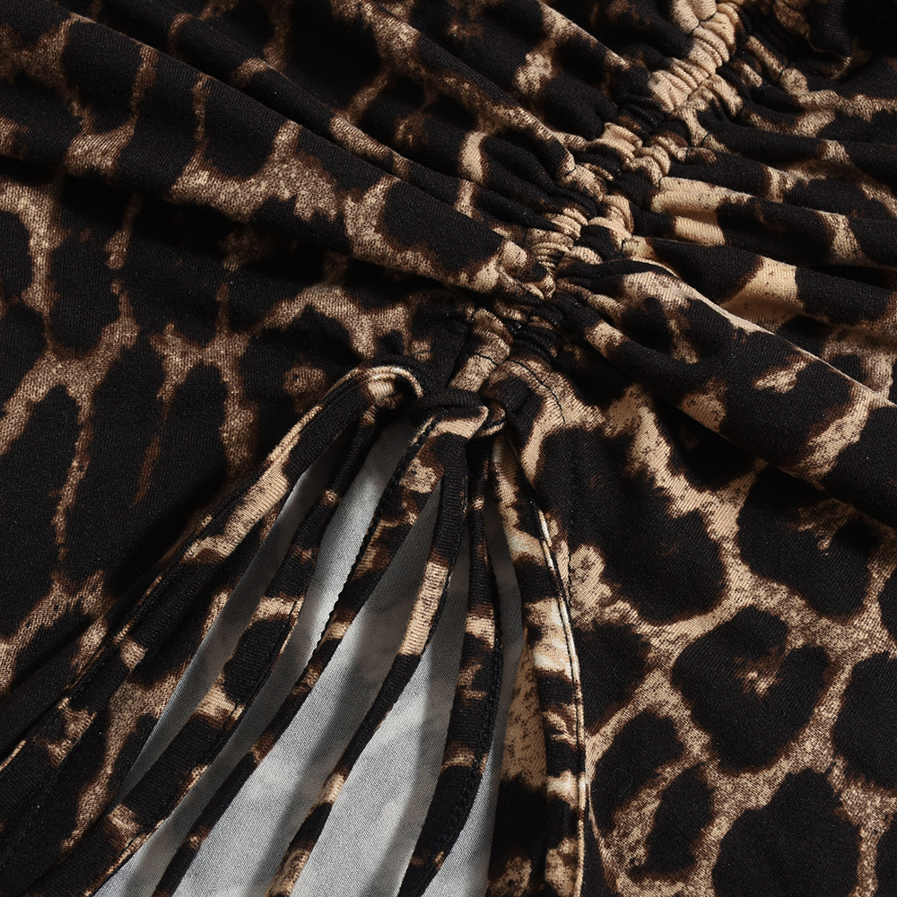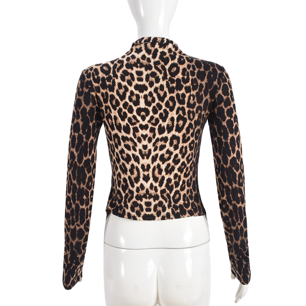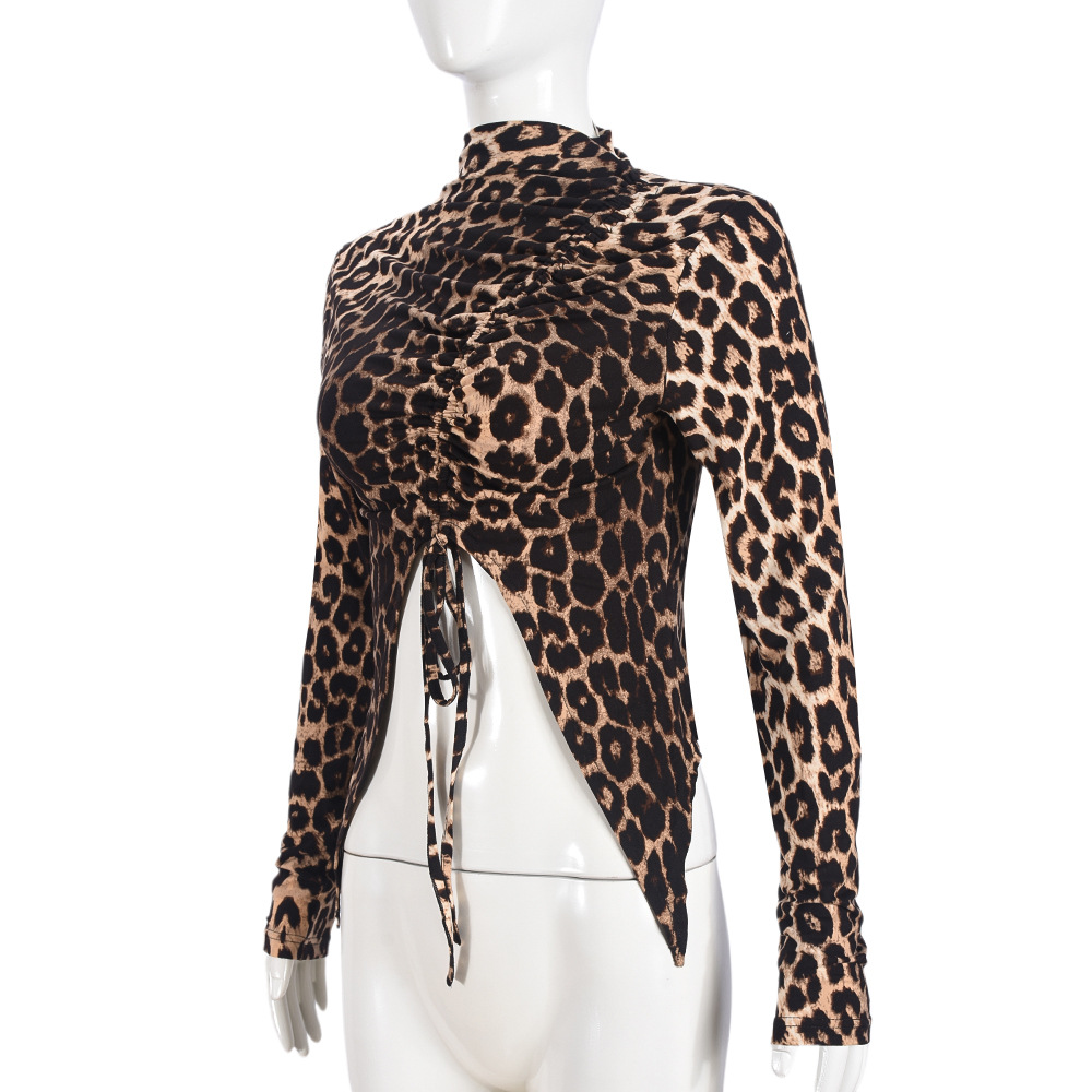 Copy| Product Name | Leopard Print Women's Drawstring Crop Top Tight Fitting Long Sleeve T-Shirt |
