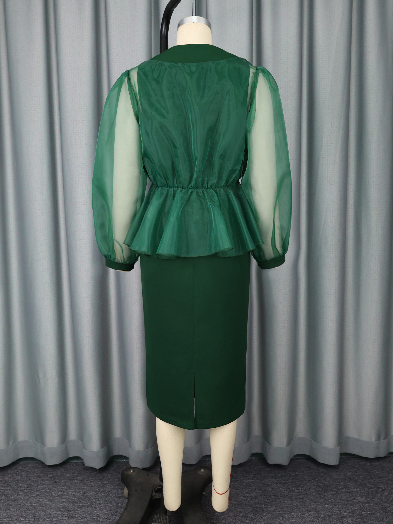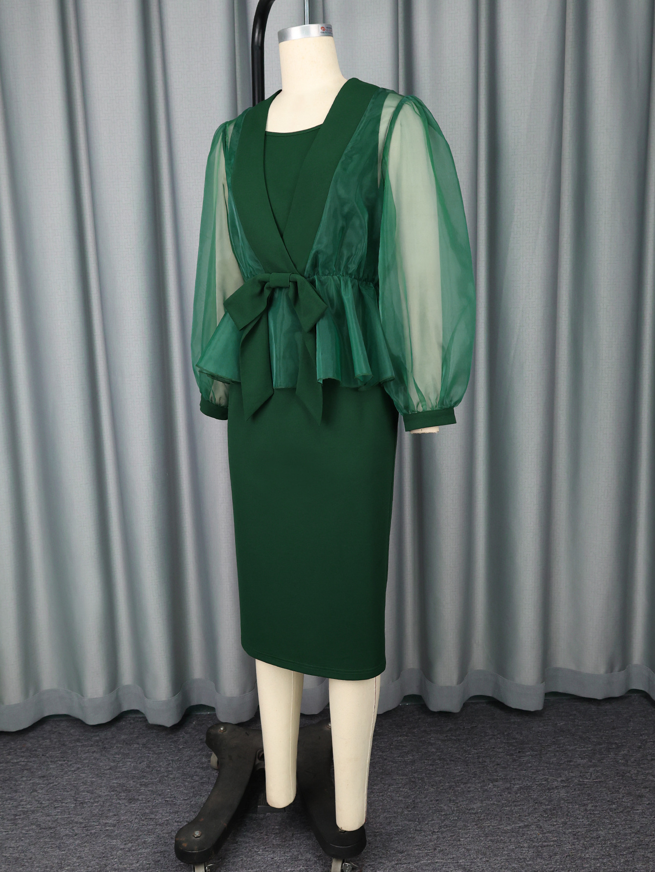 Copy| Product Name | Mesh See-Through Bowknot Coat Slim Fit Bodycon Party Dress Two-Piece Set |
