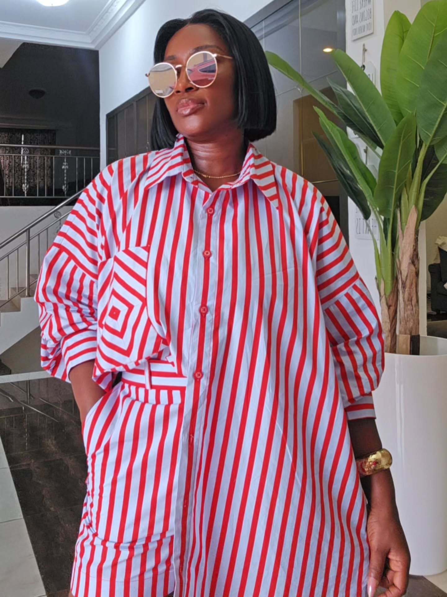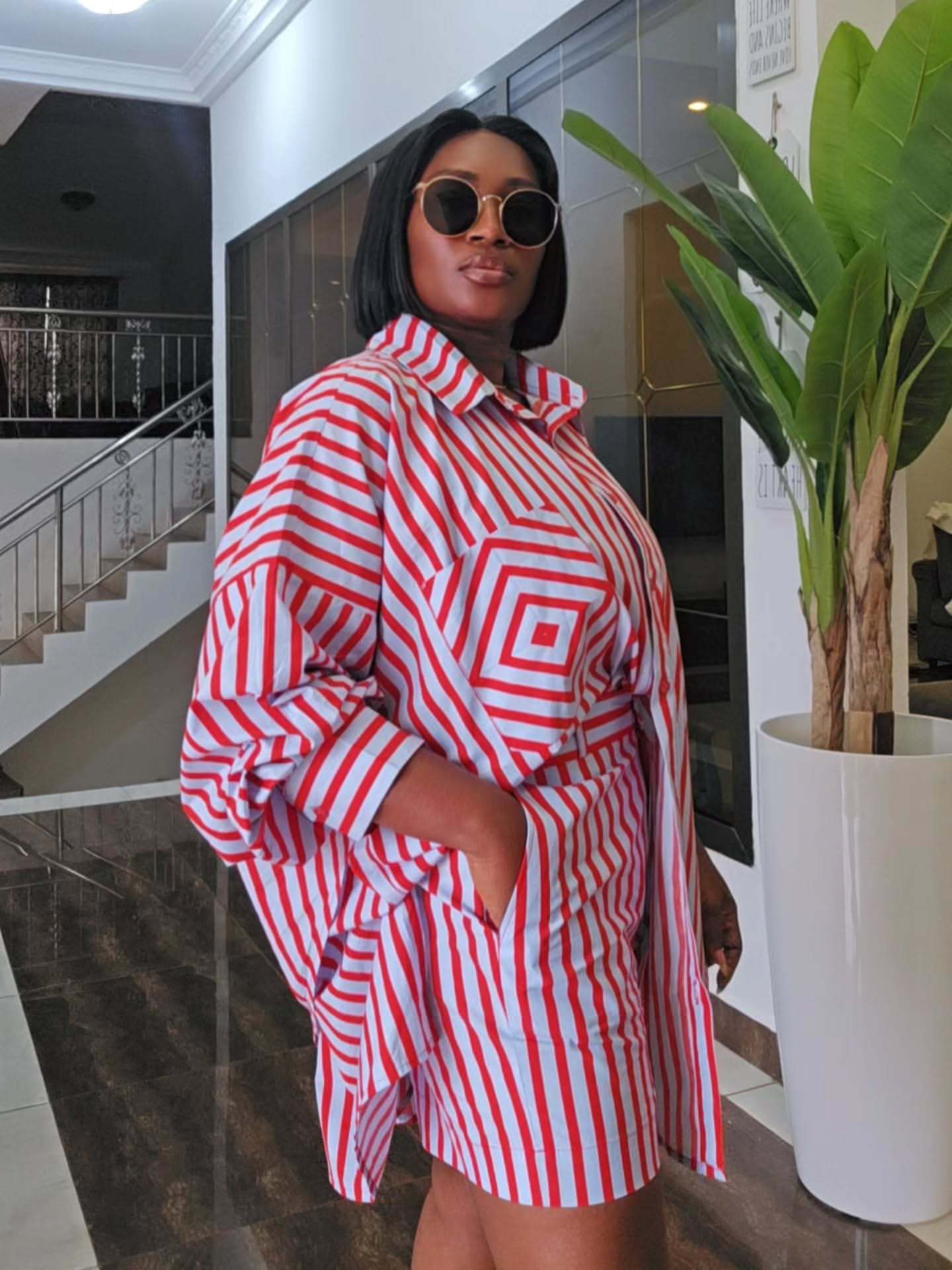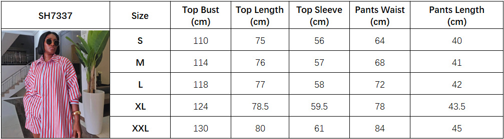 This Plus Size African Women Striped Long Sleeve Backless Shirt And Shorts Two-Piece Set Design Made Of High Quality Polyster And Spandex Material. It Is Stretchy, Durable And Comfortable. It Come With The Top And Shorts. Wholesale Short Sets Saves Some People From The Trouble Of Matching. And For Matchmakers It Is More Flexible Than One-Piece Outfit. Two Piece Short Set Can Be Worn Together Or Individually, Ladies Can Match Them According To Different Occasions. Grab Different Two Piece Short Sets For This Spring And Summer.