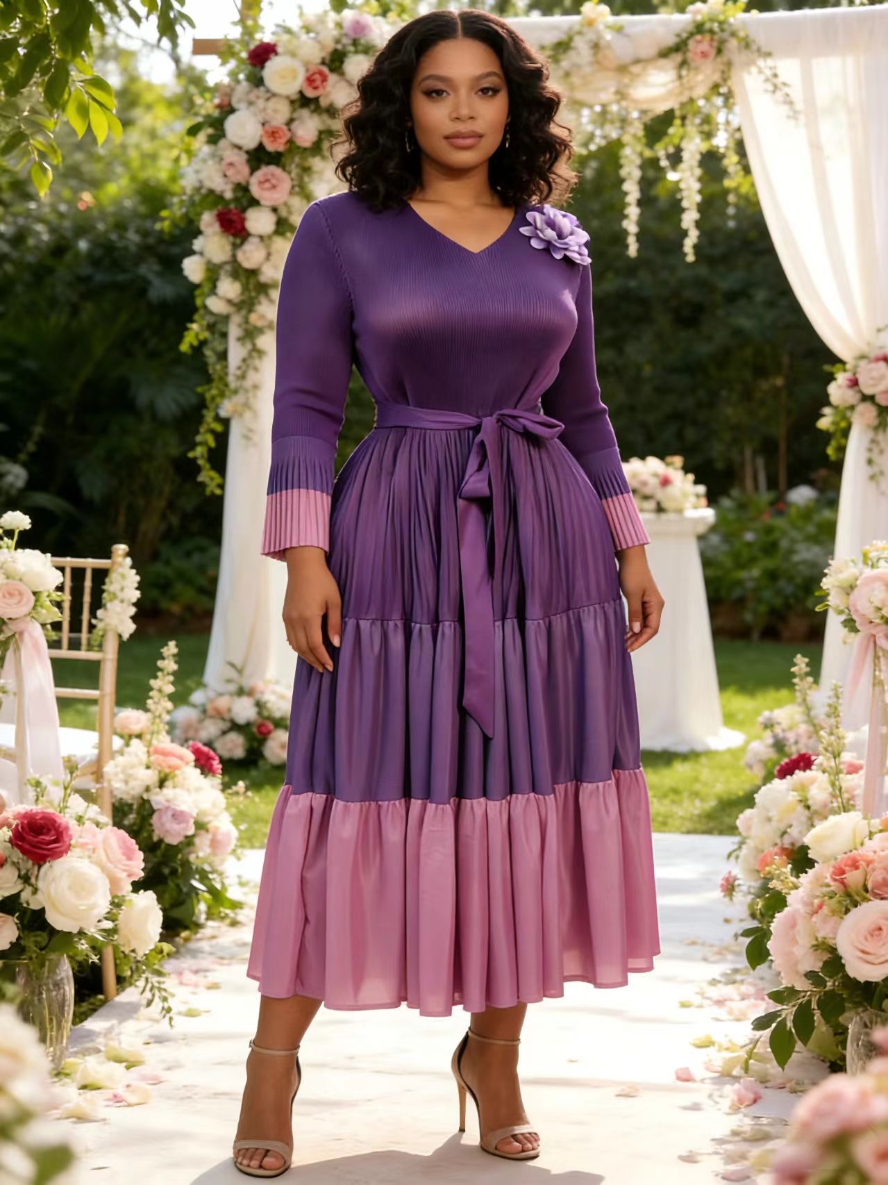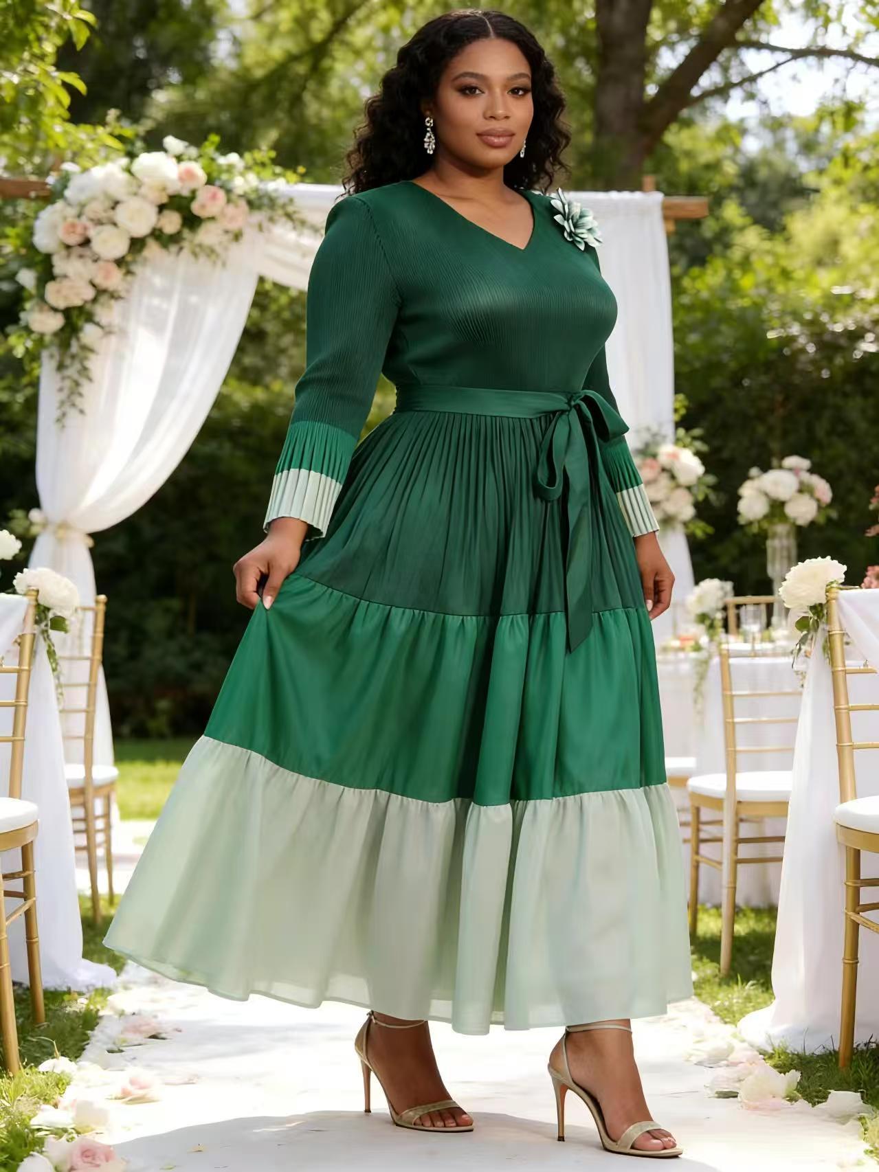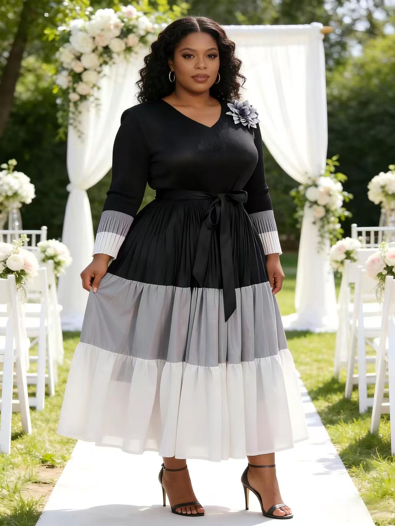 Copy| Product Name | Plus Size African Women's Pleated Color Block Elegant Maxi Dress |