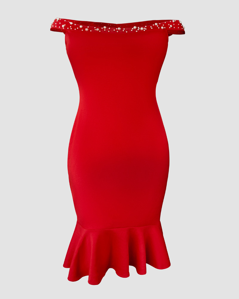 Copy| Product Name | Plus Size Women Beaded Off-Shoulder Slit Mermaid Dress with Ruffles |