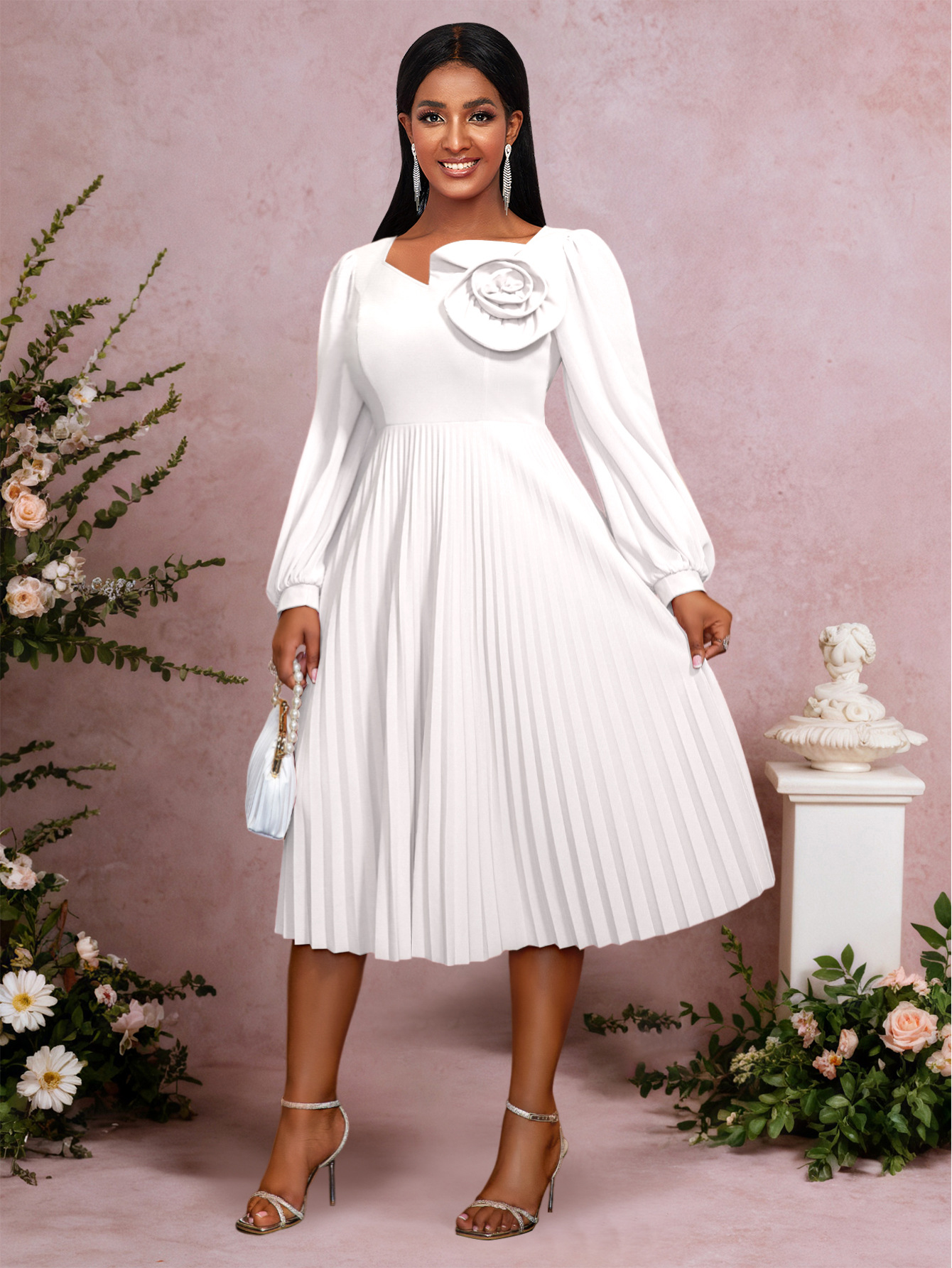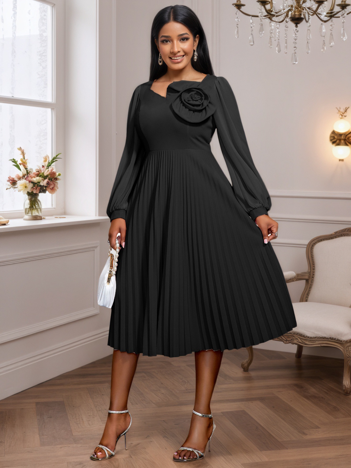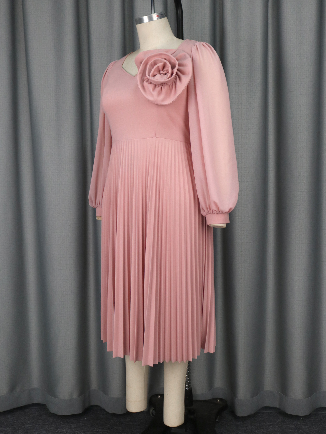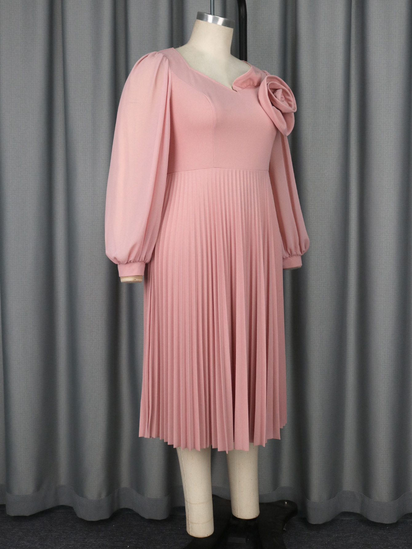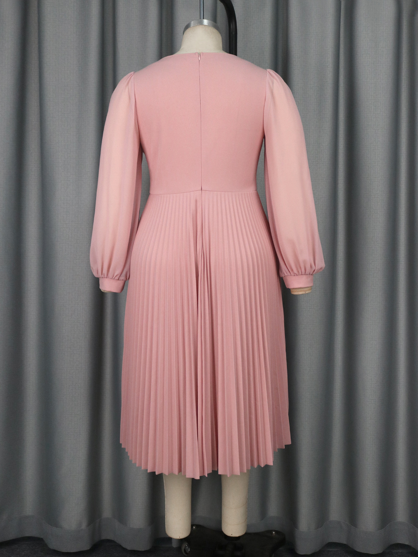 Copy| Product Name | Plus-Size Women Elegant V-Neck Lantern Sleeve Pleated Dress |