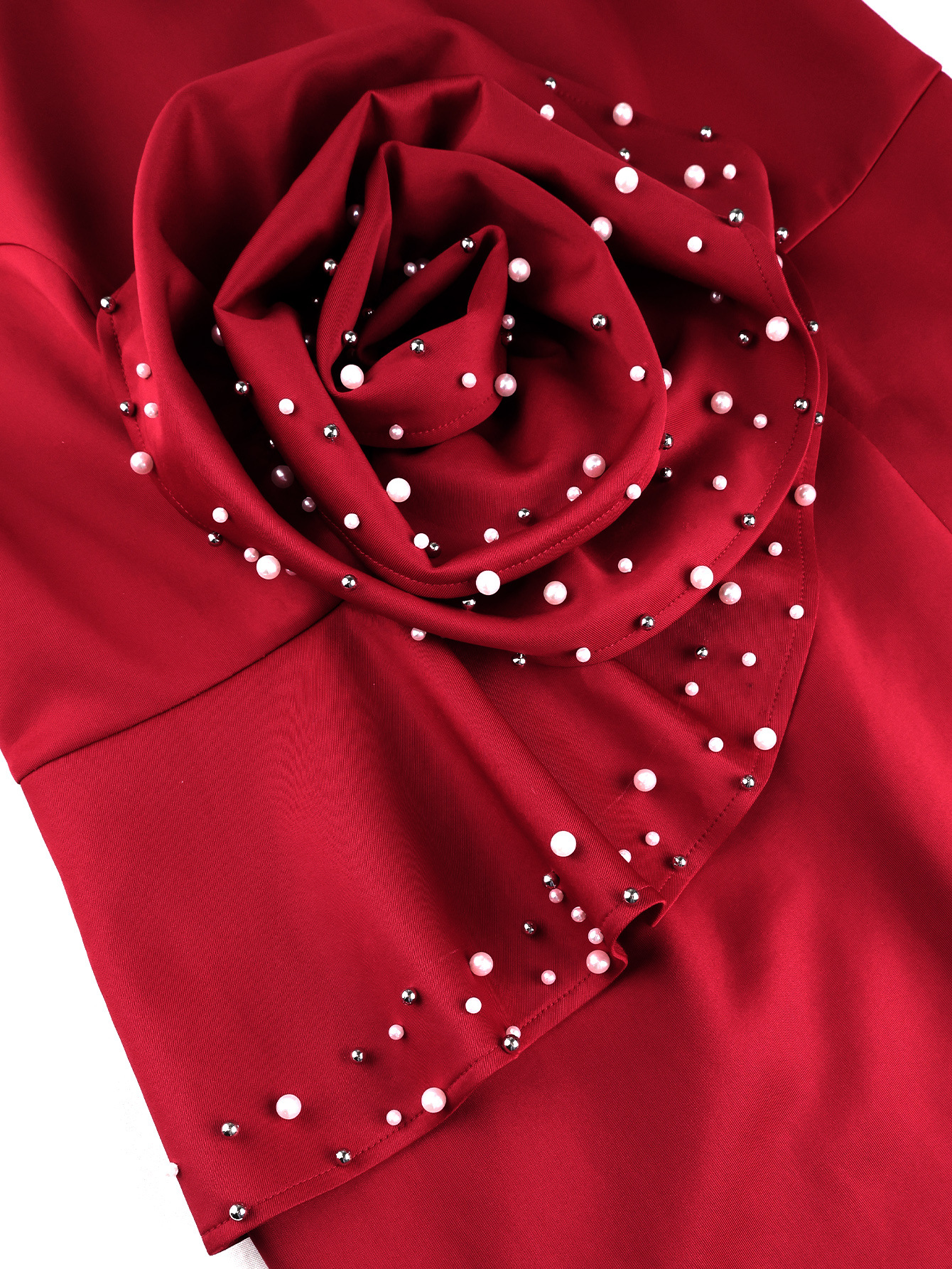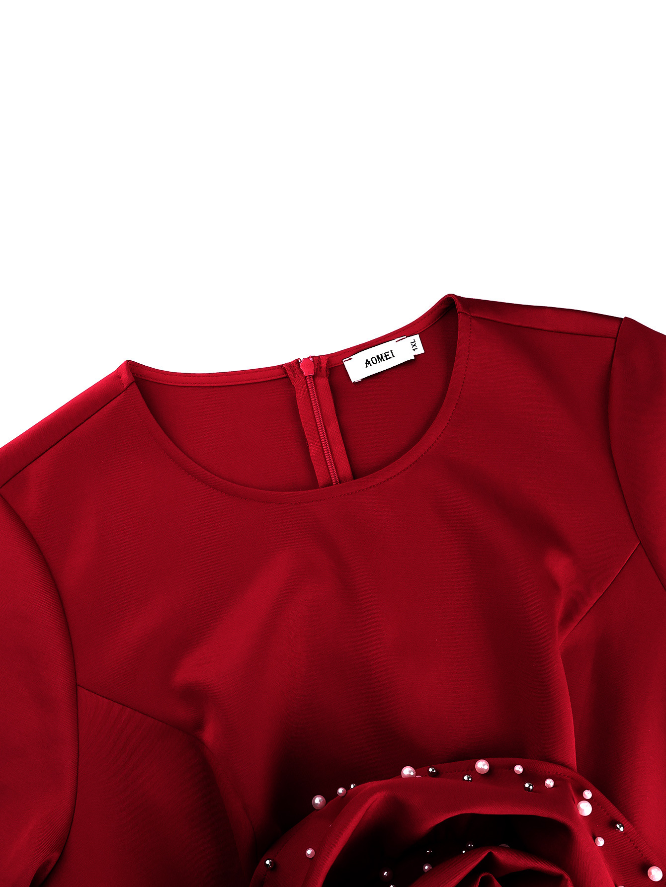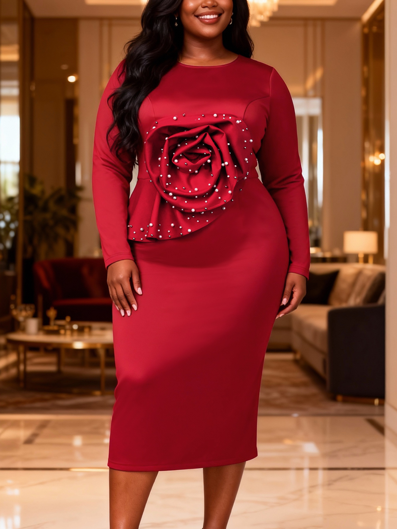Copy| Product Name | Plus Size Women Floral Pearl Rose Long-Sleeved Elegant Bodycon Dress |