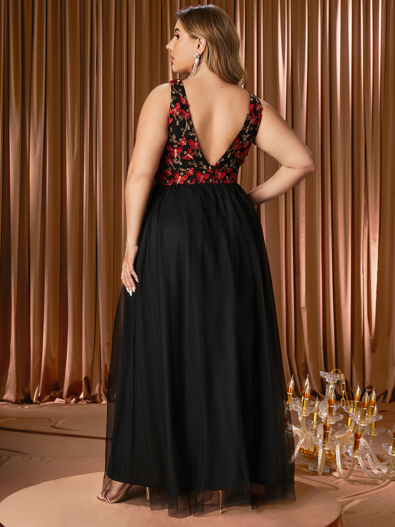 Copy| Product Name | Plus Size Women Prom Embroidered Mesh Patchwork Evening Dress |