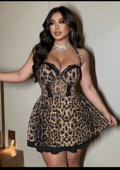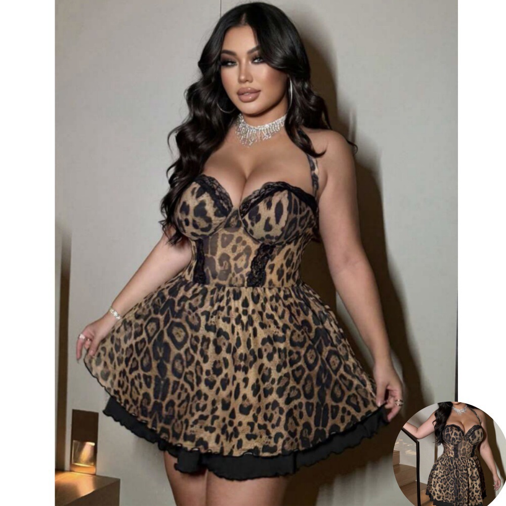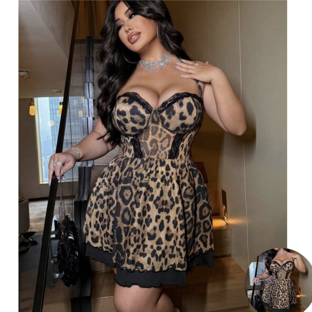 Copy| Product Name | Plus-Size Women Sexy Leopard Print Lace Nightdress Sexy Lingerie |