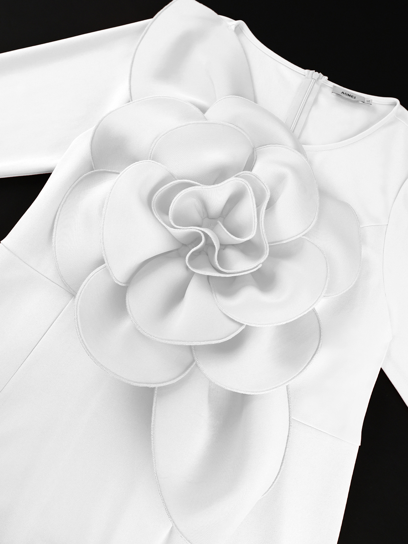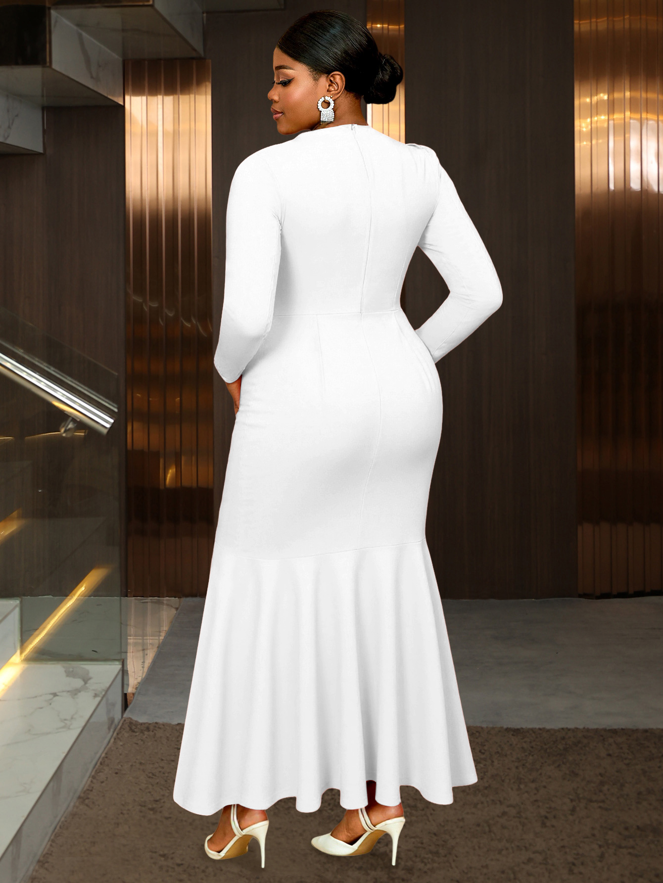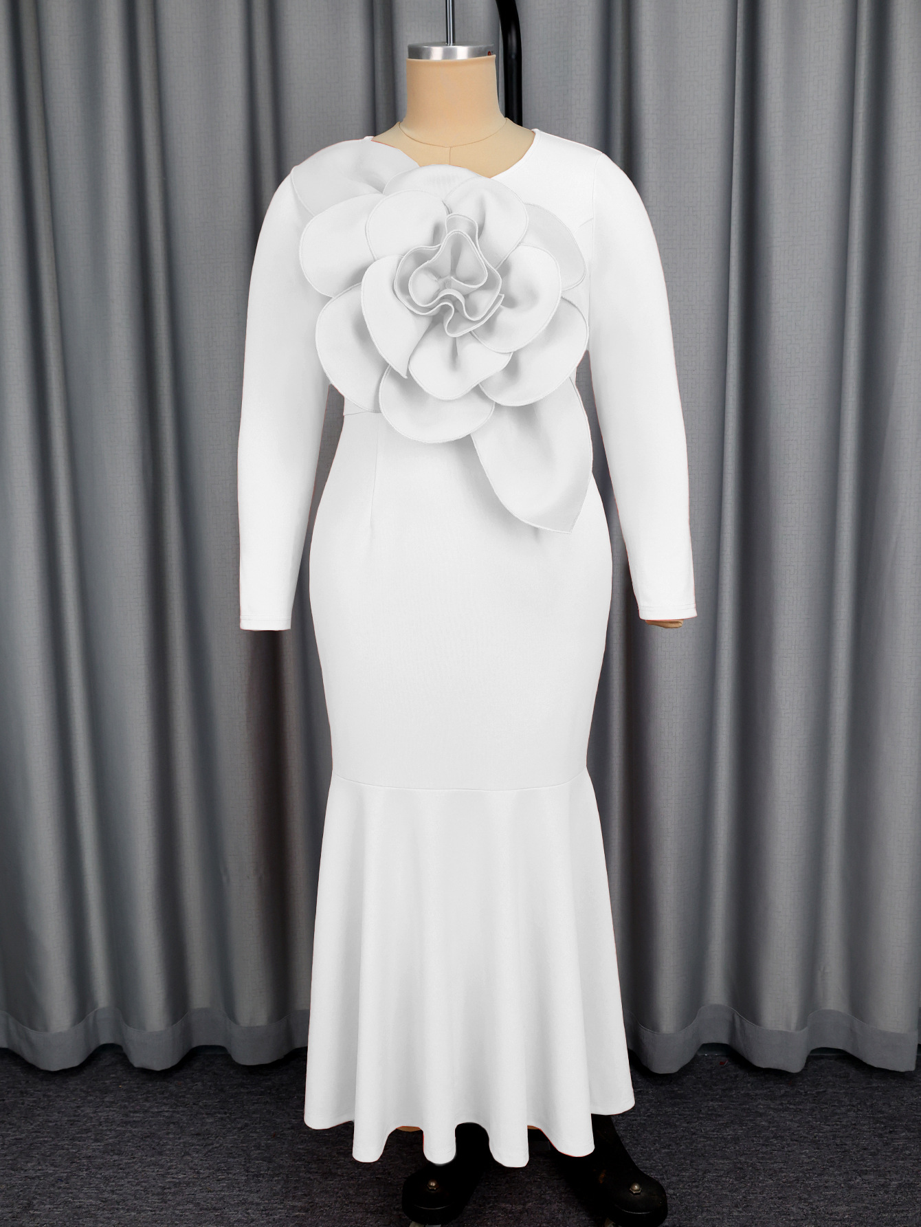 Copy| Product Name | Plus Size Women White Floral Long-Sleeved Fishtail Elegant Dress |