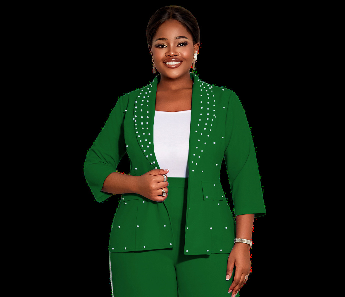 This Plus Size Women's Career Turndown Collar Green Beaded Three-Quarter Sleeve Slim Fit Blazer Dress Made Of Soft And Elastic Fabric. Global Lover Wholesale Plus Size Dresses And Hope Curvy Ladies Find Here a Warm And Exciting Place To Shop Affordable Curvy Dresses Online - Plus Size Casual, Office, Party, Wedding, Evening Dresses Xl To 6xl.When You Need More Wholesale Plus Size Clothing, You Can Always Find What You Need On Our Wholesale Women Fashion Online Store.