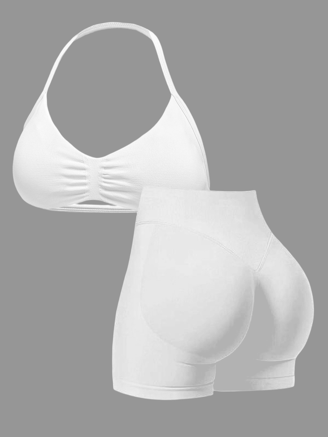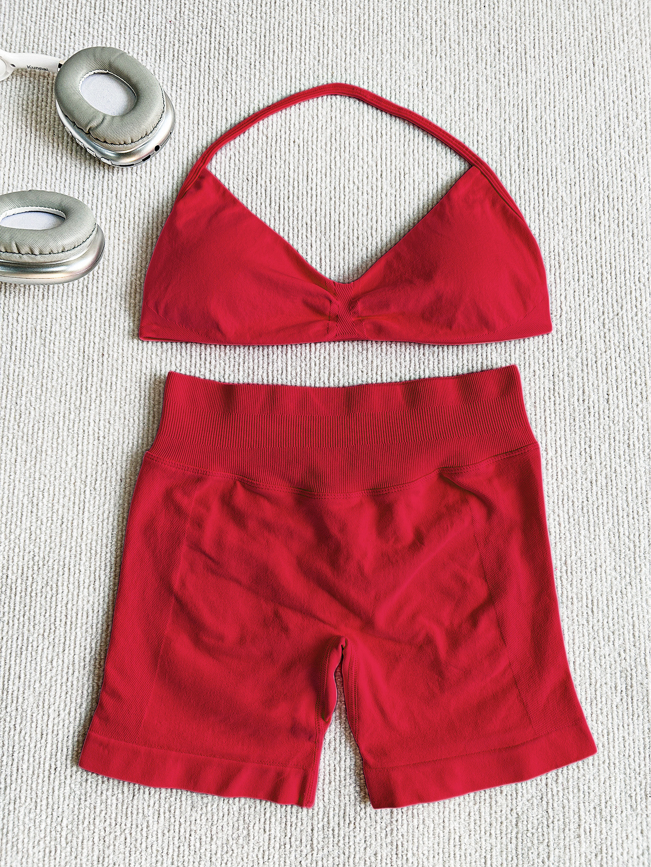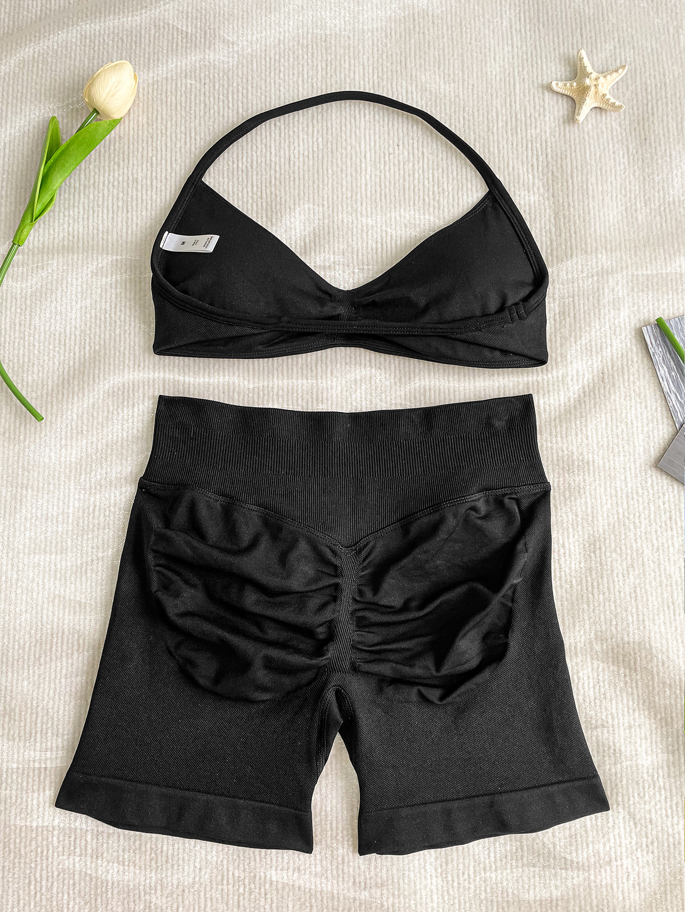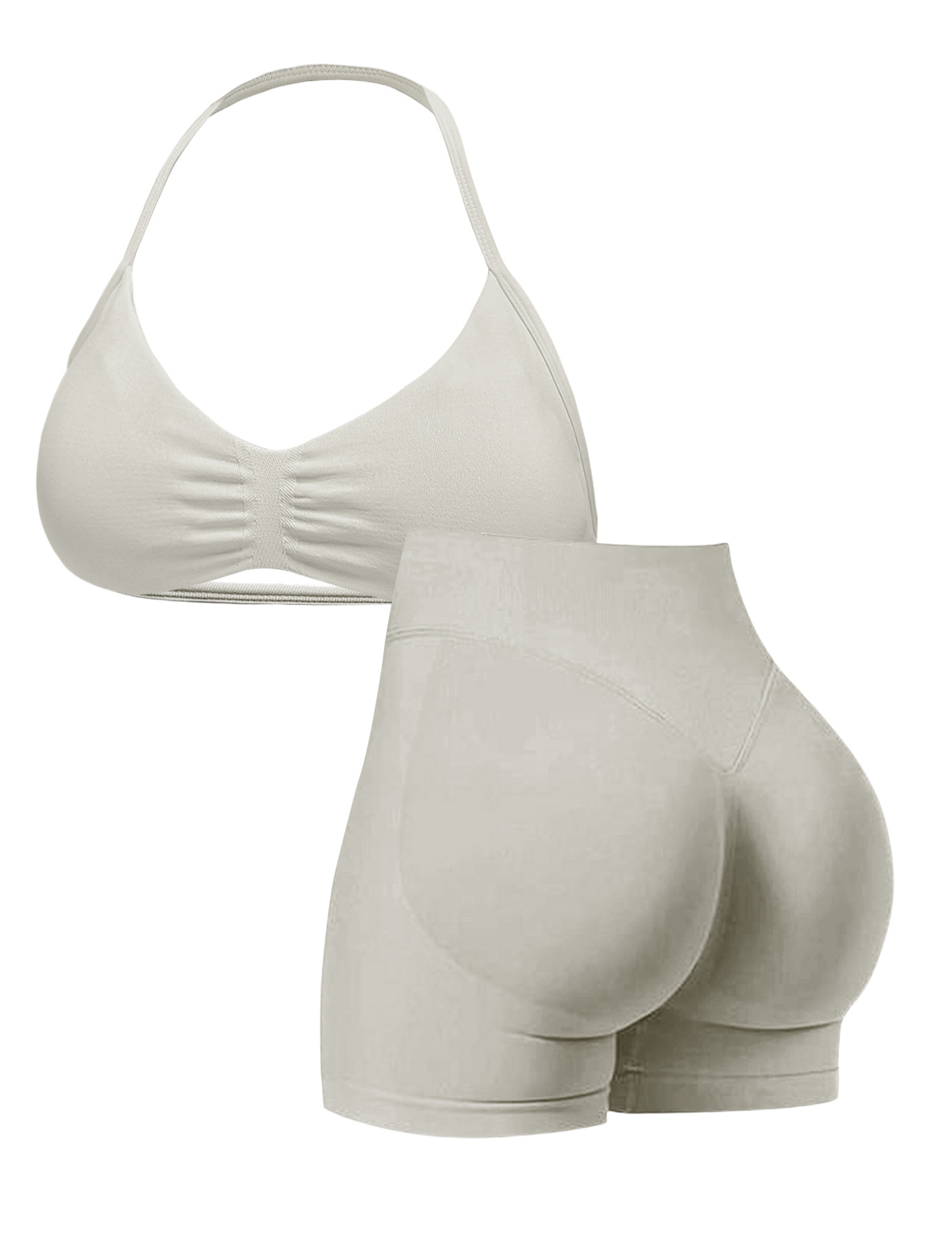 This Seamless High Stretch Nylon Halter Neck Bra Tight Fitting High-Waisted Butt Lift Pants Sport Set Design Made Of Durable Nylon And Spandex Fabric. It Is a Must-Have Sportswear For Running And Yoga Life. Global Lover Offer a Rich Selection Of Yoga Clothes For Women. You Will Find Yoga Bra, Tops, Leggings, And Shorts With Global Lover Yoga And Gym Wear Whether You Are On The Way To The Yoga Room Or Outdoor Running. When You Need More Wholesale Fitness Clothing, You Can Always Find What You Need On Our Wholesale Sports Apparel Online Store.