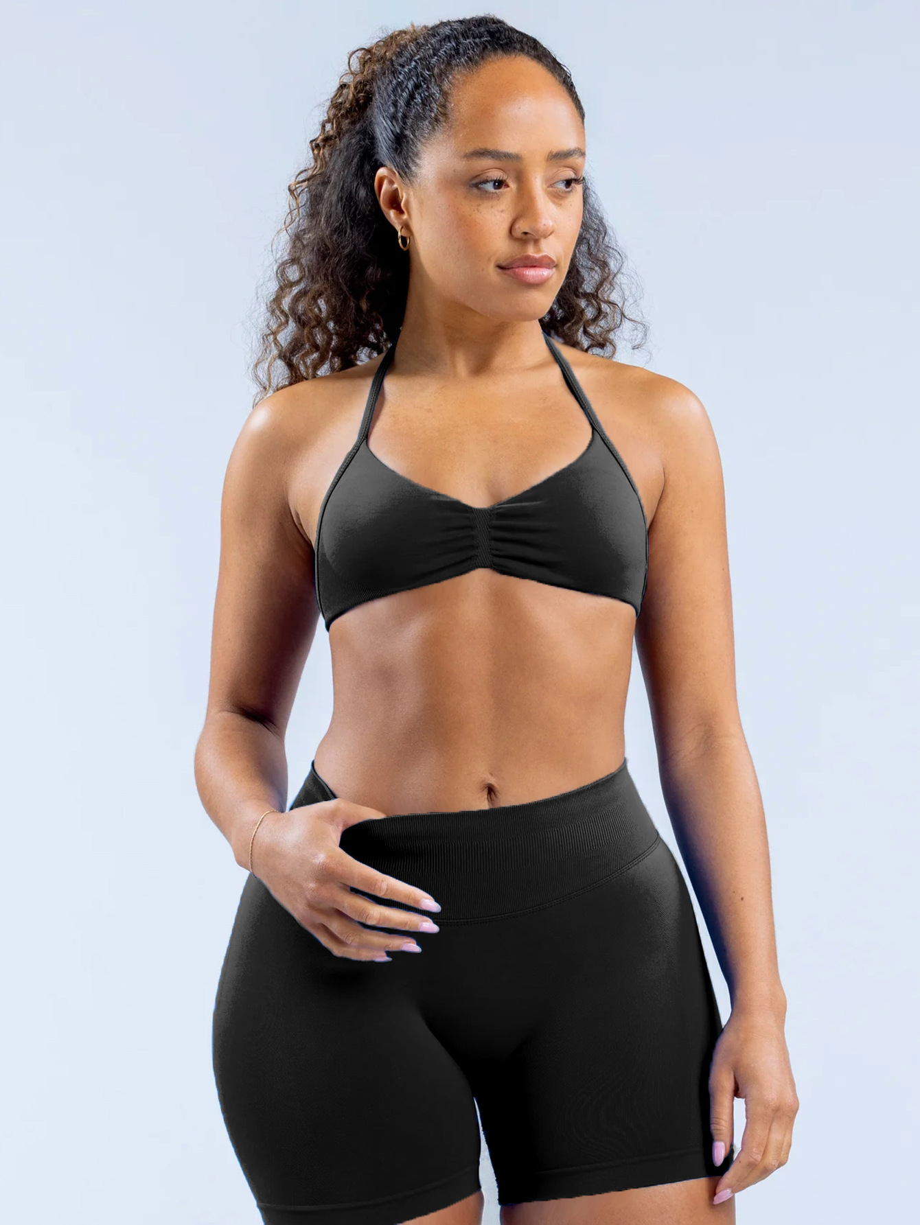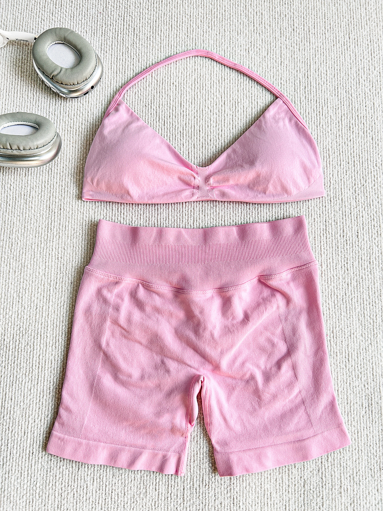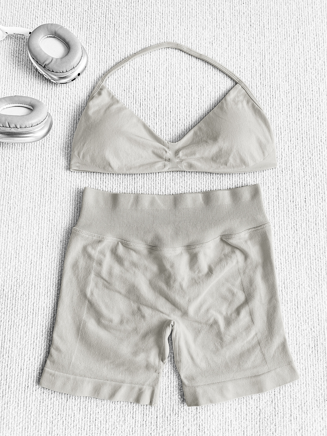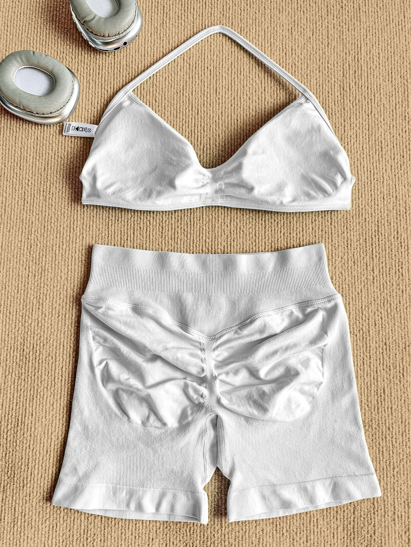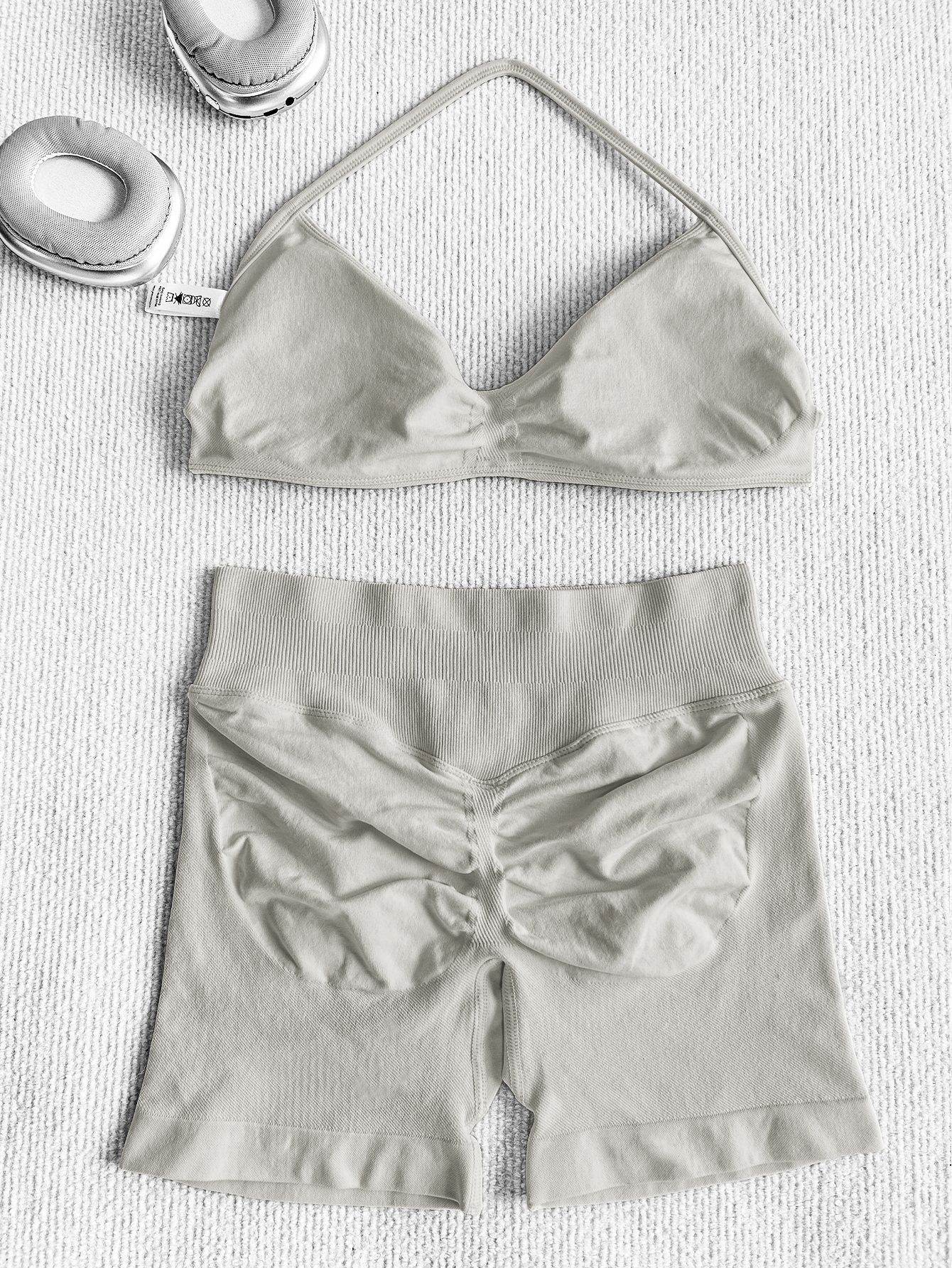 This Seamless High Stretch Nylon Halter Neck Bra Tight Fitting High-Waisted Butt Lift Pants Sport Set Design Made Of Durable Nylon And Spandex Fabric. It Is a Must-Have Sportswear For Running And Yoga Life. Global Lover Offer a Rich Selection Of Yoga Clothes For Women. You Will Find Yoga Bra, Tops, Leggings, And Shorts With Global Lover Yoga And Gym Wear Whether You Are On The Way To The Yoga Room Or Outdoor Running. When You Need More Wholesale Fitness Clothing, You Can Always Find What You Need On Our Wholesale Sports Apparel Online Store.