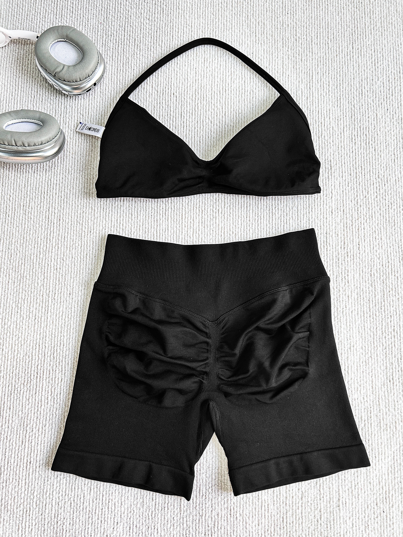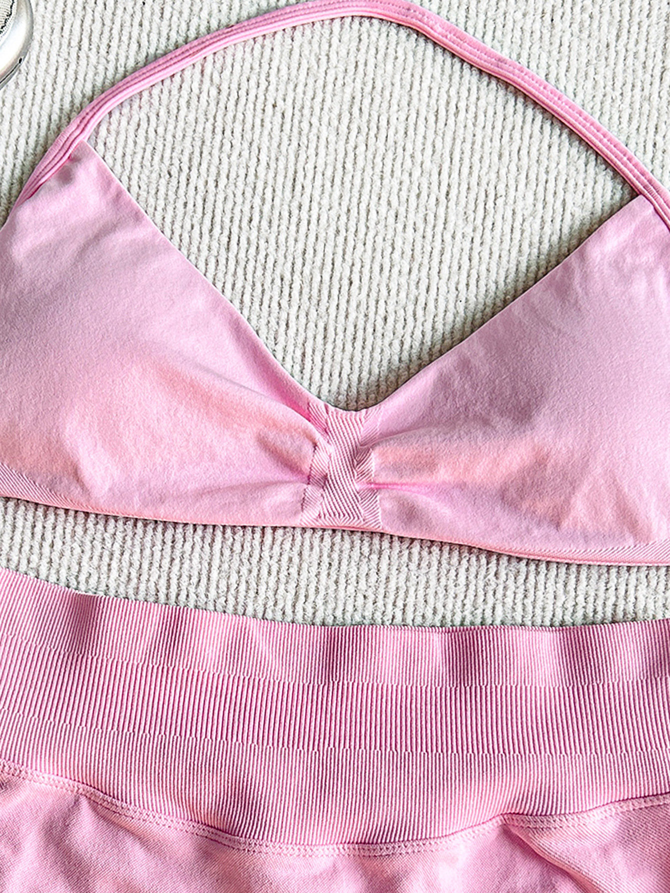 Copy| Product Name | Seamless High Stretch Nylon Halter Neck Bra Tight Fitting High-Waisted Butt Lift Pants Sport Set |