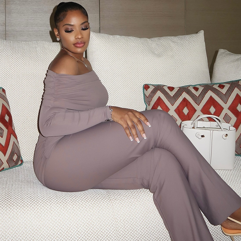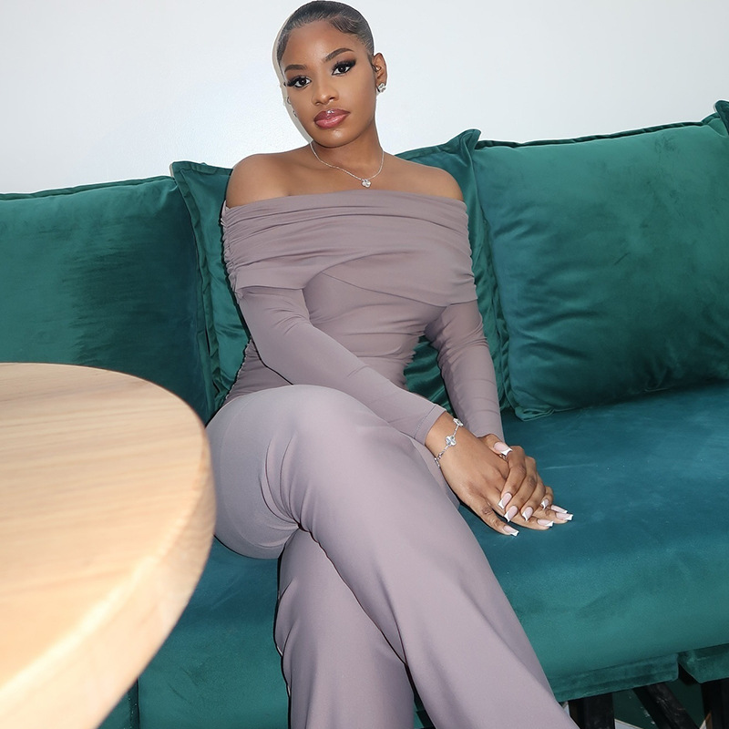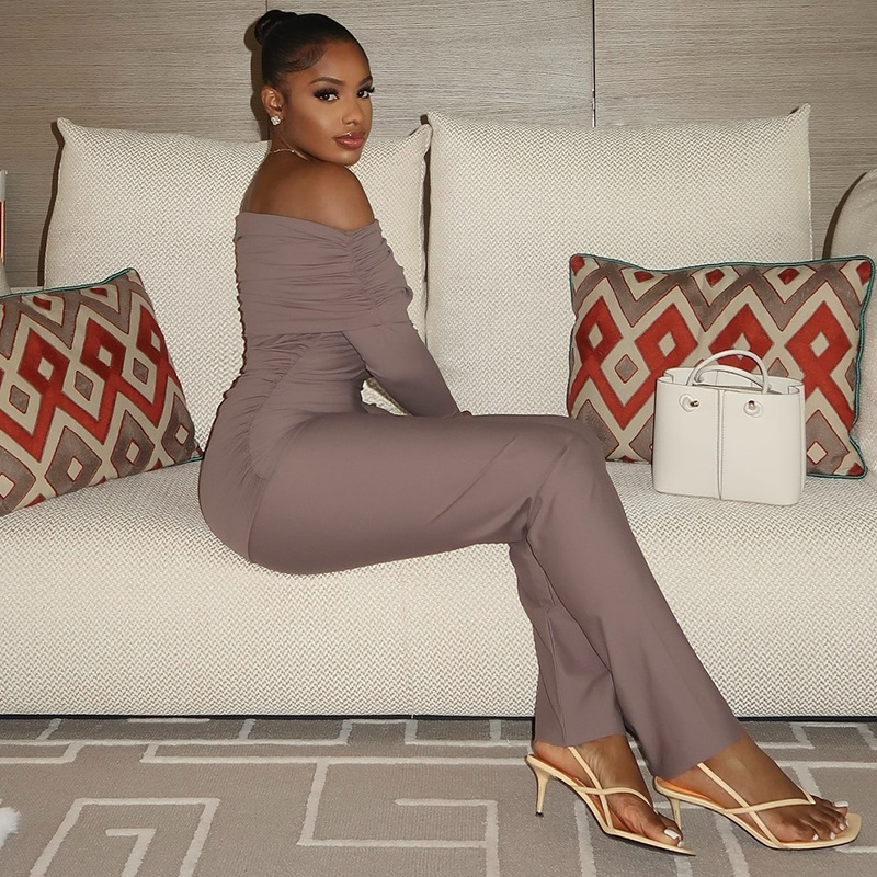 Copy| Product Name | Solid Color Women's Off Shoulder Casual Long Jumpsuit |