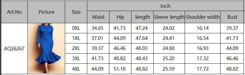 Copy| Product Name | Spring/Autumn Plus Size Women’s Chic Elegant Round Neck Long Sleeve Bell-Bottom Mermaid Dress |