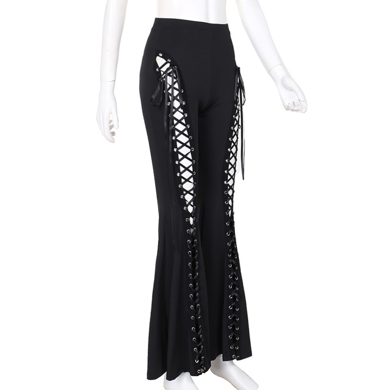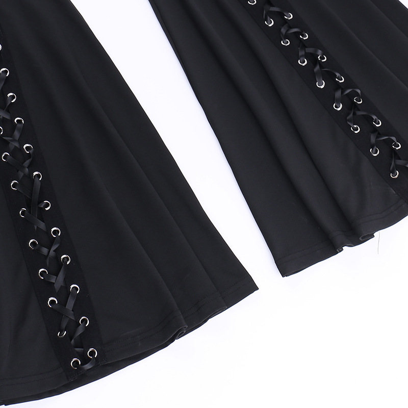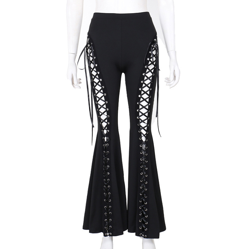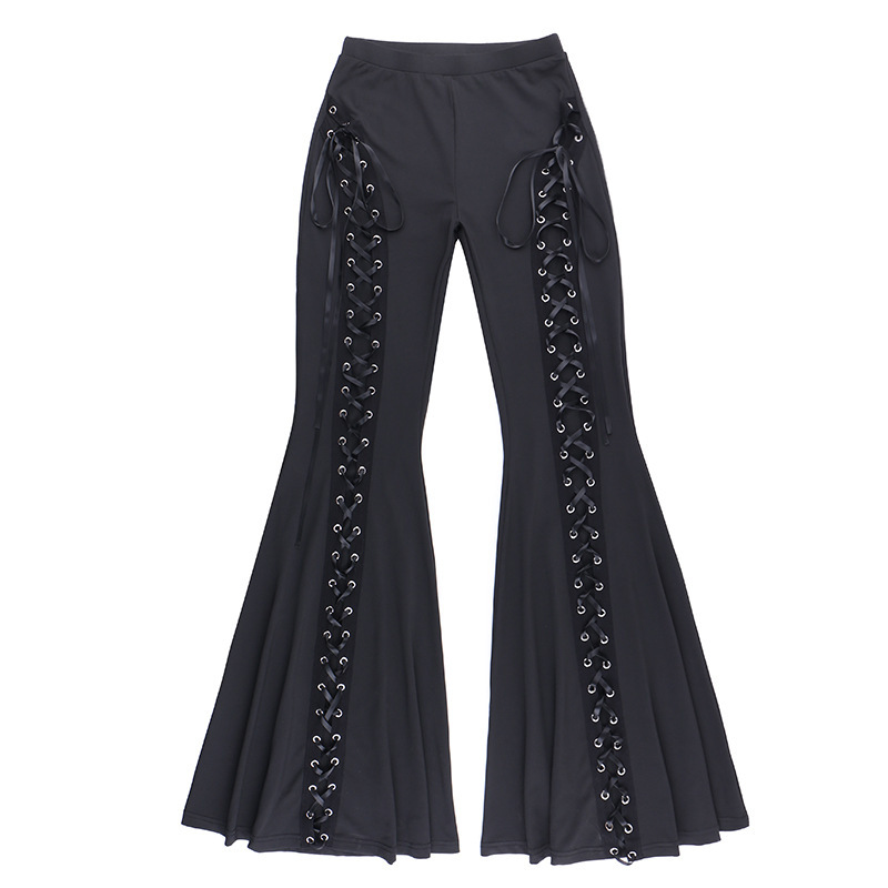 Copy| Product Name | Summer Dark Street Style Lace-Up Bell Bottom Pants |