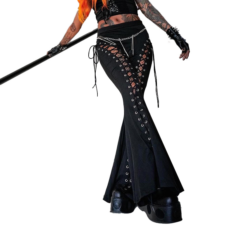 This Summer Dark Street Style Lace-Up Bell Bottom Pants Design Made Of Durable And Stretchy Material. It Is a Must-Have Item For Everyday Life. Women Casual Pants Wholesale At Global Lover Has Wide Range Selections On Colors, Material, Print, And Designs. Ladies Can Always Find Her Right Trousers Here - No One Can Refuse The Temptation Of Sexy Leather Pants. Cool Jeans Trousers Is a Must-Have Item For Ladies No Matter What Age. Flared Pants Is Here Again, Becoming One Of The Icons Of Fashion Once Again. When You Need More Wholesale Women Trousers, You Can Always Find What You Need On Our Wholesale Women Clothing Online Store.