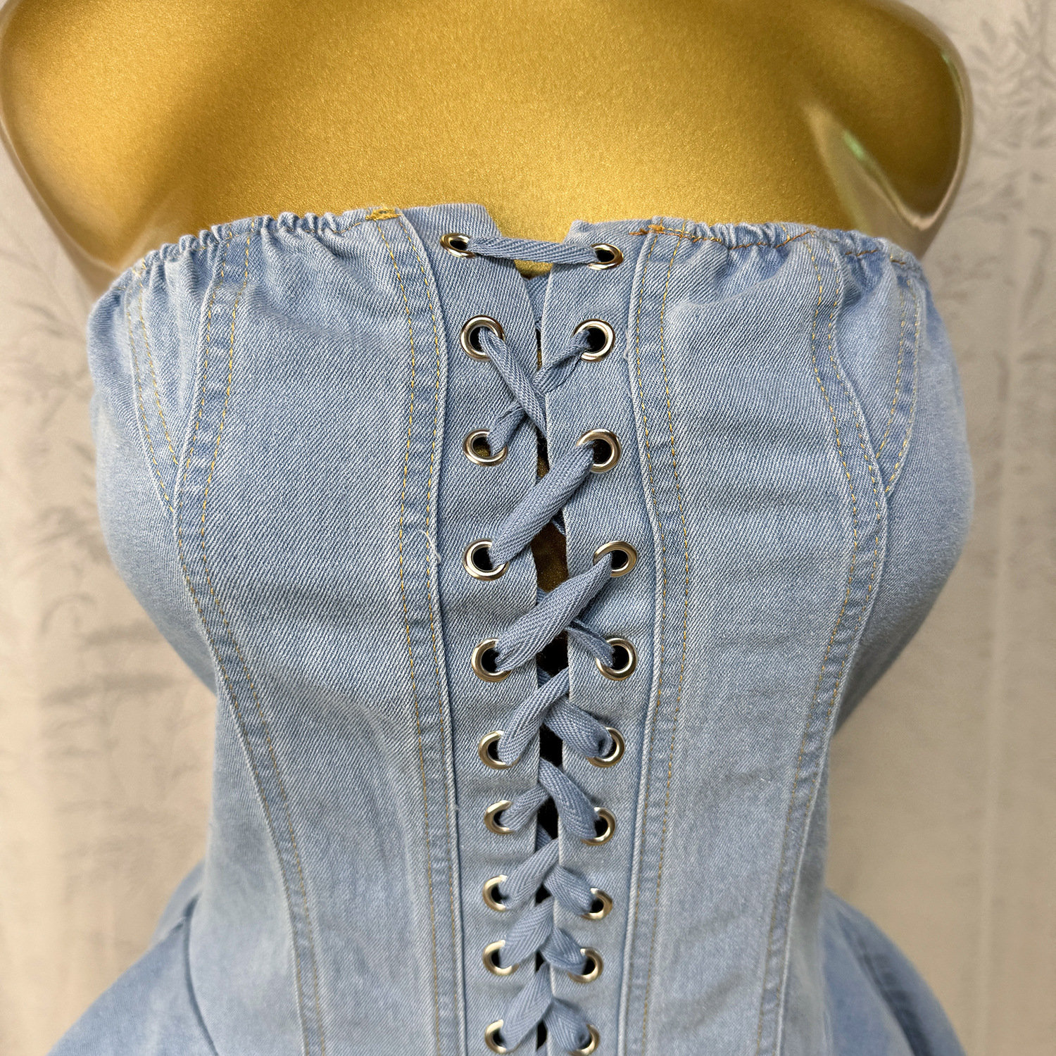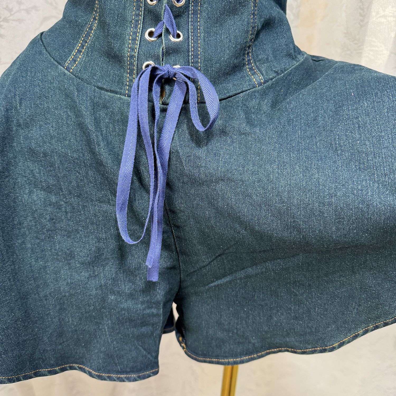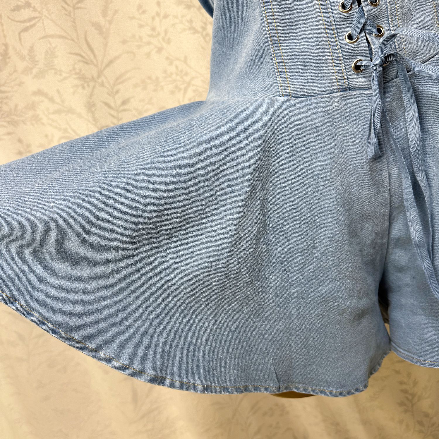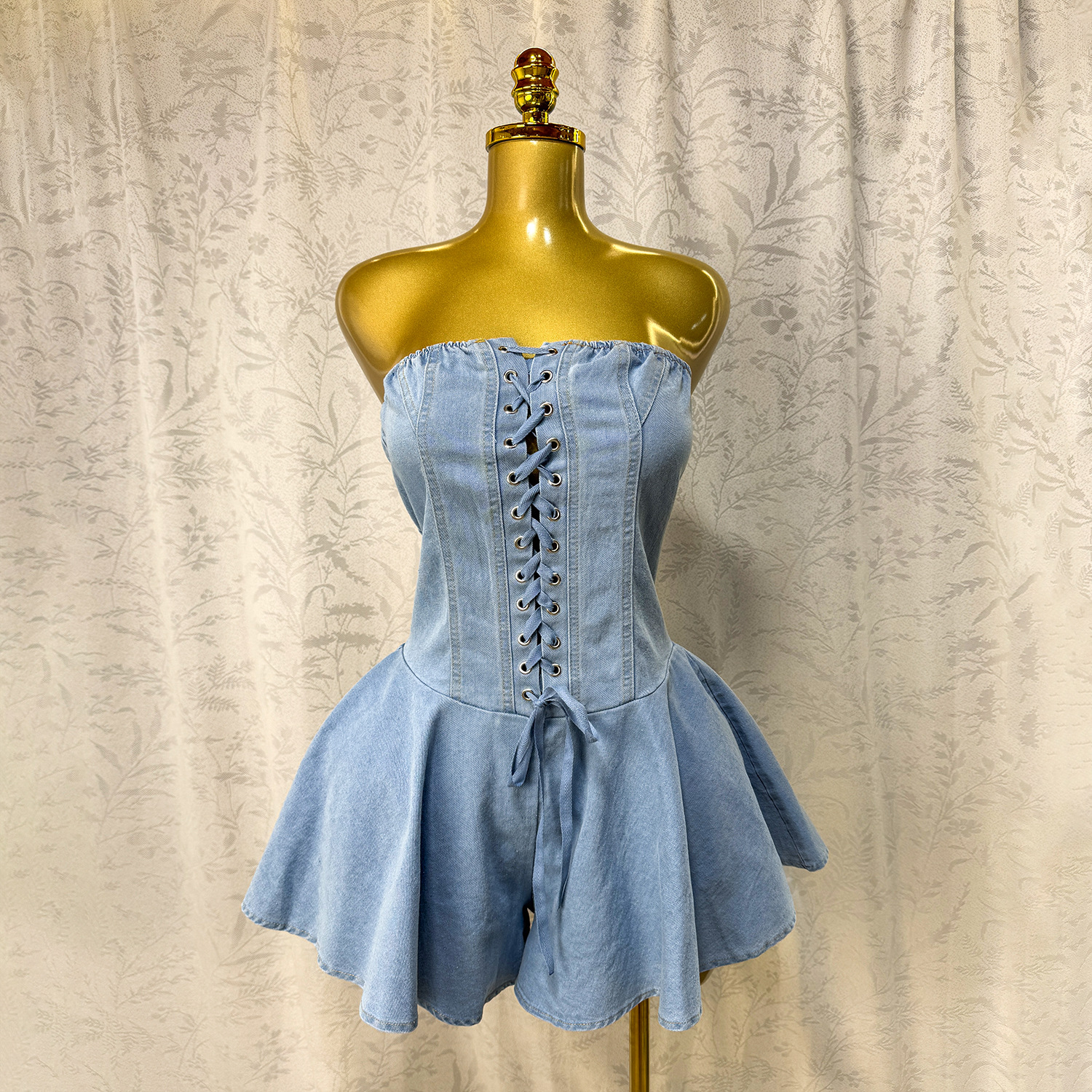 Copy| Product Name | Summer Sexy Fashion Strapless Lace-Up Denim Cargo Wide-Leg Shorts Jumpsuit |
