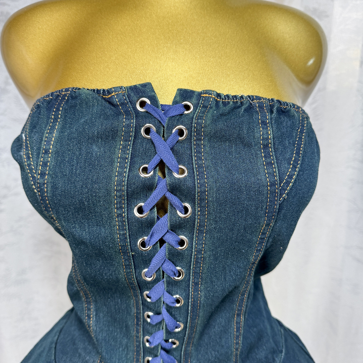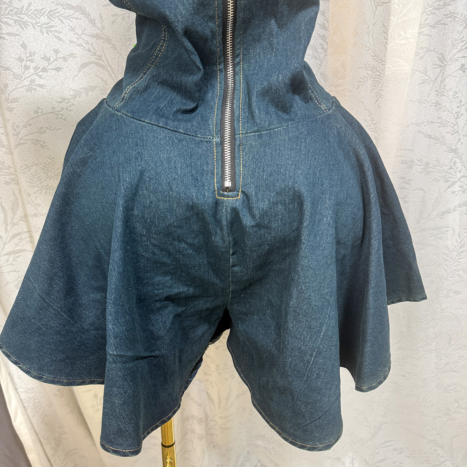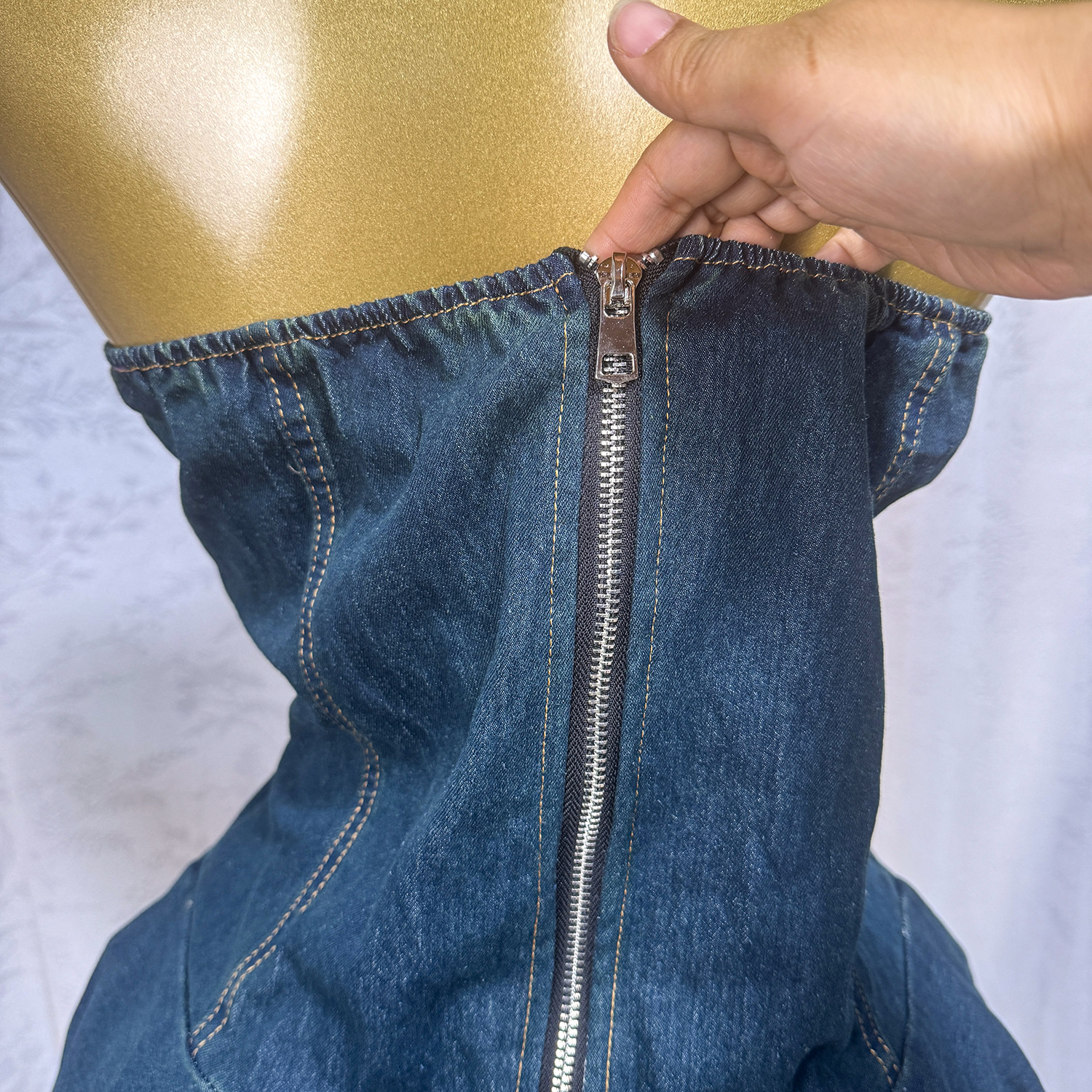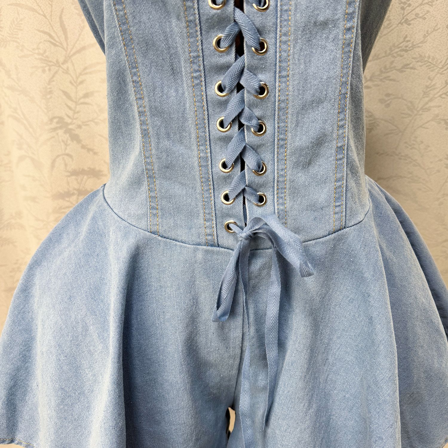 Copy| Product Name | Summer Sexy Fashion Strapless Lace-Up Denim Cargo Wide-Leg Shorts Jumpsuit |