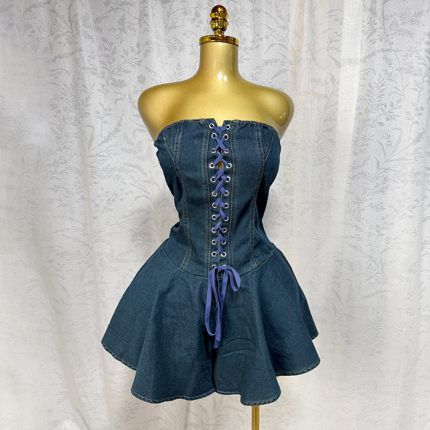 This Summer Sexy Fashion Strapless Lace-Up Denim Cargo Wide-Leg Shorts Jumpsuit Design Made Of High Quality Polyster And Spandex Material. It Is Stretchy, Durable And Comfortable. Casual Dresses With Long Sleeves Can Not Only Be Worn As Outerwear In Spring And Autumn, But Also Matching a Jacket In Winter, It Is a Must Have Item For Every Season. Grab Really Great Buy Casual Dresses For Women And Grow Your Business. No Moq In Global-Lover.