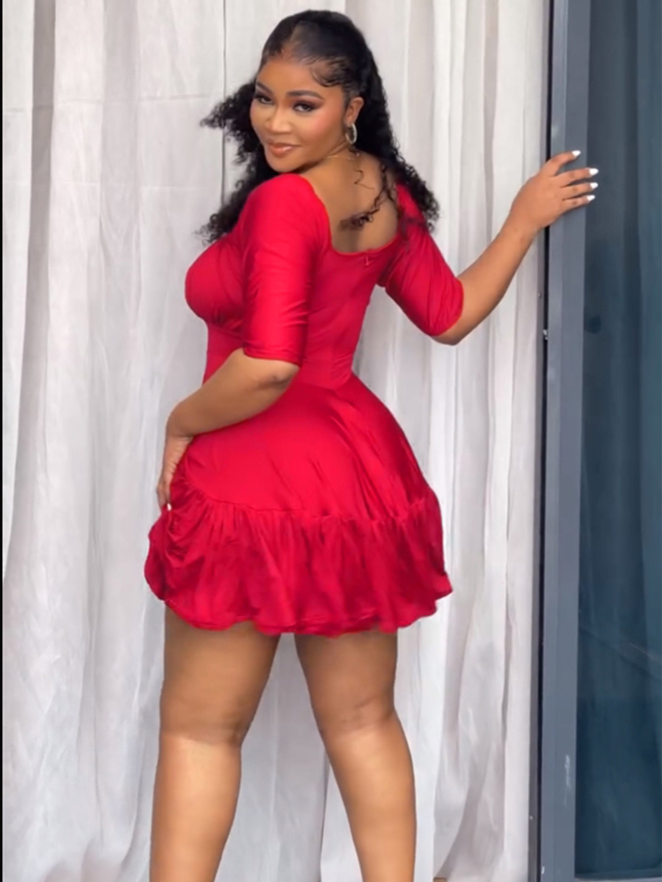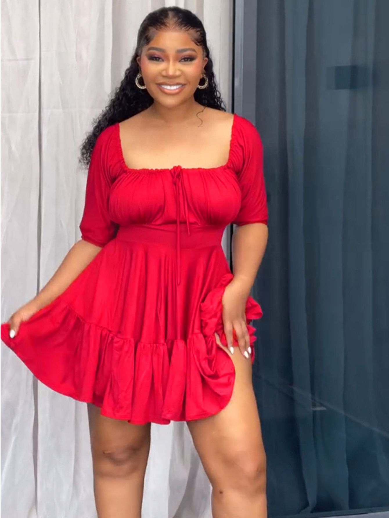 This Summer Street-Style Half-Sleeve Back-Zipper u-Neck Pleated Tie-Front Dress Design Made Of High Quality Polyster And Spandex Material. It Is Stretchy, Durable And Comfortable. Casual Dresses With Long Sleeves Can Not Only Be Worn As Outerwear In Spring And Autumn, But Also Matching a Jacket In Winter, It Is a Must Have Item For Every Season. Grab Really Great Buy Casual Dresses For Women And Grow Your Business. No Moq In Global-Lover.
