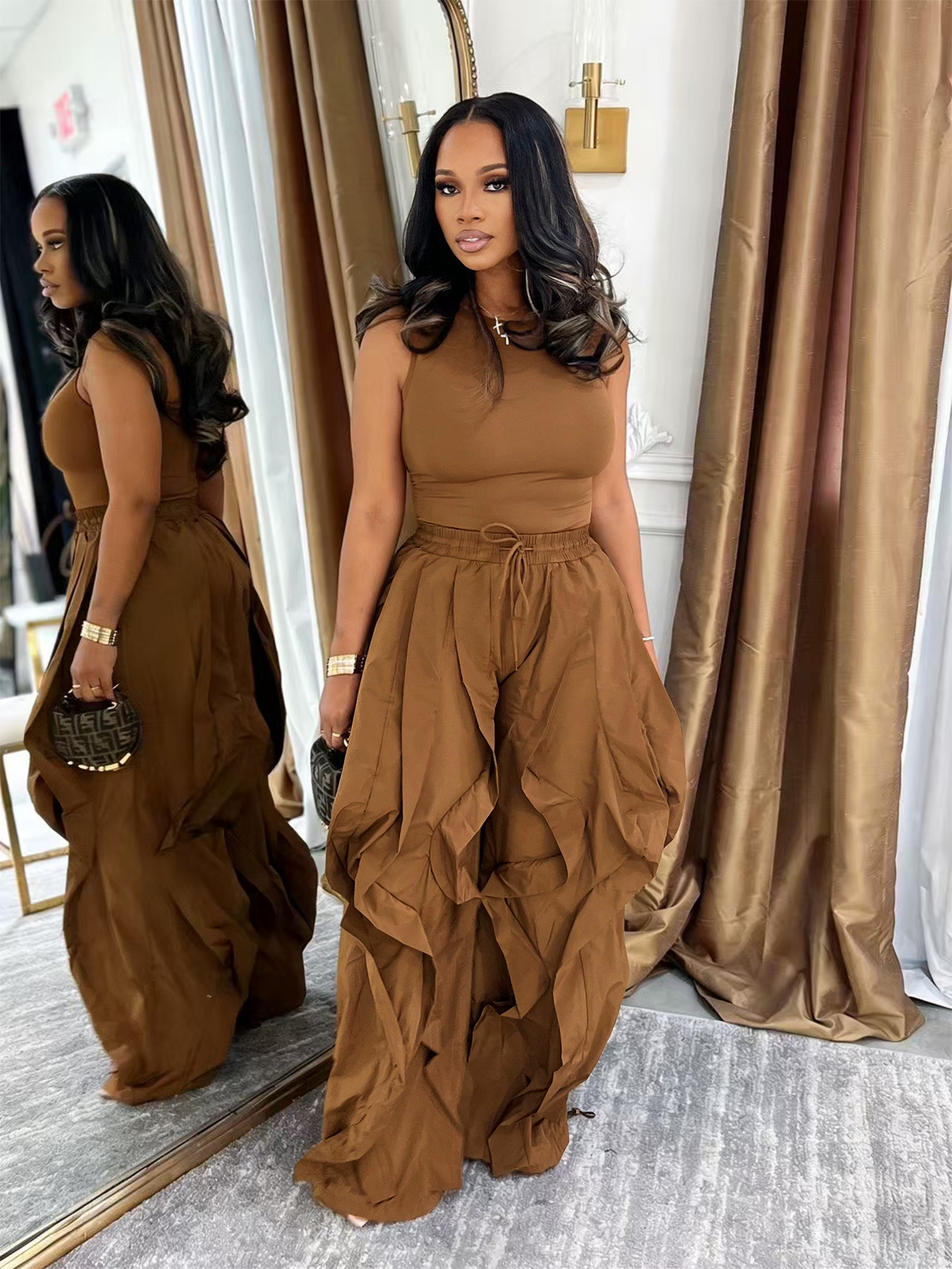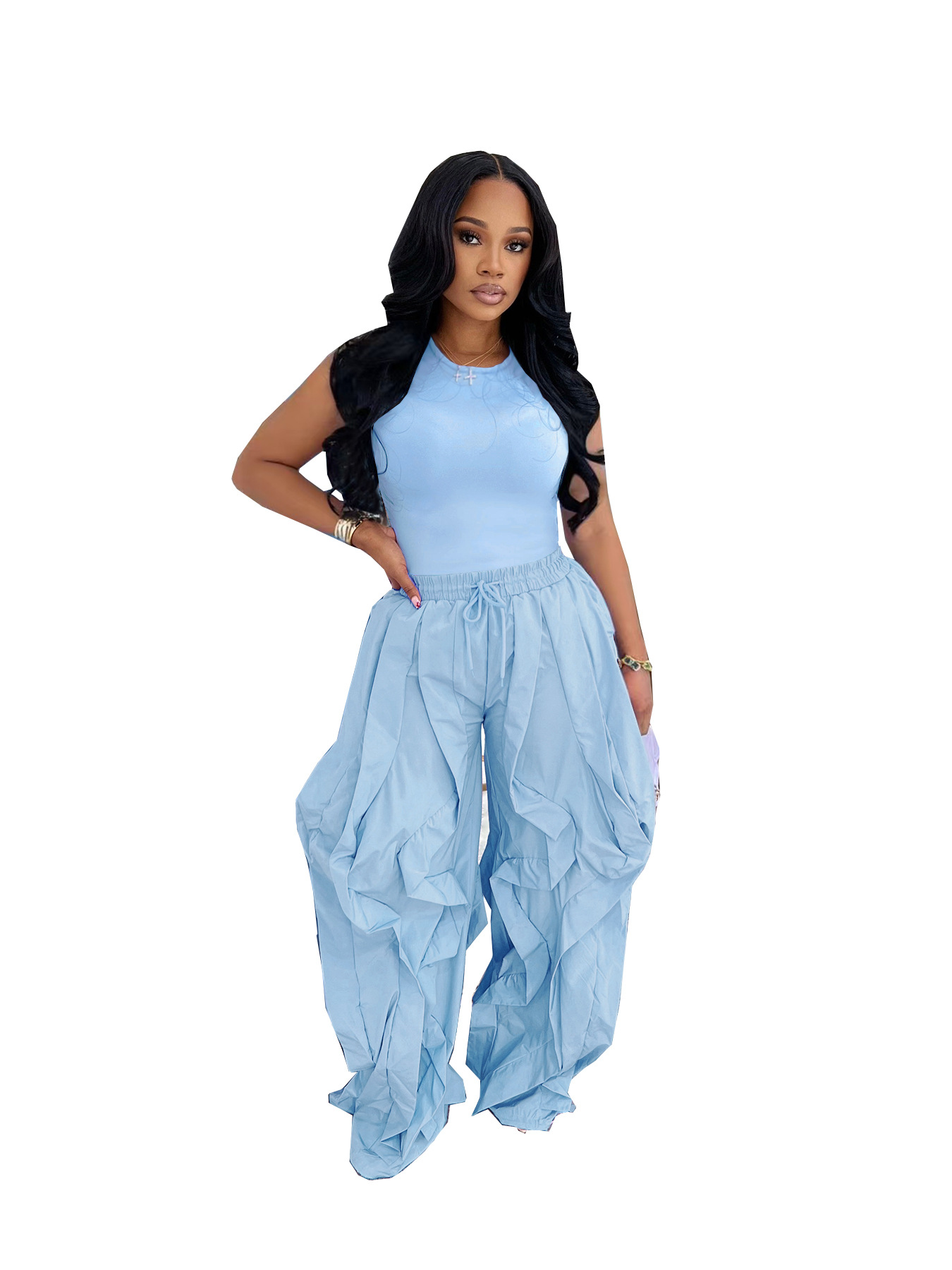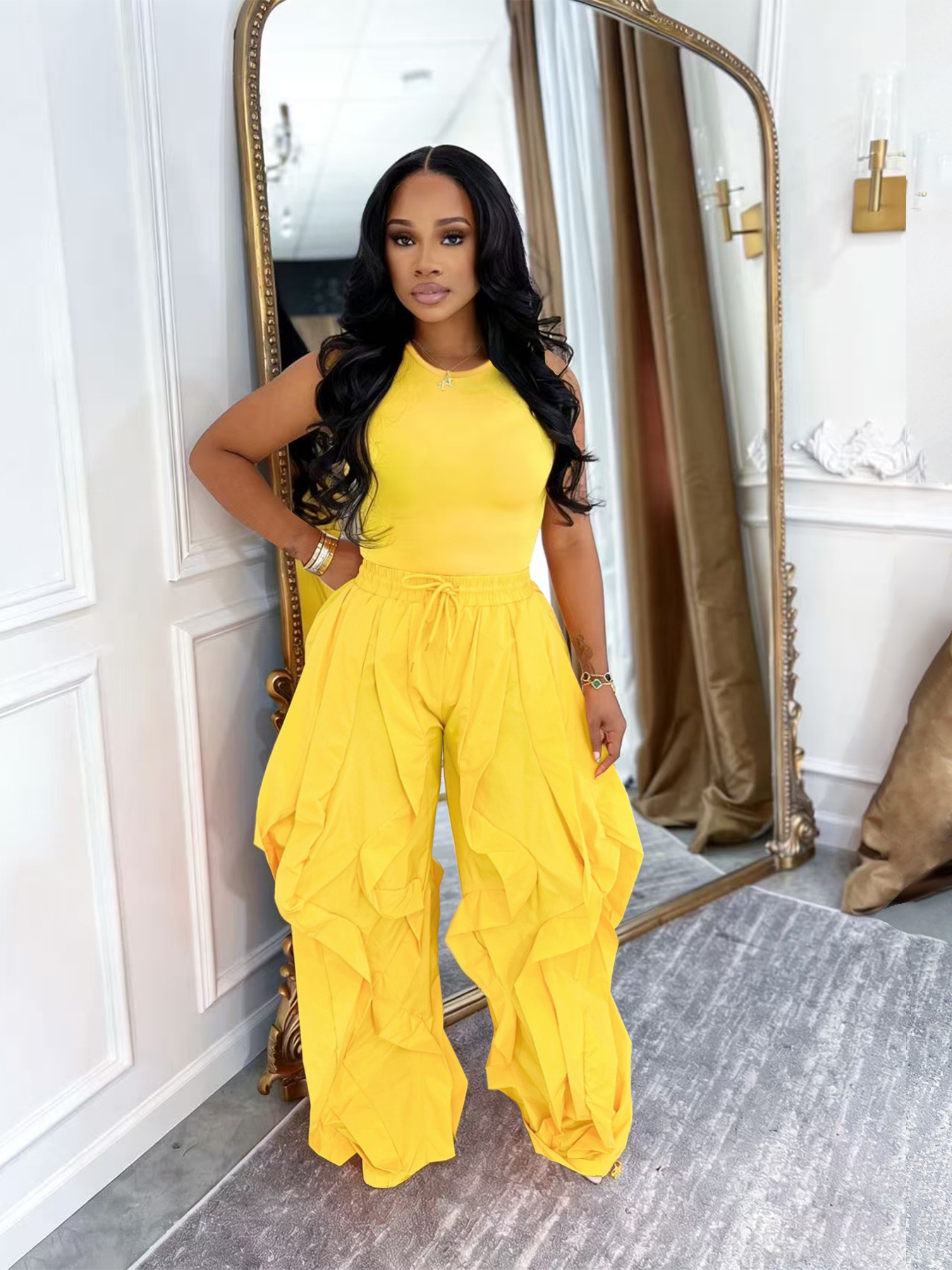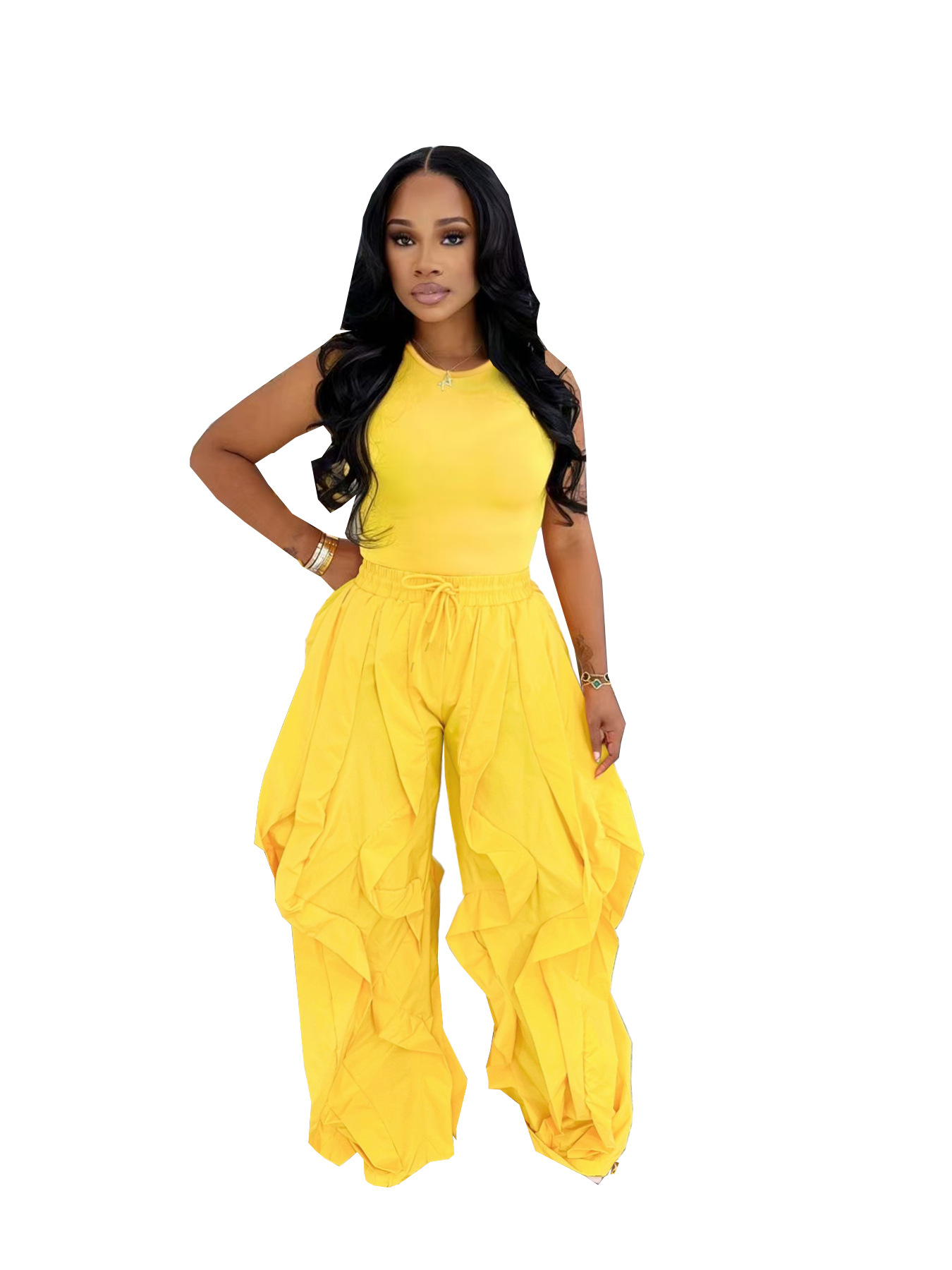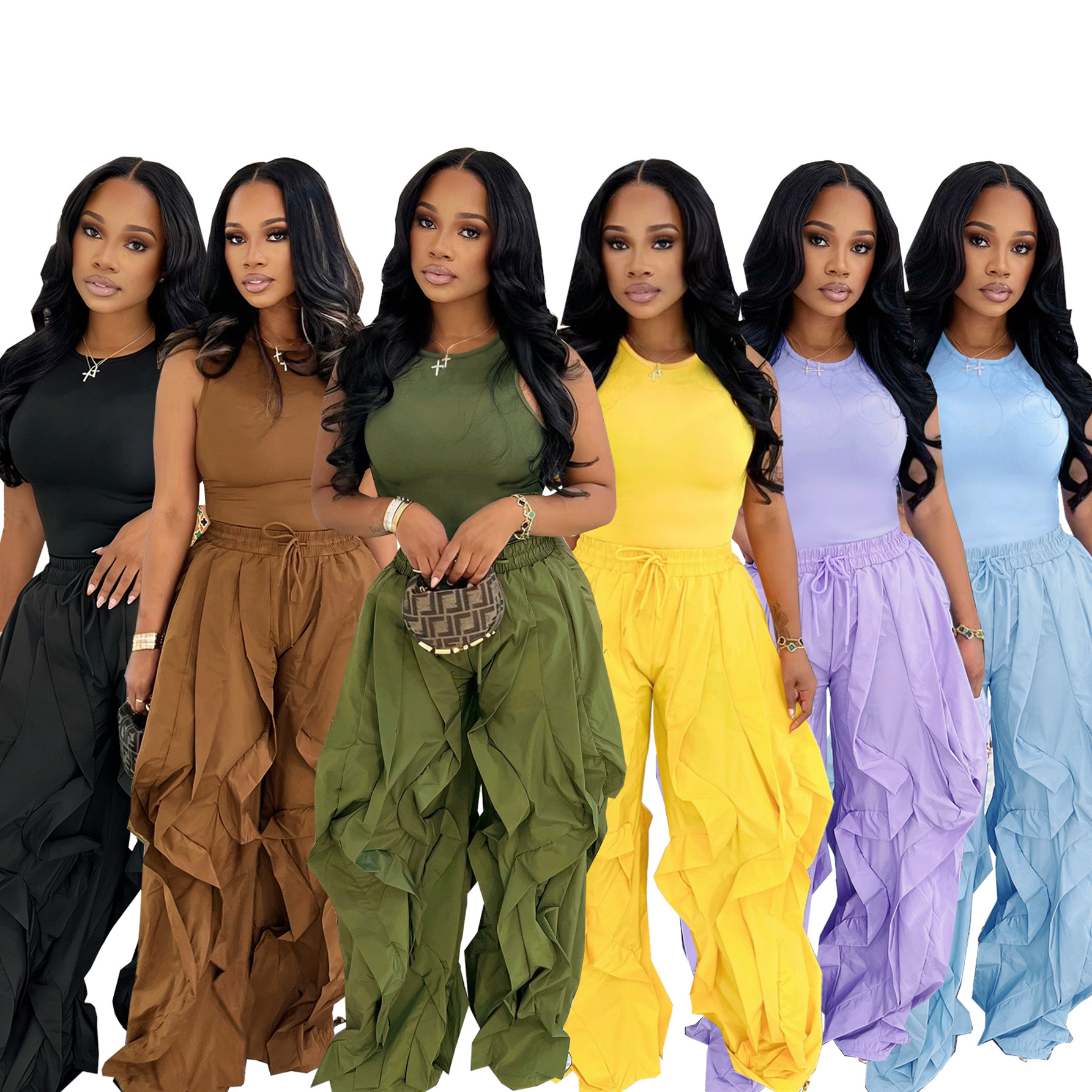 Copy| Product Name | Summer Women’s SleevelessTop Patchwork Wide-Leg Pants Two-Piece Set |