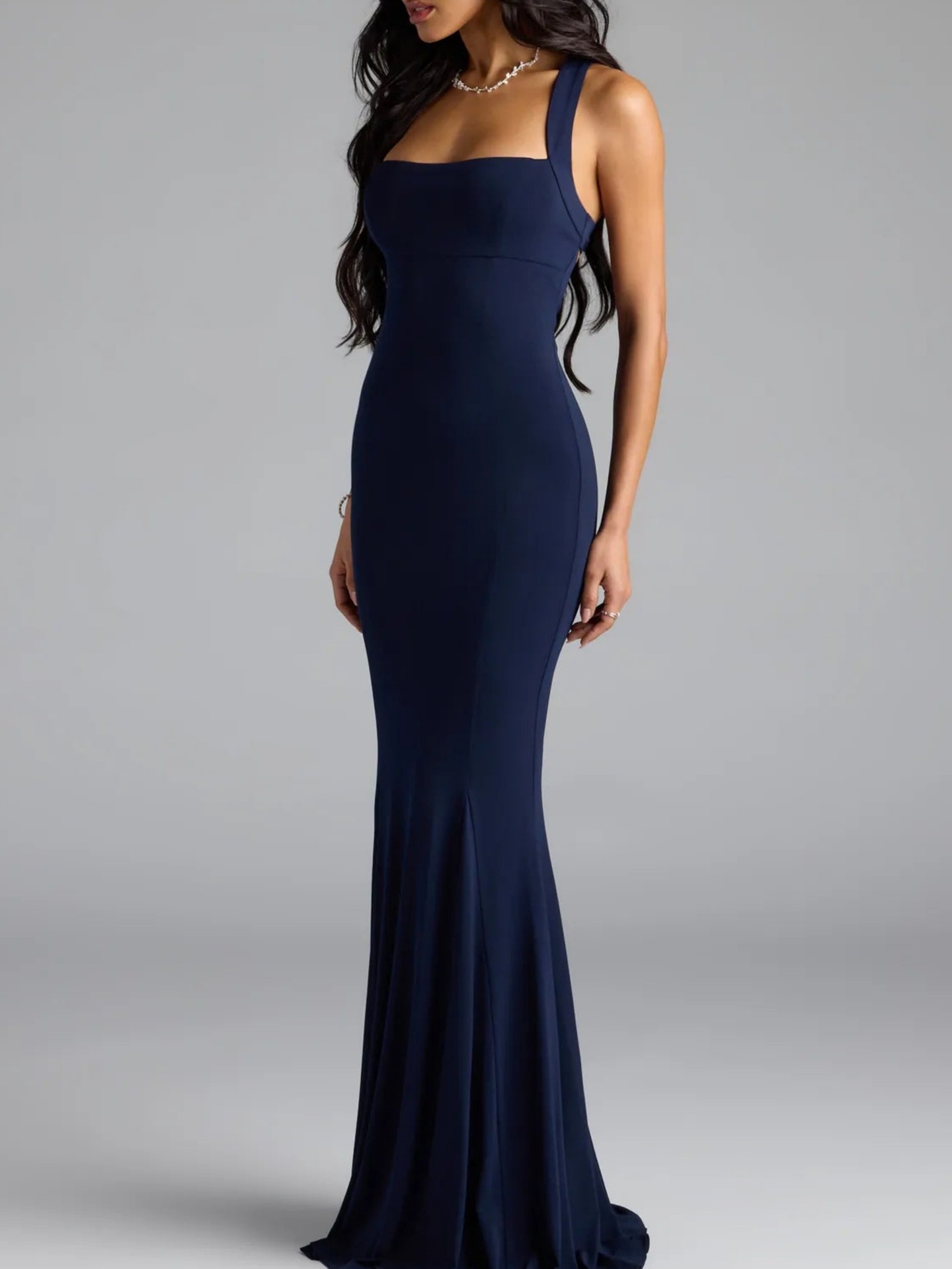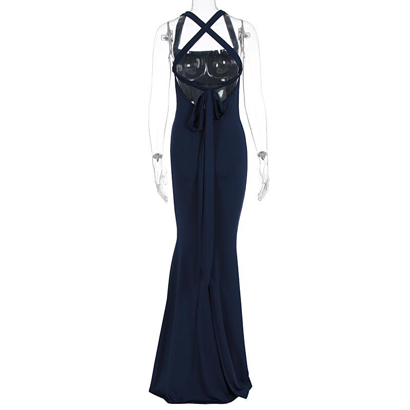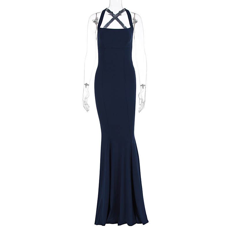 Copy| Product Name | Summer Women's Sexy Strap Low Back Solid Slim Waist Mermaid Long Dress |