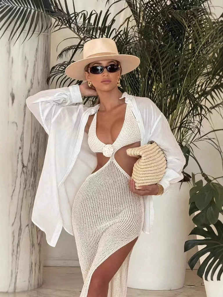 Copy| Product Name | Summer Women's Solid Knitted Hollow Beach Cover-Up |