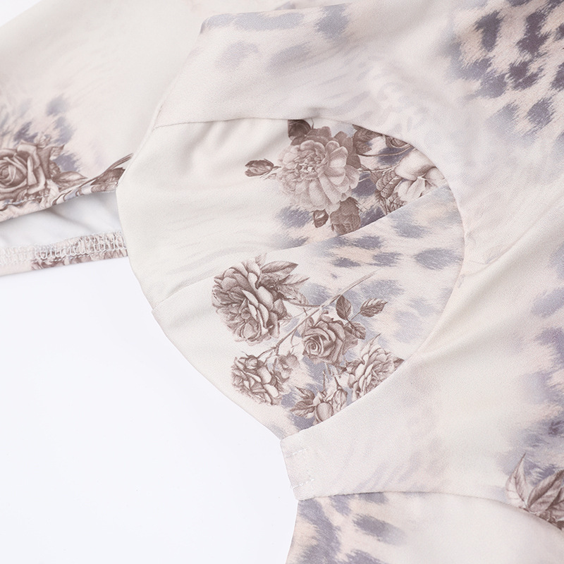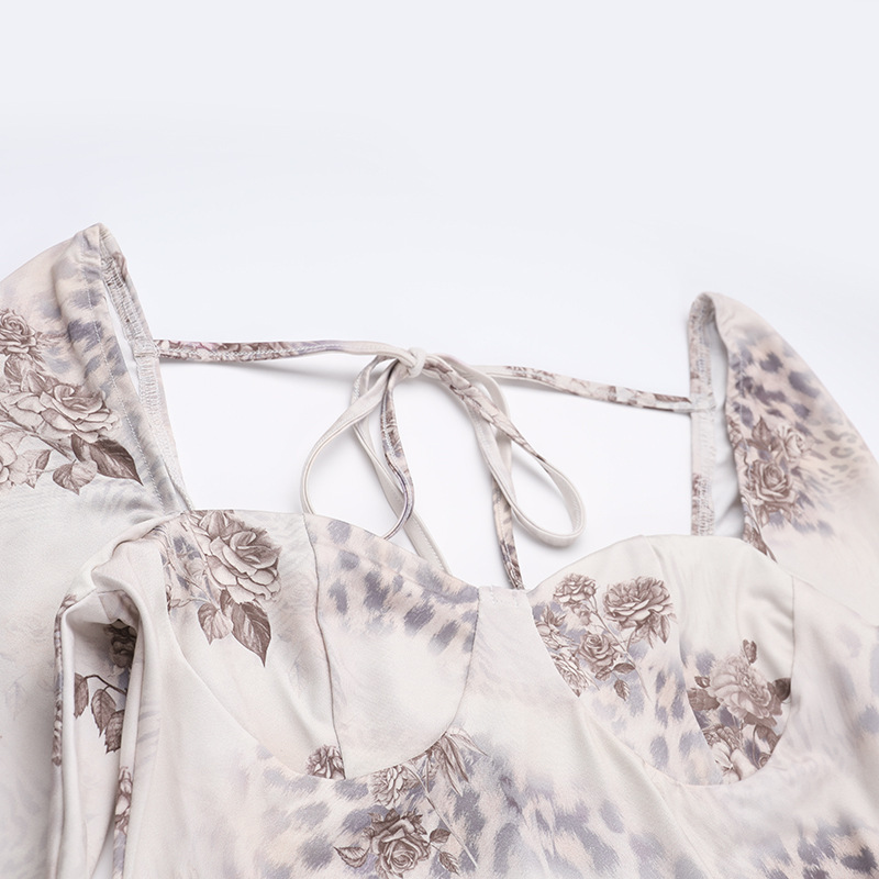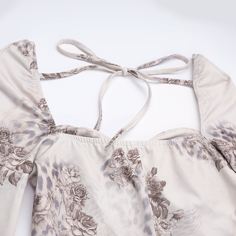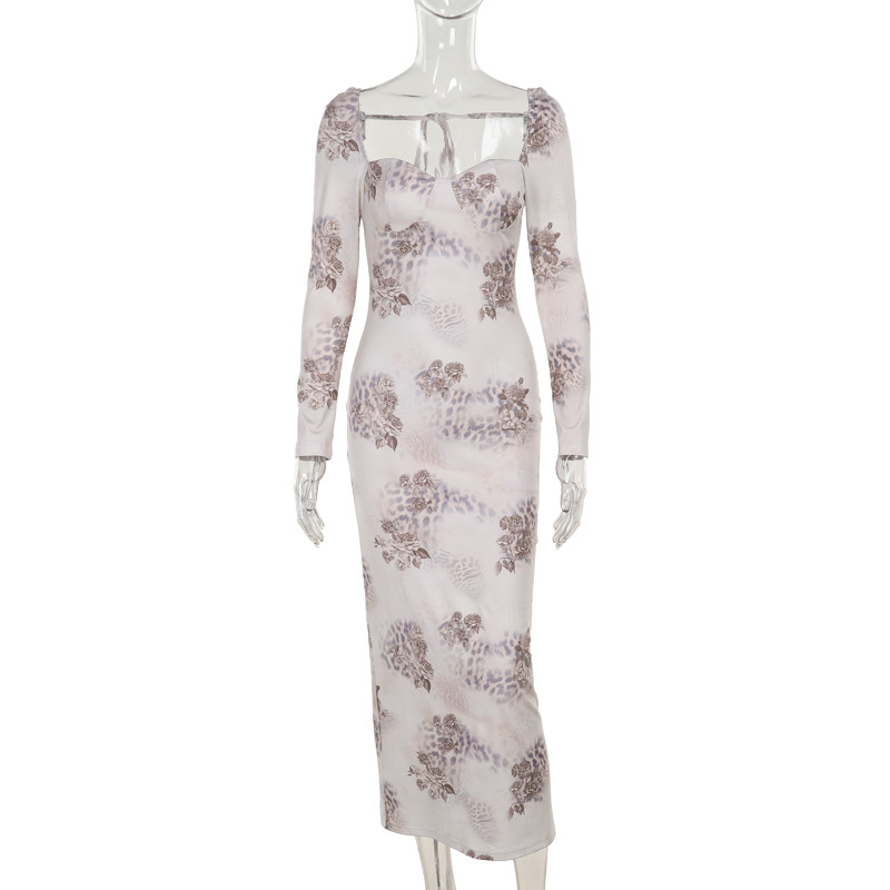 Copy| Product Name | Winter Women's Sexy Printed U-Neck Tie-Up Long Sleeve Slit Bodycon Dress |