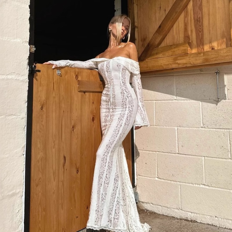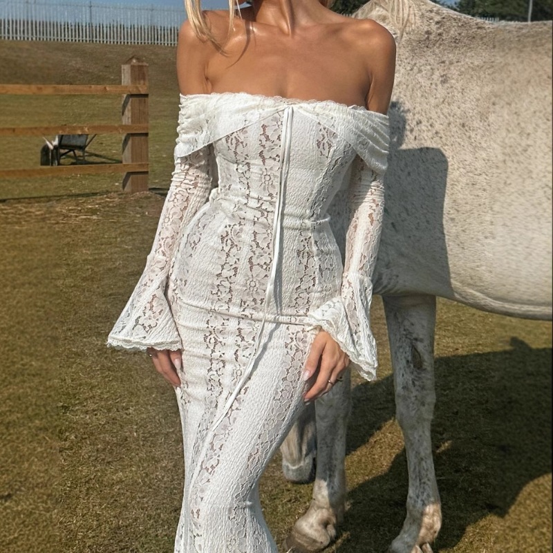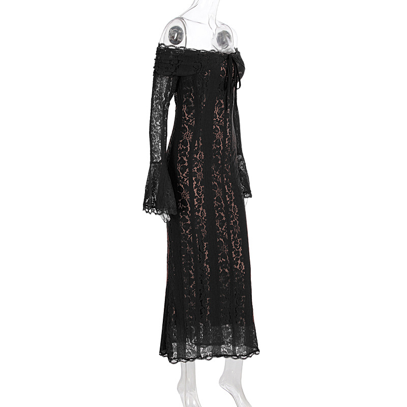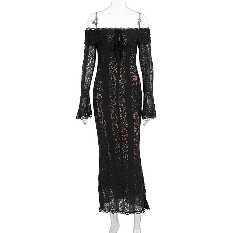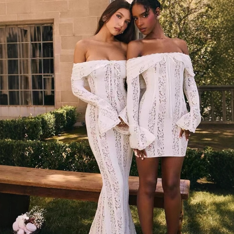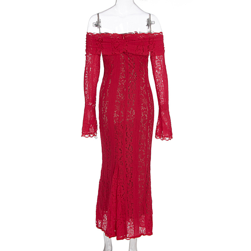 Copy| Product Name | Women Autumn Lace Off Shoulder Long-Sleeved Strapless Bodycon Dress |